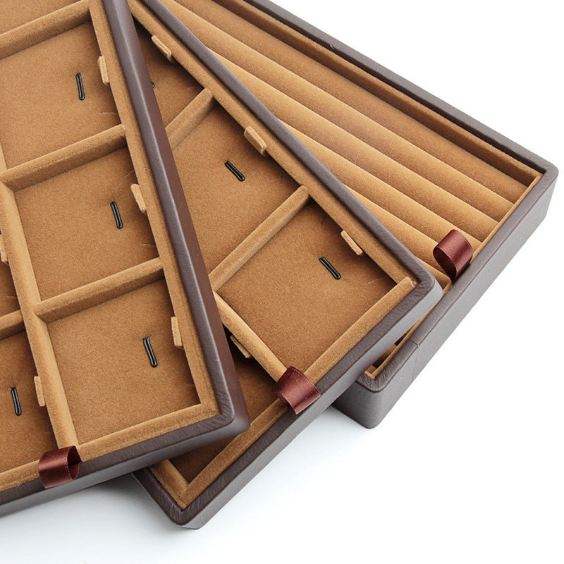 Color: Brown Jewelry Box, Black Jewelry Box, Large Outside Orange and Inside Beige Jewelry Box, Large All Black Jewelry Box, Large Outside Blue and Inside Black Jewelry Box, Large Outside Blue and Inside Gray and White Jewelry Box, Outside Black and Inside Gray and White Jewelry Box