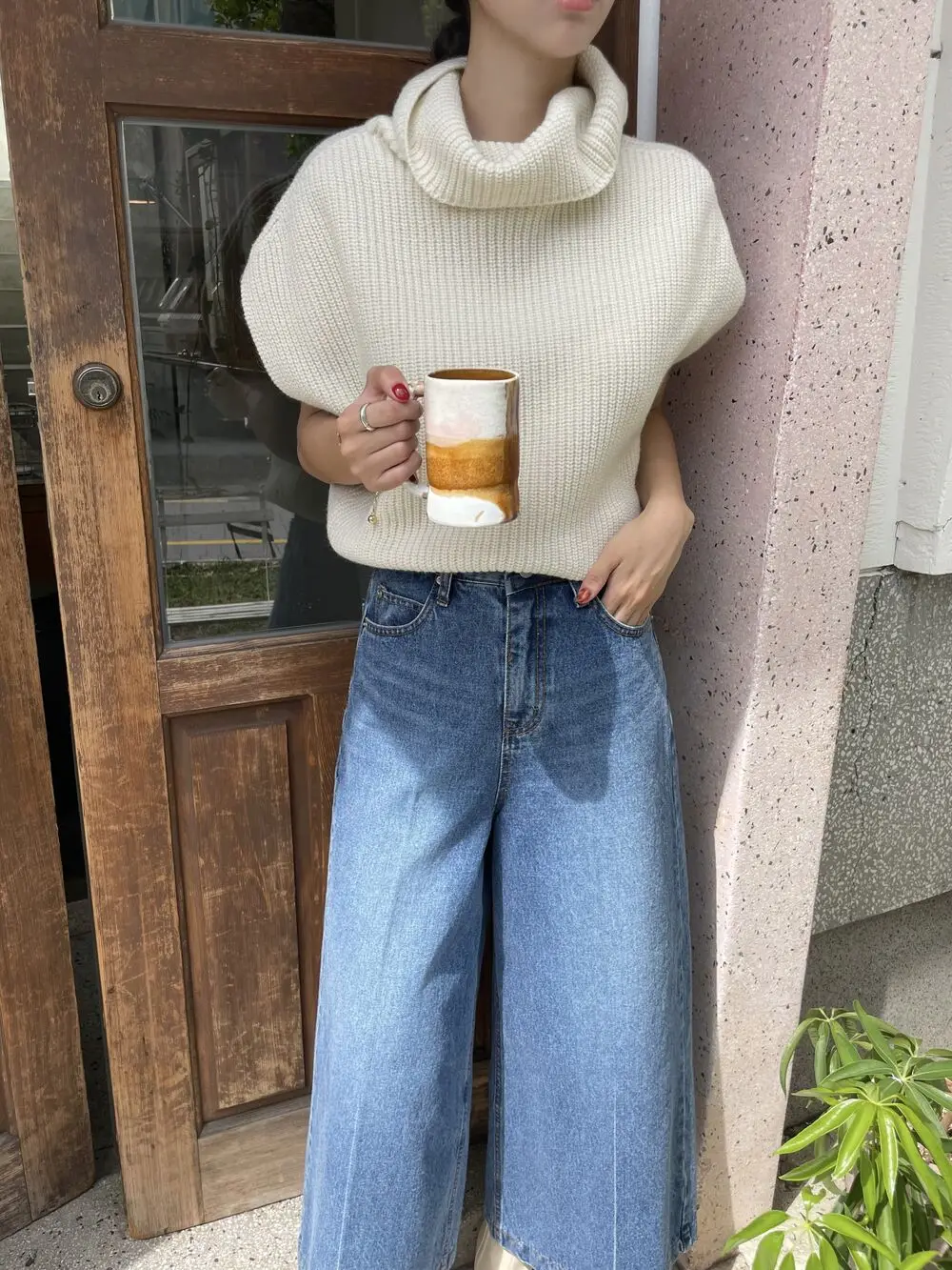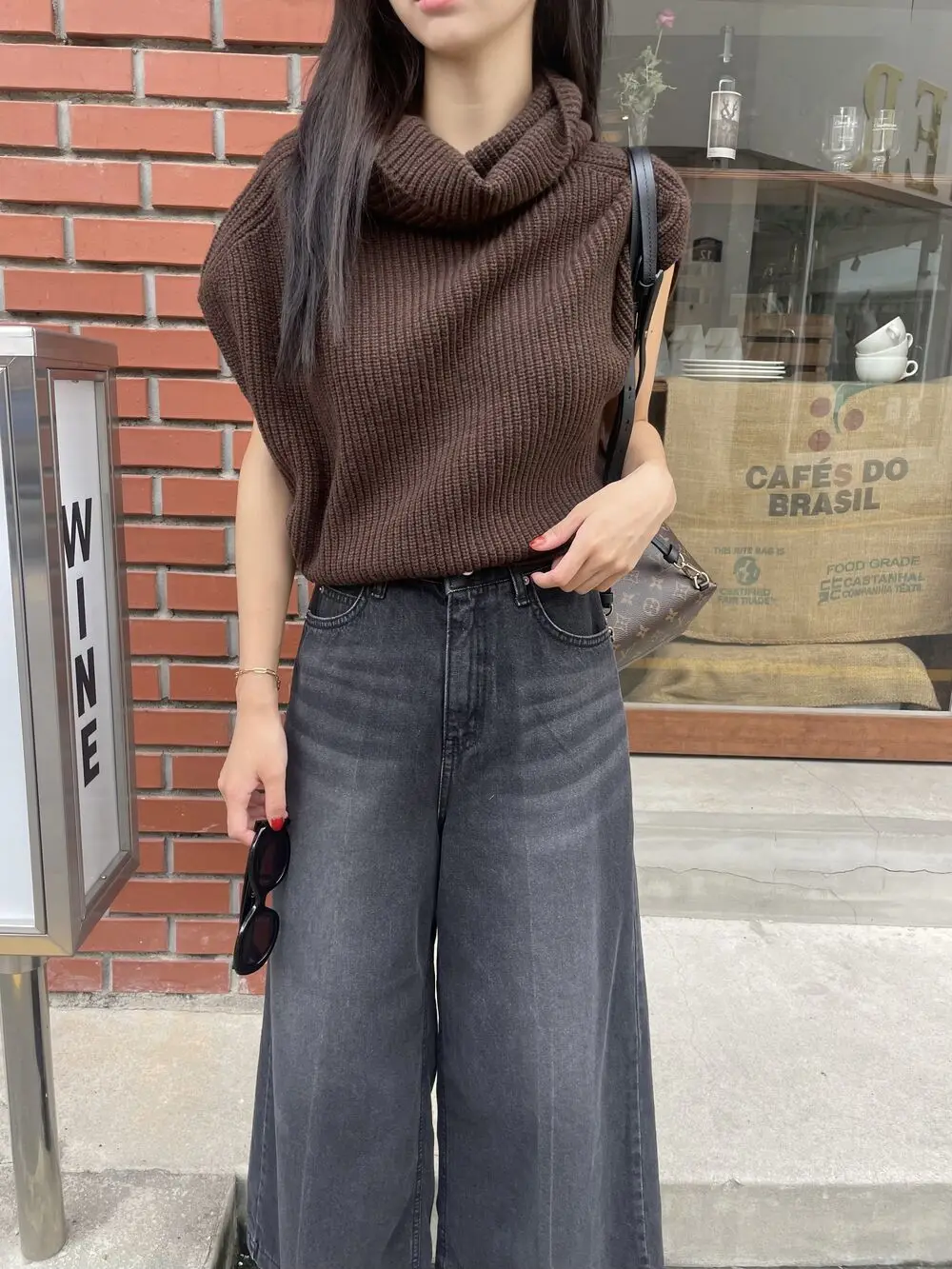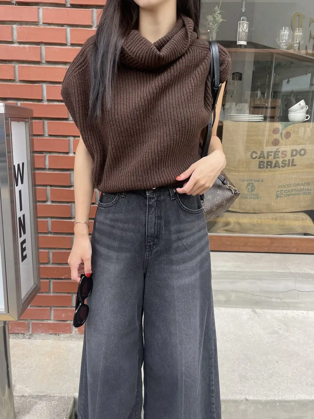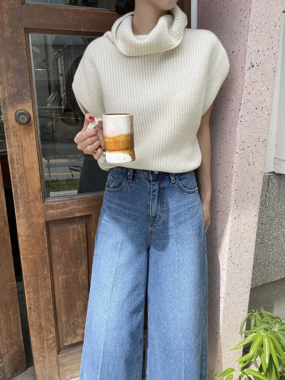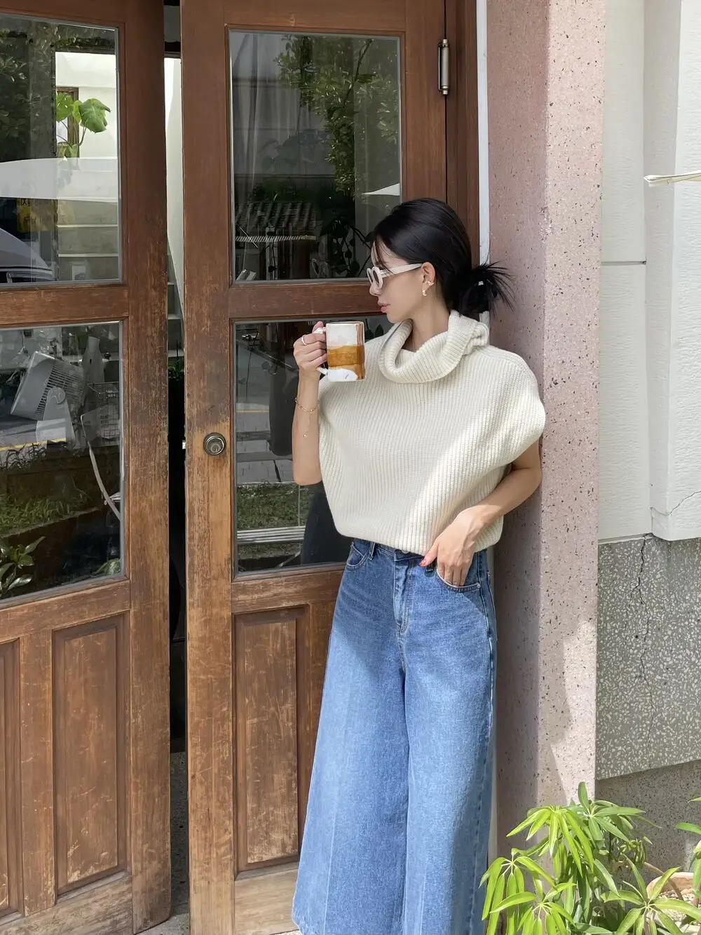 Korean Chic Autumn Vintage High Neck Pit Strip Loose Casual Sleeveless Knit Sweater Vest Women