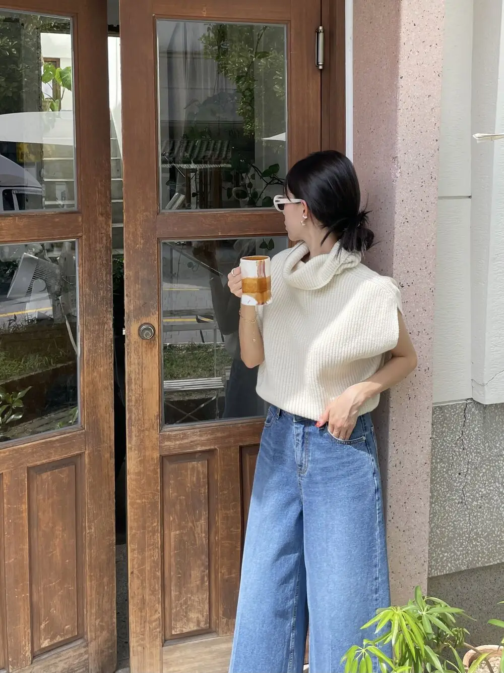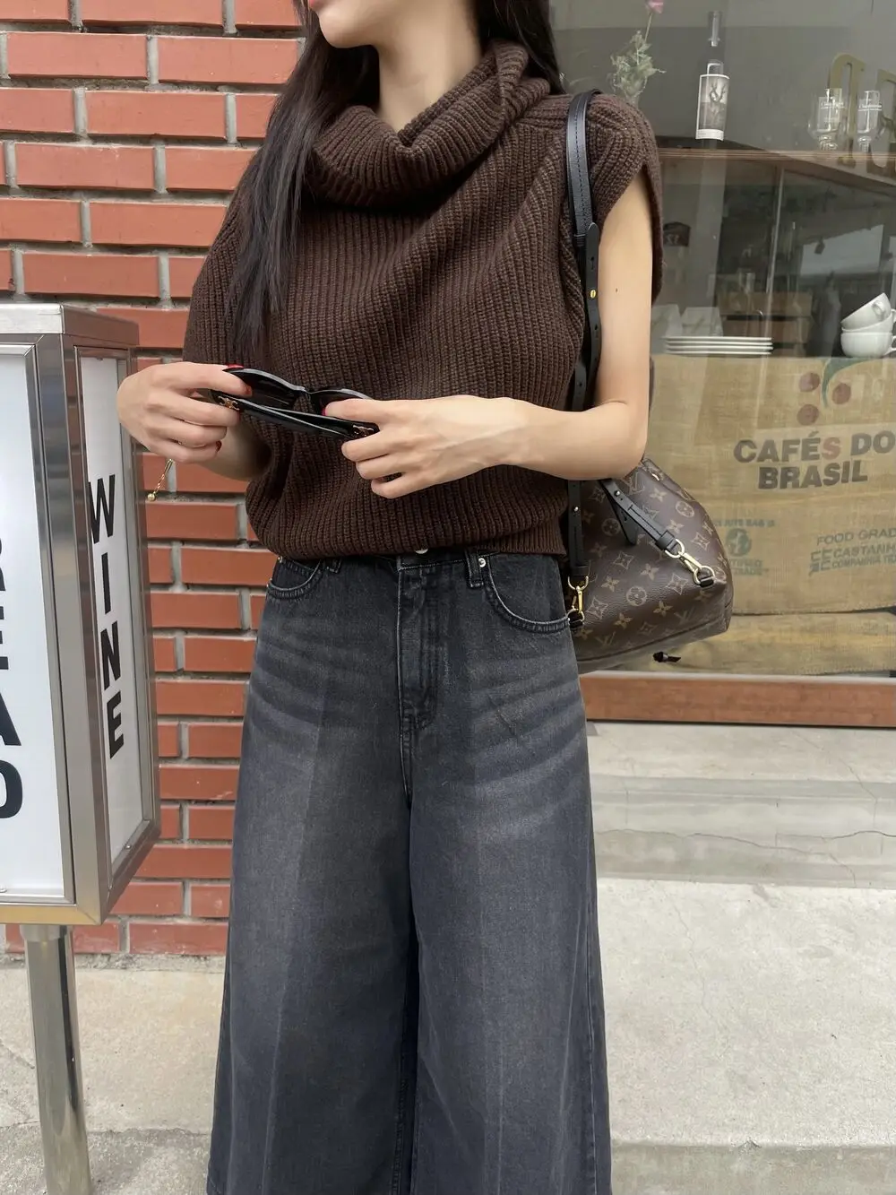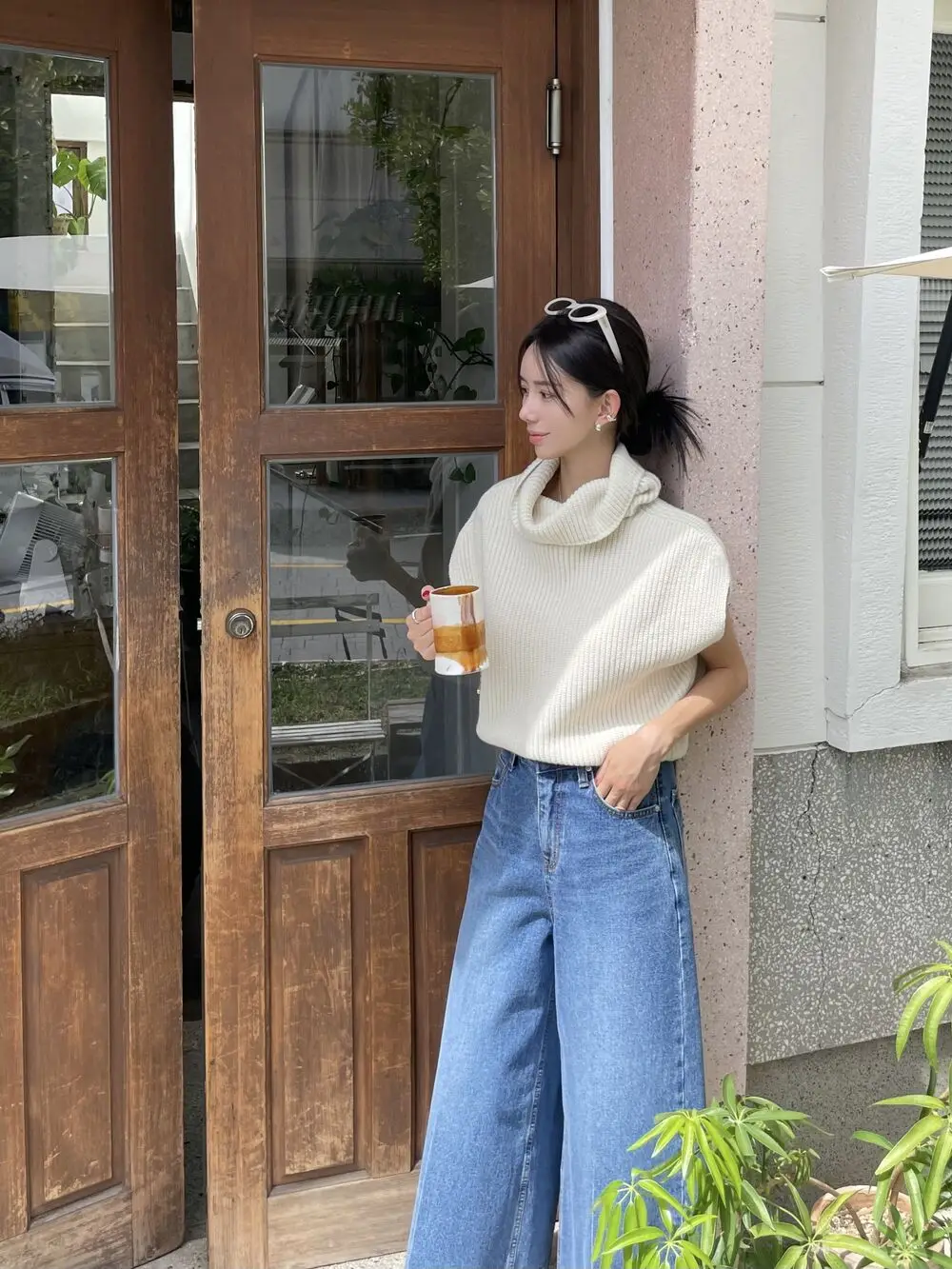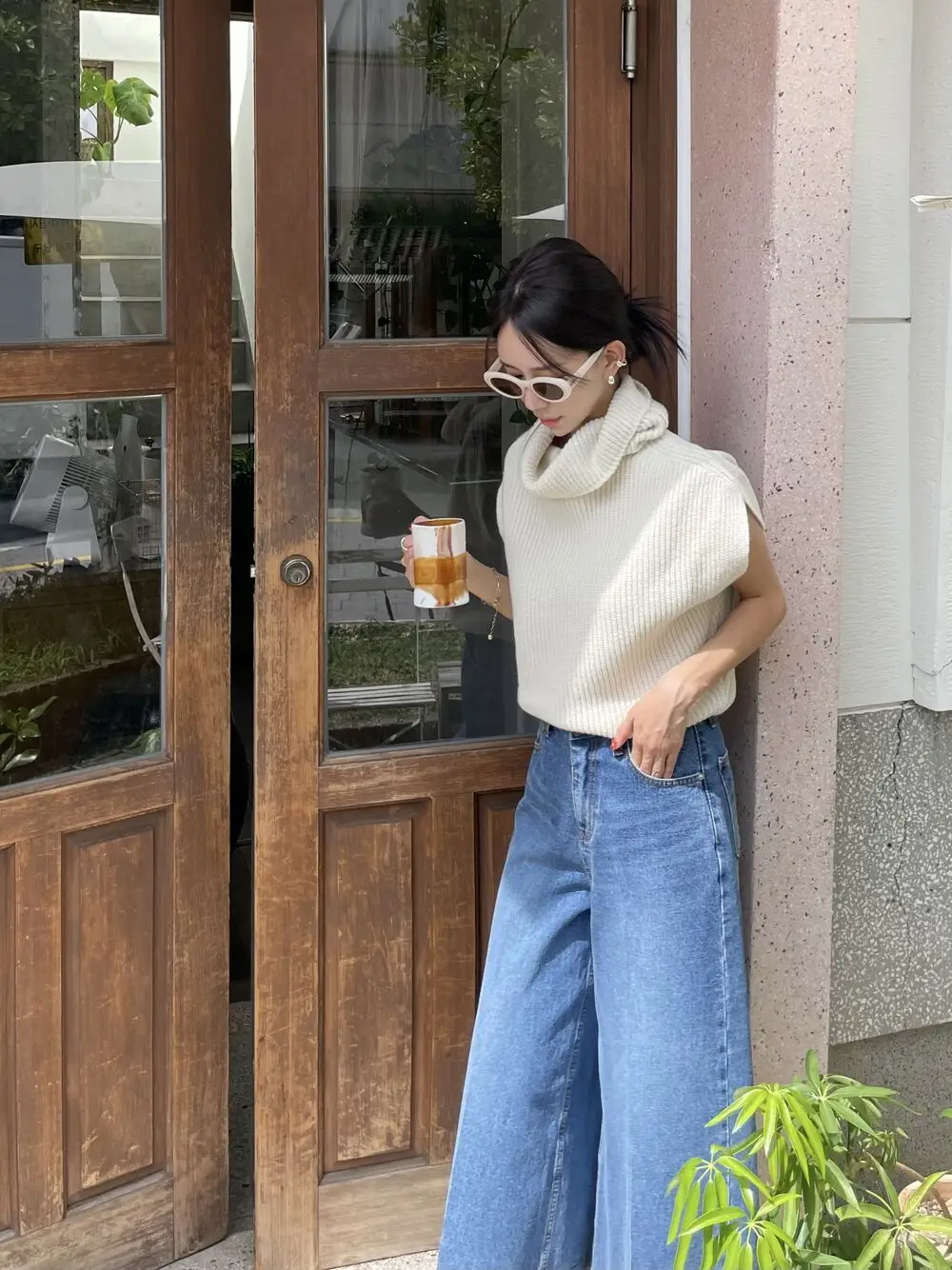 Korean Chic Autumn Vintage High Neck Pit Strip Loose Casual Sleeveless Knit Sweater Vest Women