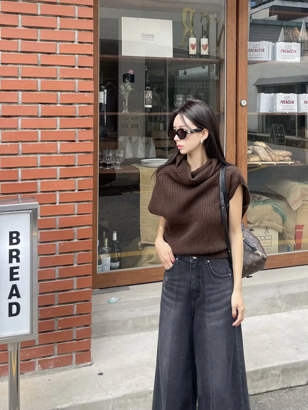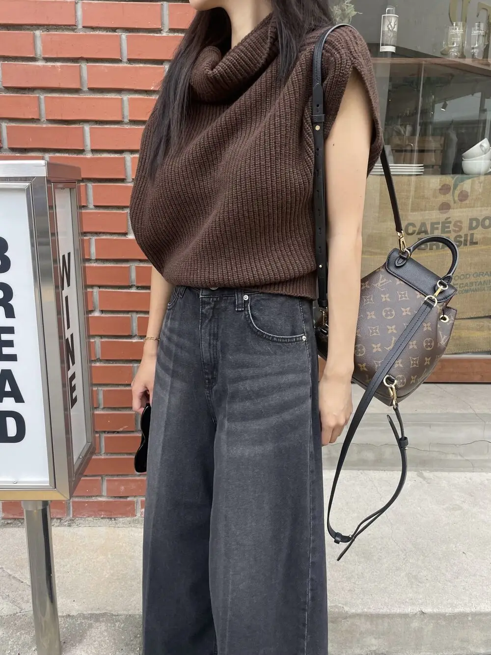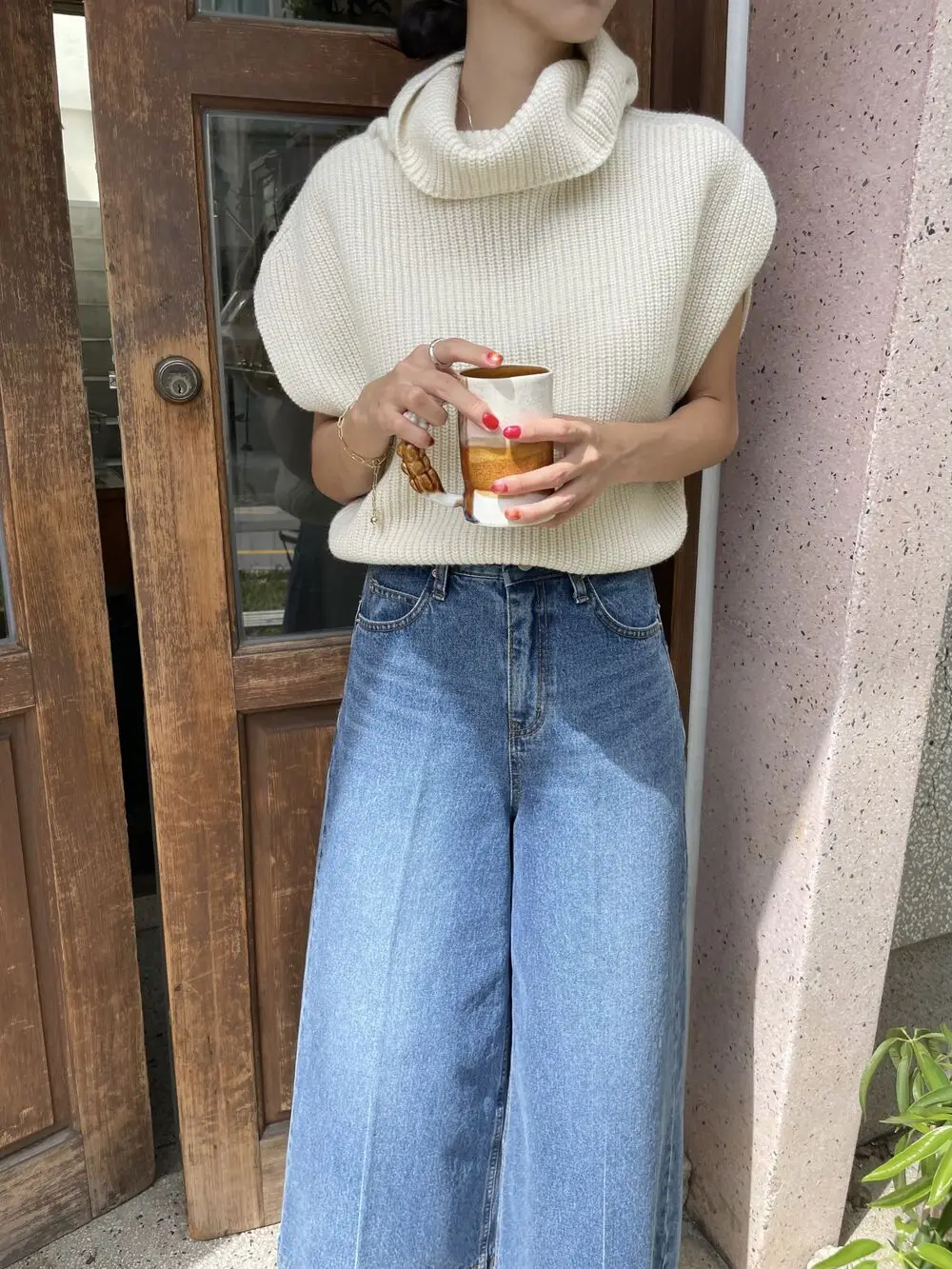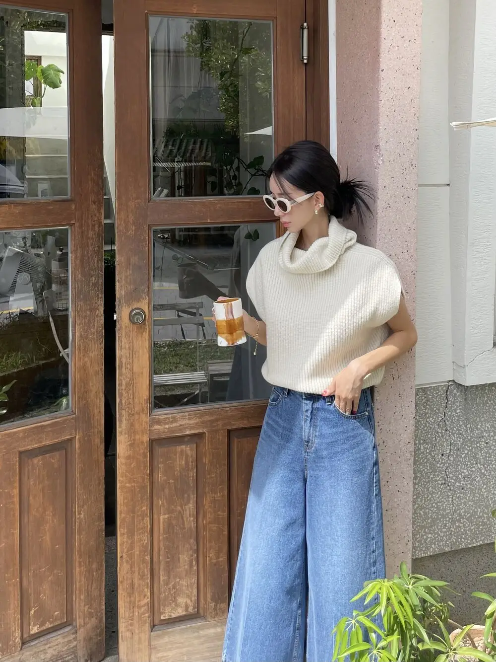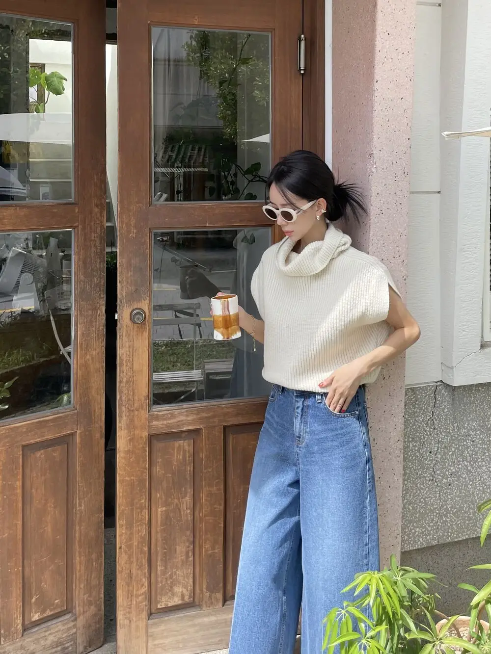 Korean Chic Autumn Vintage High Neck Pit Strip Loose Casual Sleeveless Knit Sweater Vest Women