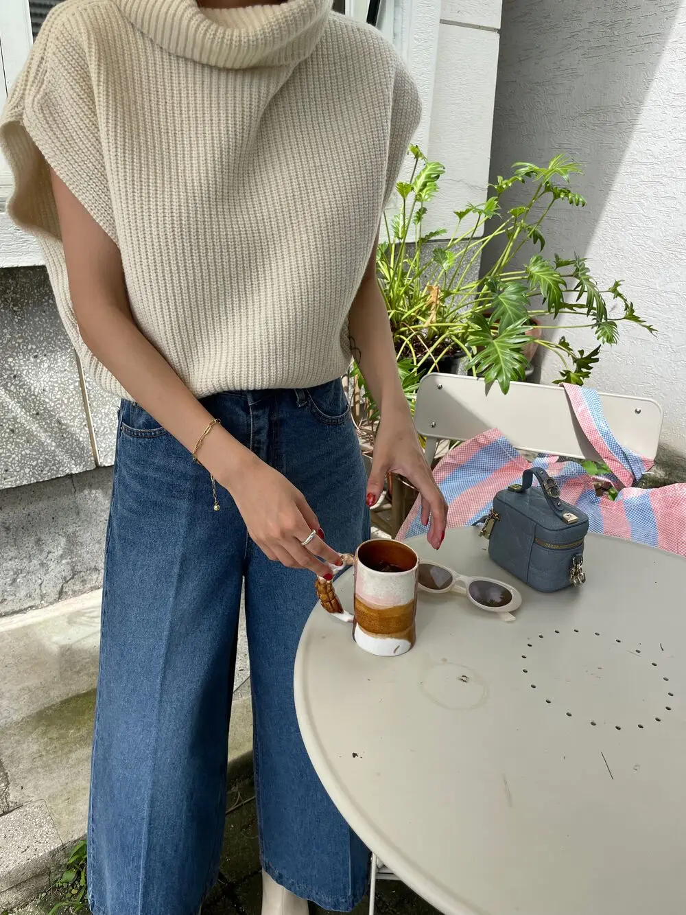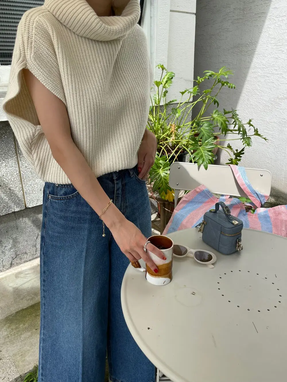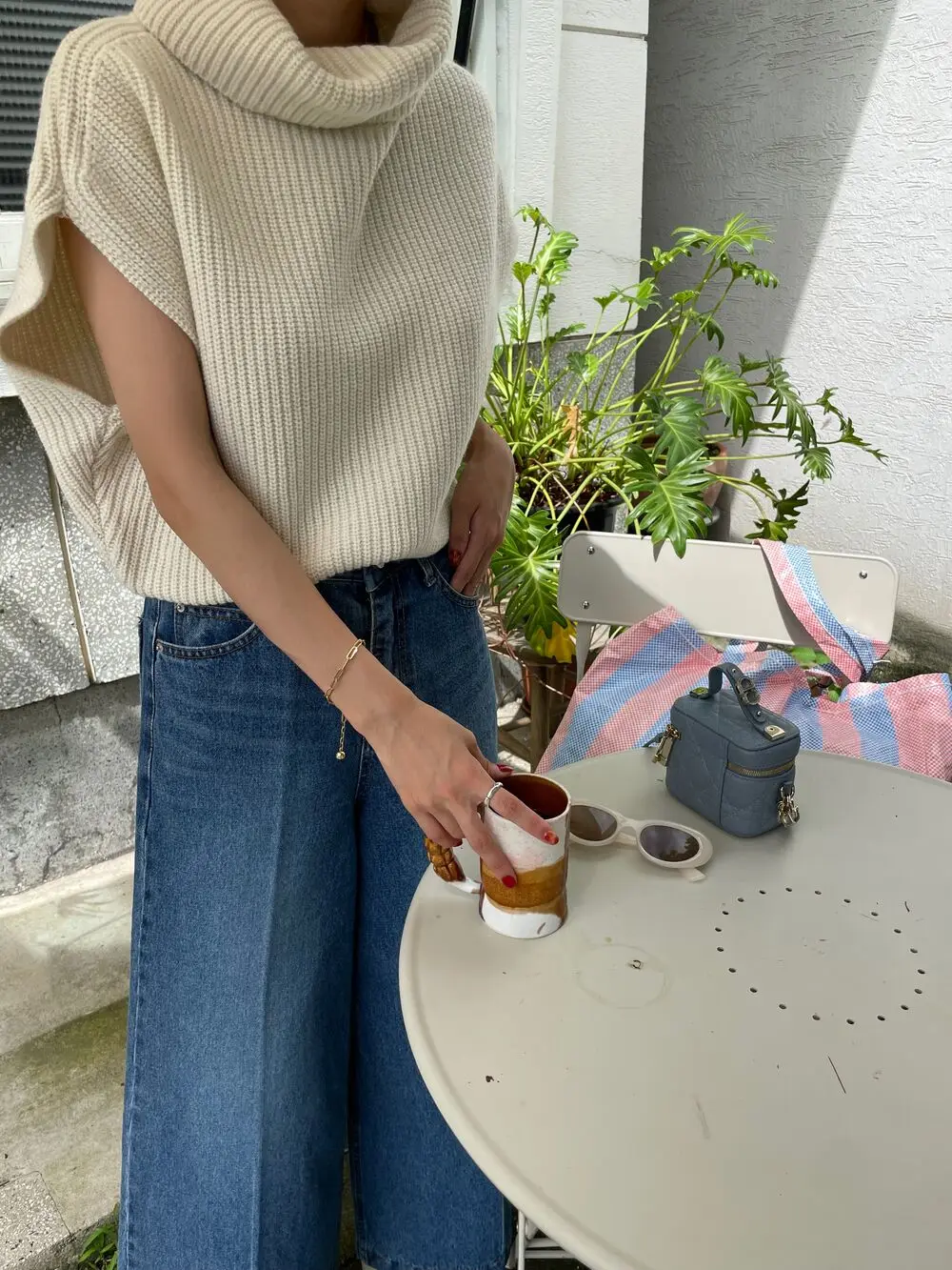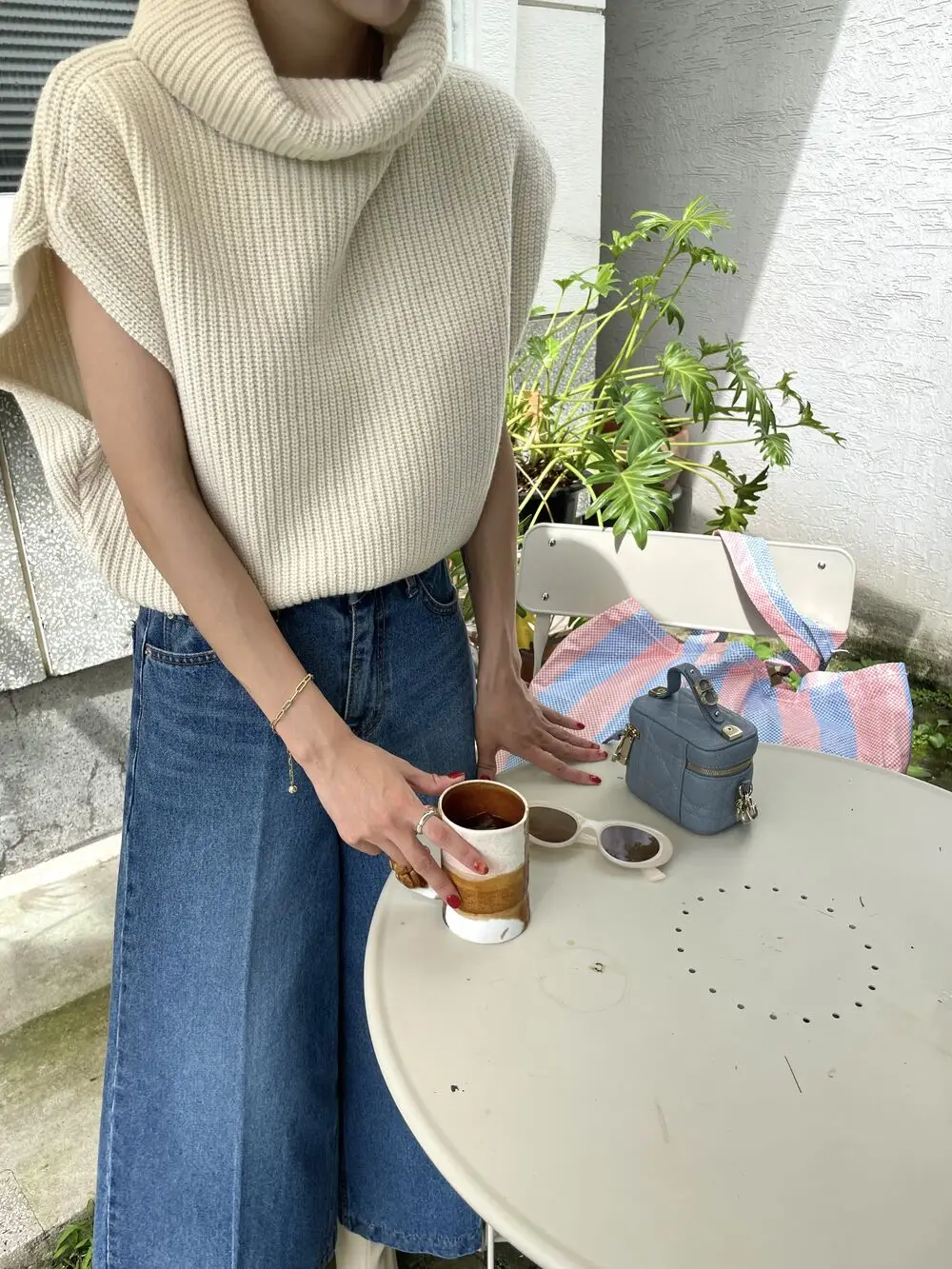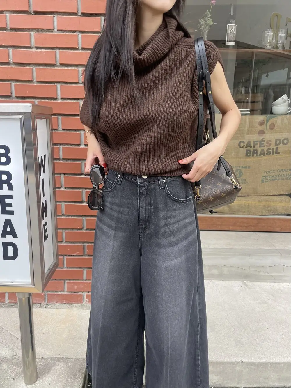 Korean Chic Autumn Vintage High Neck Pit Strip Loose Casual Sleeveless Knit Sweater Vest Women