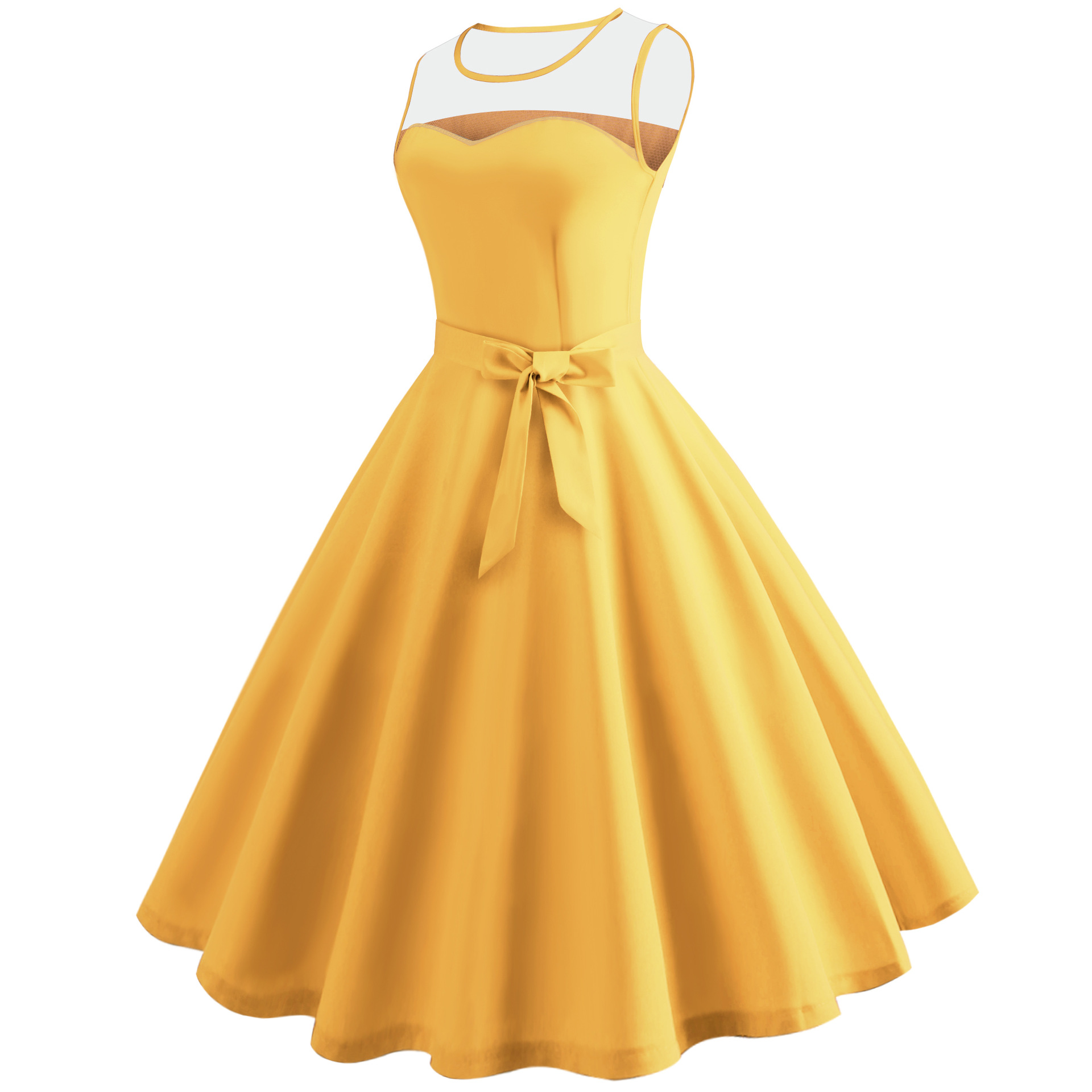 Ladies' Mesh Patchwork Waist-slimming Dress