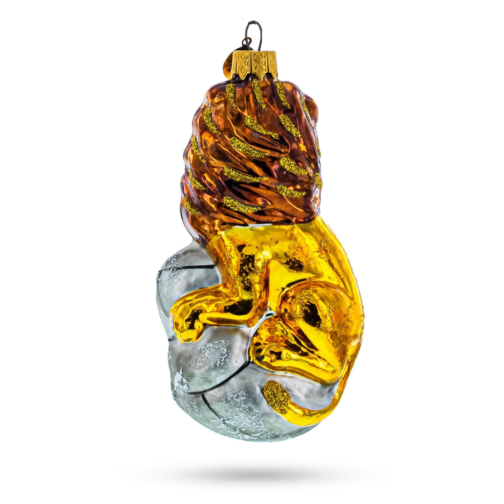 Lion on Gray Rock Glass Christmas Ornament