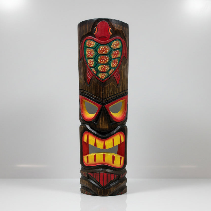 This handmade, wooden tiki mask decor brings island allure to any room. Expertly carved with intricate details, it's made with natural materials and perfect for adding a touch of charm to any home.
