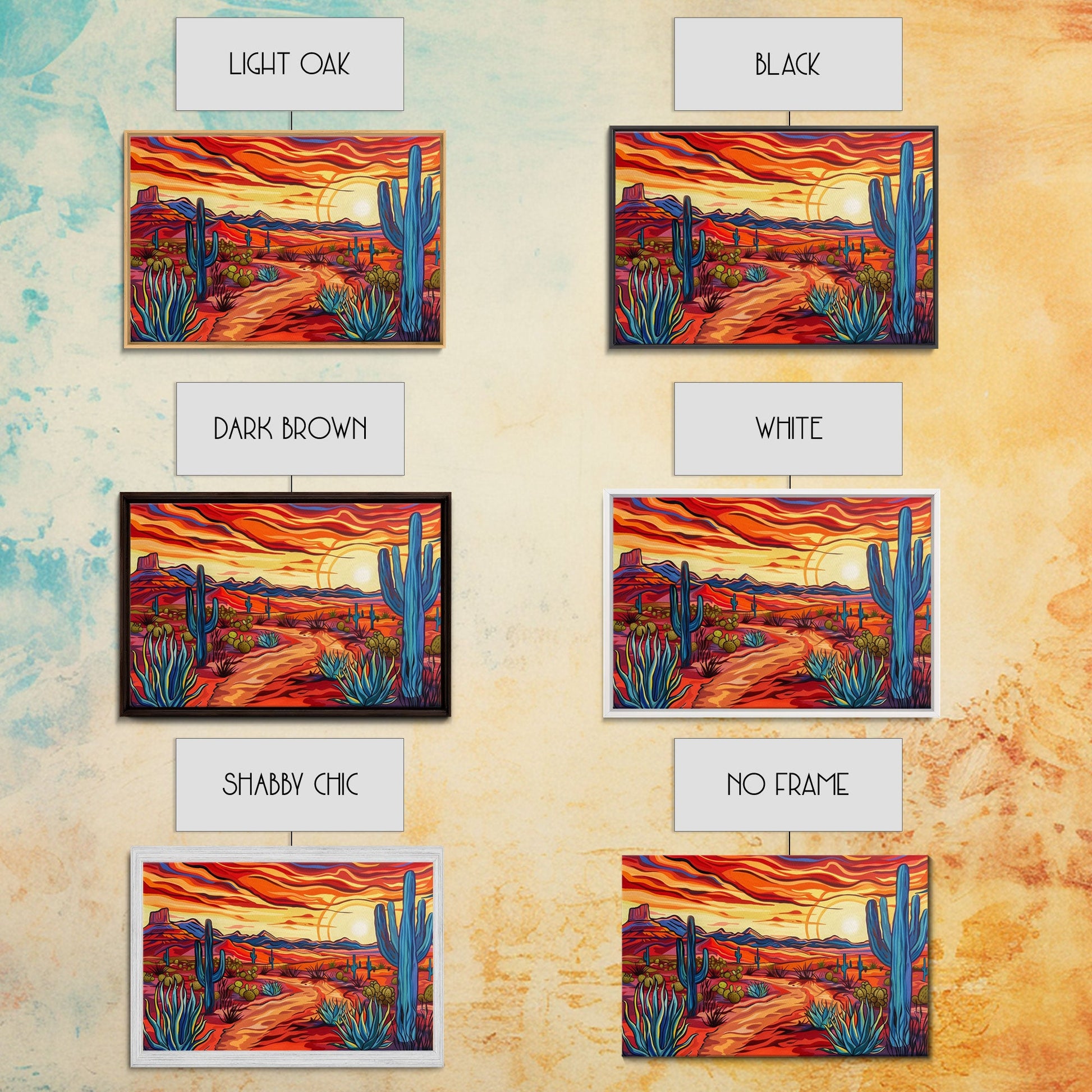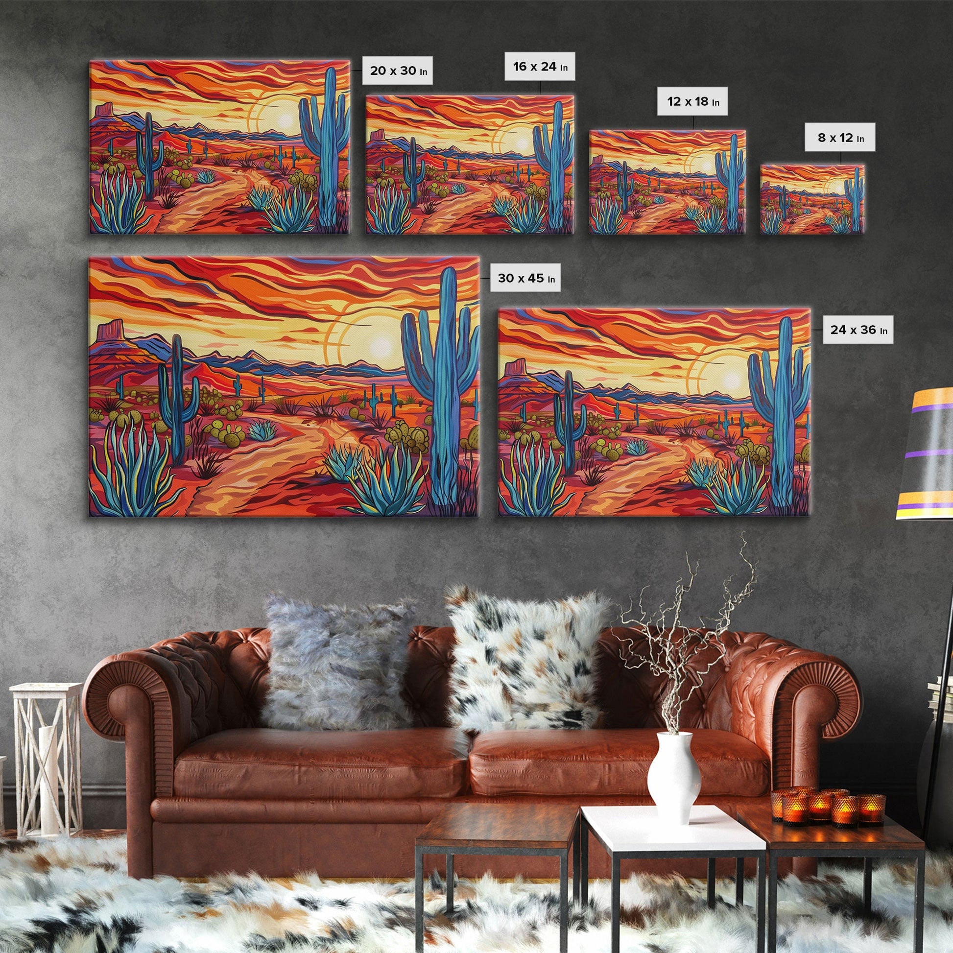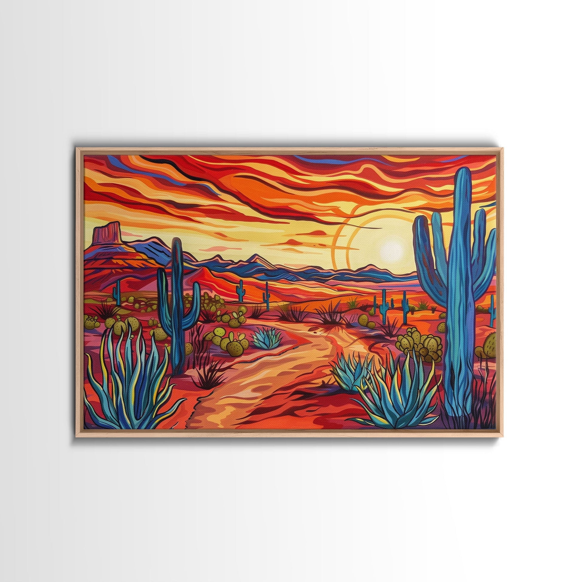 Mid Centry Modern Pop Art Style Desert Landscape Painting Canvas Print, Retro Style Wall Art, Home Decor, Desert Wall Art, Arizona Art