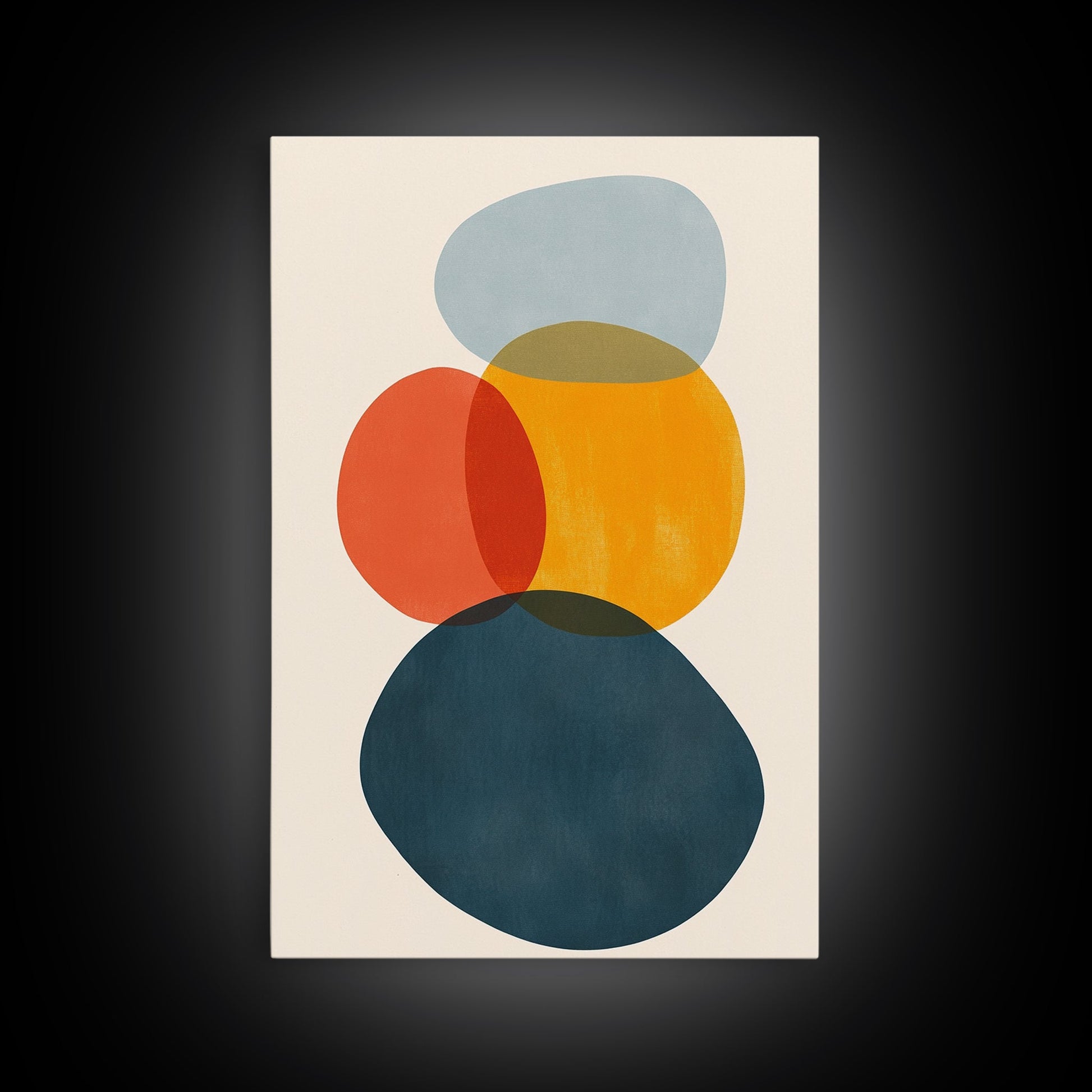 Mid Century Modern Abstract Wall Art Print, White Background Watercolor Spots On Canvas, Canvas Print, Modern Retro Living Room Art
