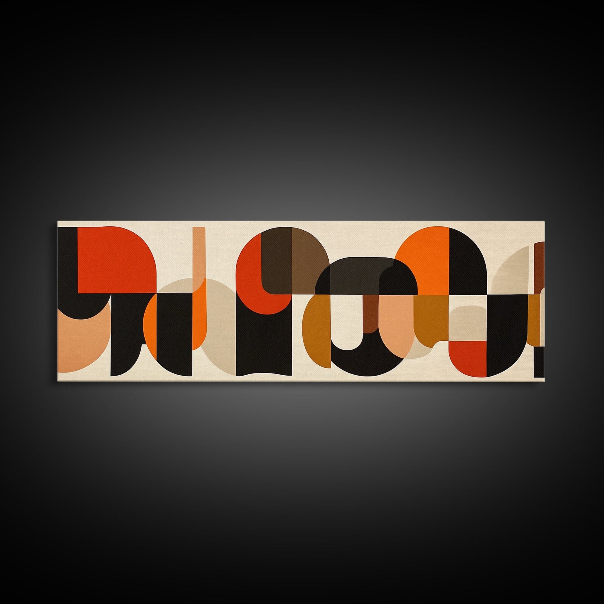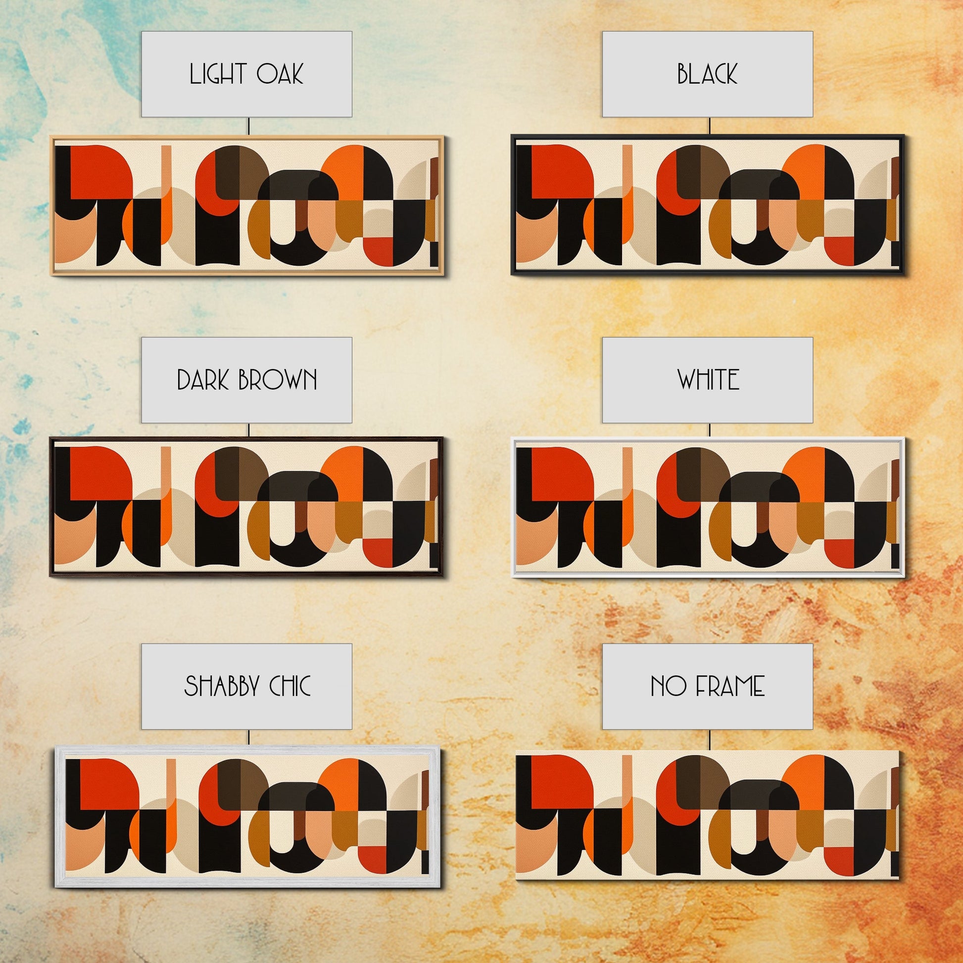 Mid-century Modern Wall Art, Framed Panoramic Art, Earth Tones, Subdued Artwork, Geometric Patterns, Above Couch or Sofa Art