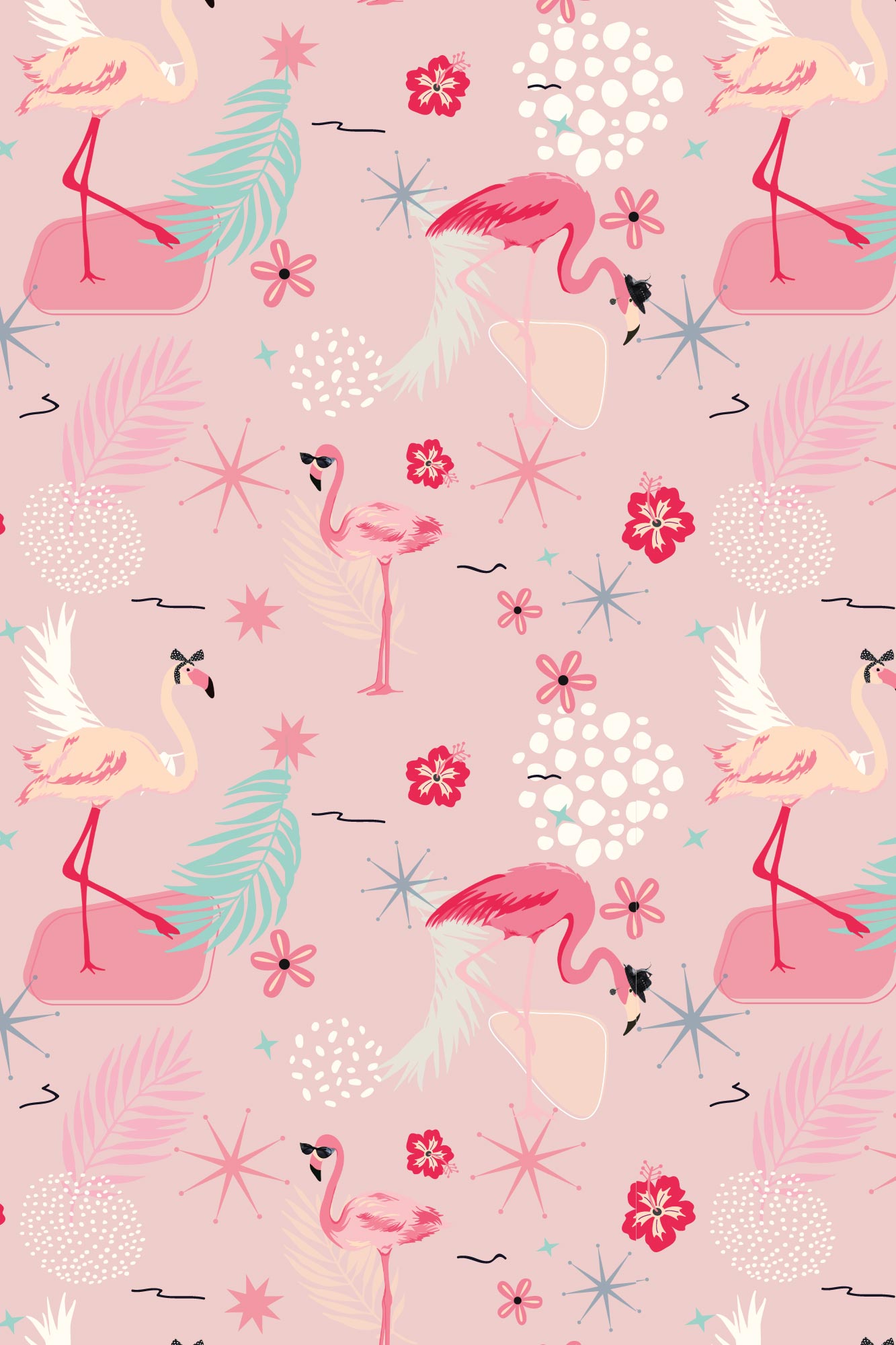 - Pink with Stylized Flamingo print