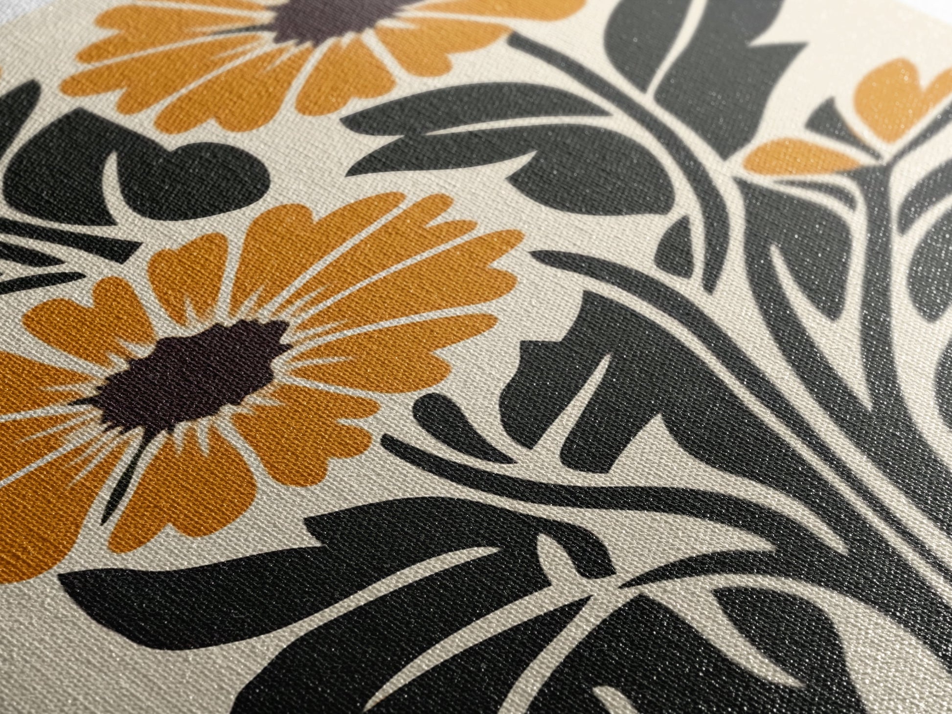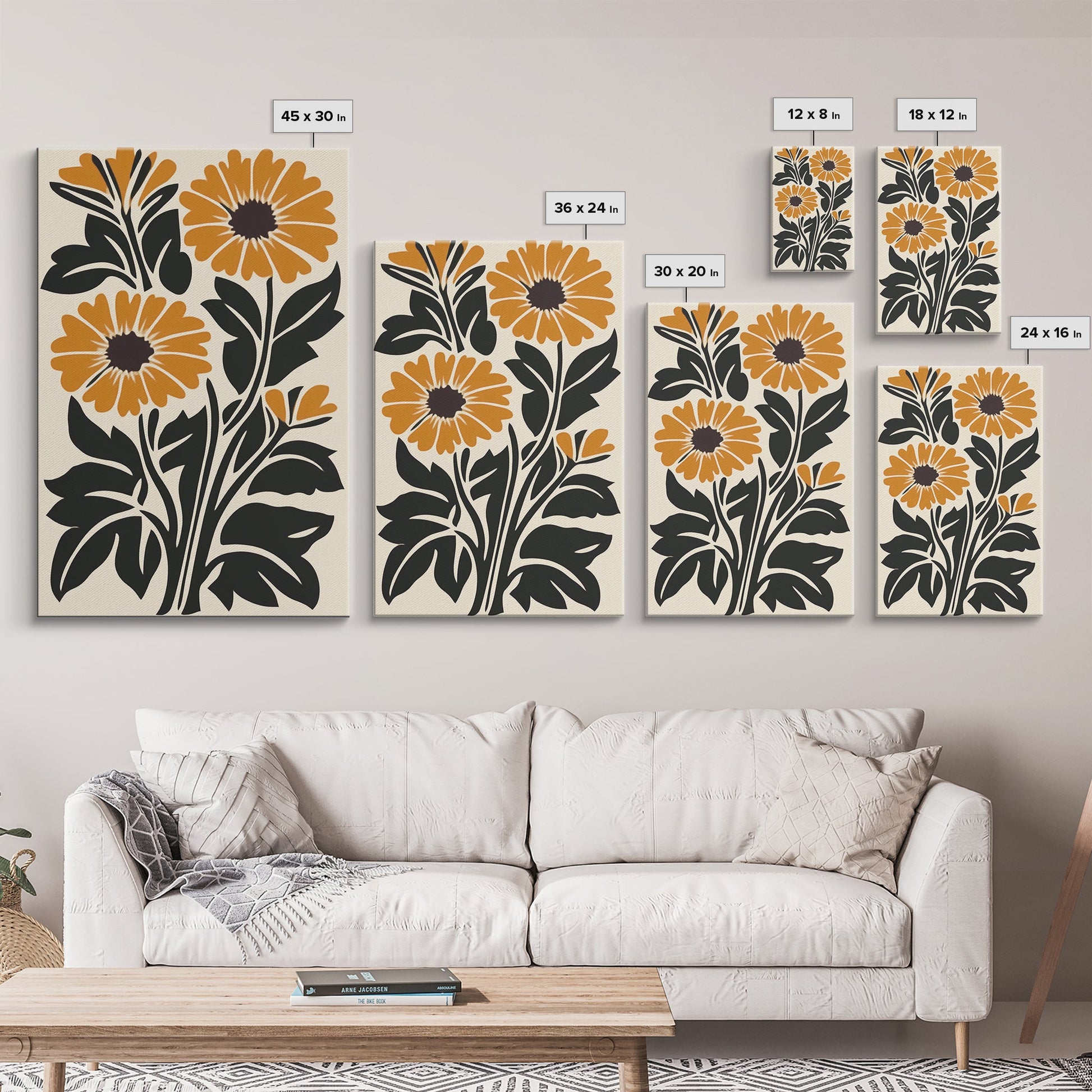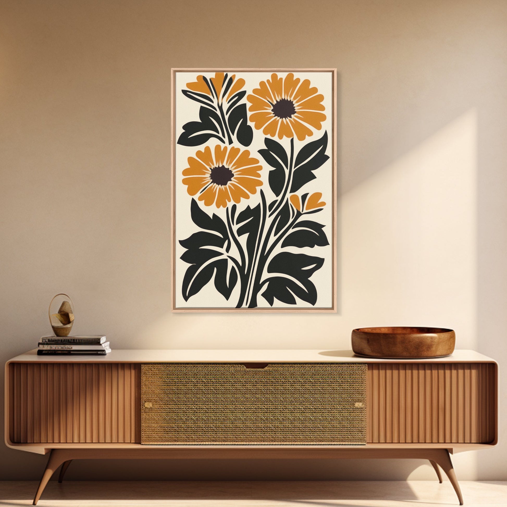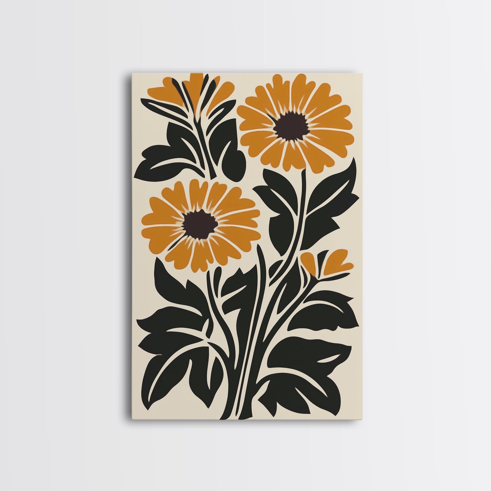 Midcentury Modern Boho Flowers Bouqet Wall Art Canvas Print, MCM Wall Art, Retro Style Abstract Art, Orange Flowers on White Background