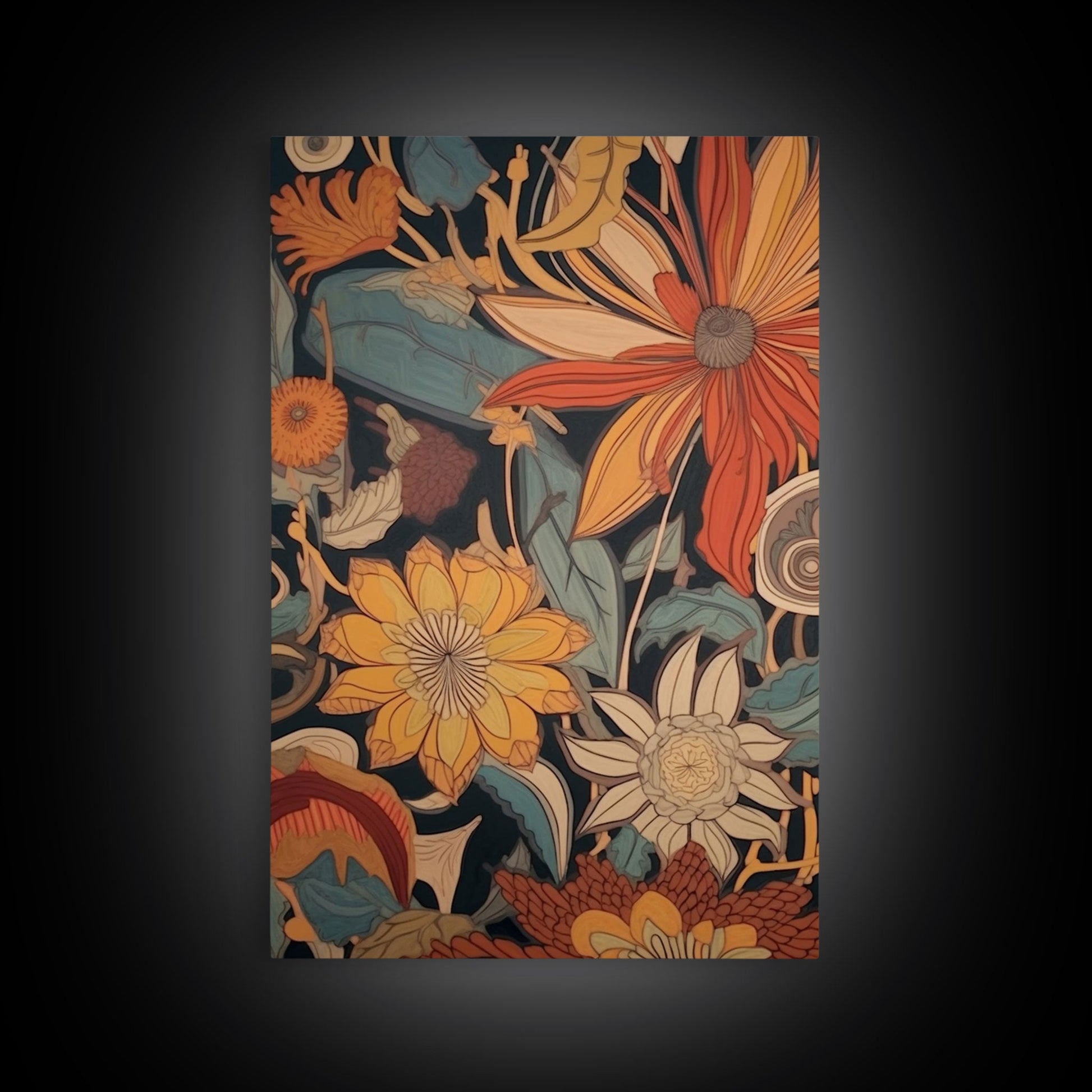 Midcentury Modern Framed Canvas Wall Art Set Flowers Bouquet Floral Botanical Prints Art Boho Wall Decor, Retro Wall Art, Minimalist Decor