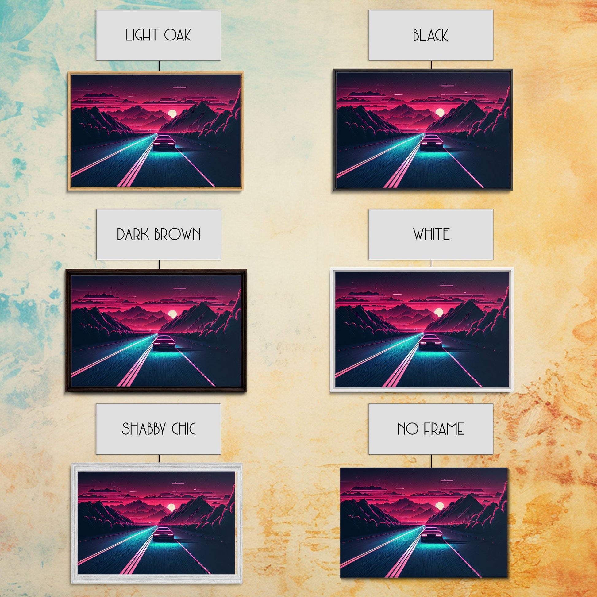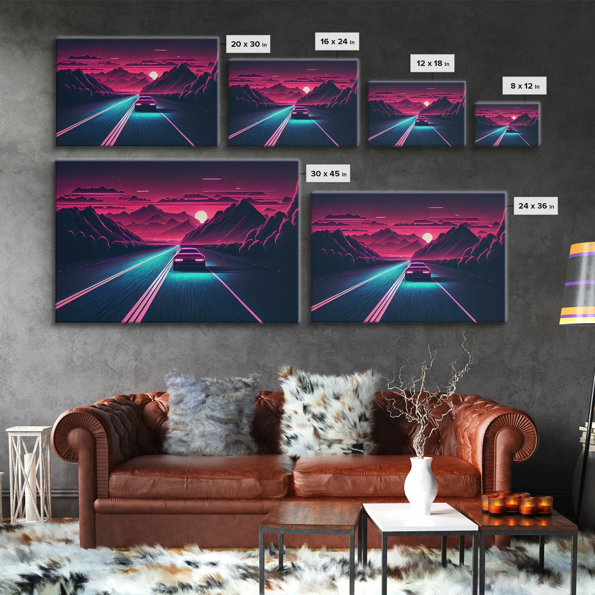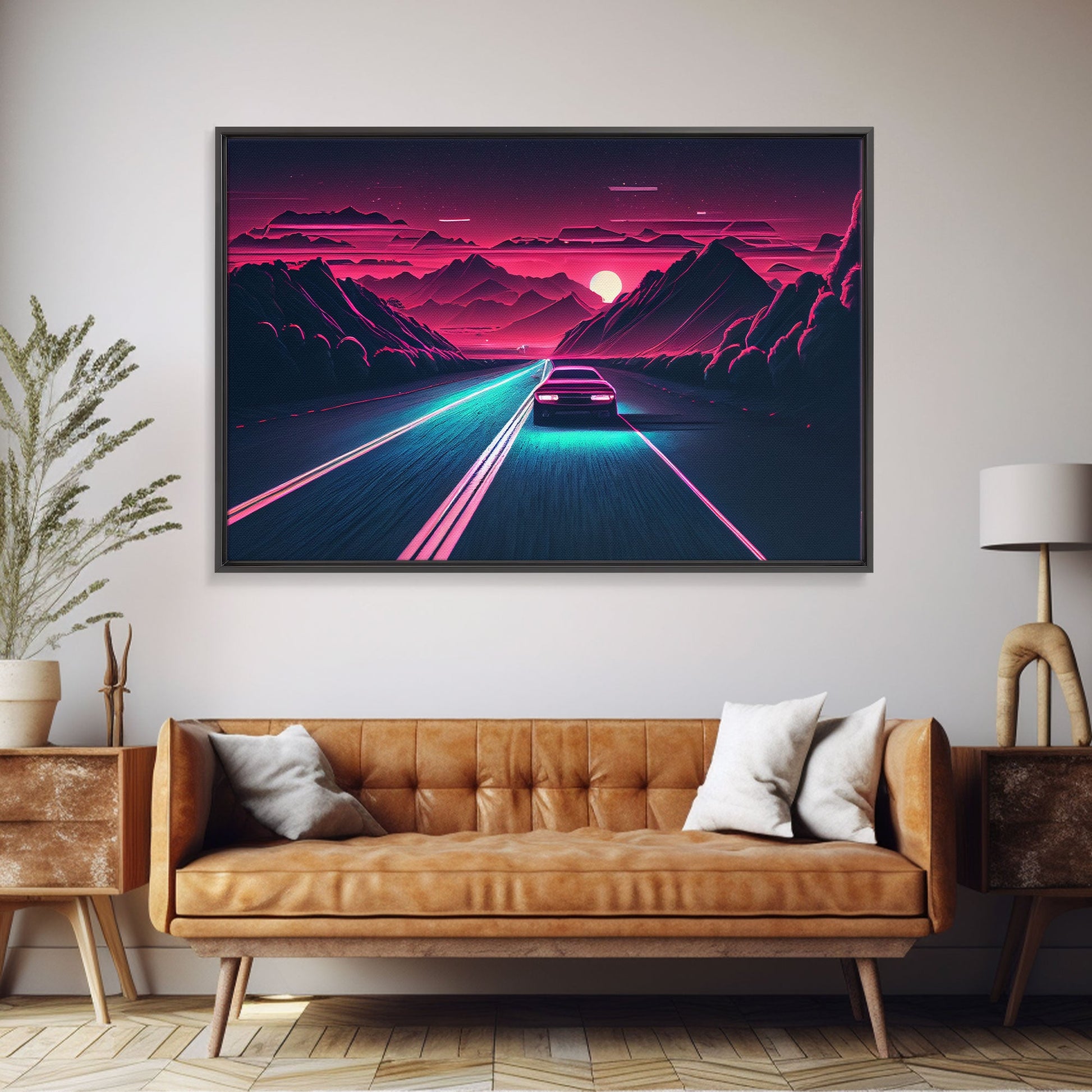 Midnight Drive, Unique Synthwave Style Retro Art, 80s style art, framed canvas print