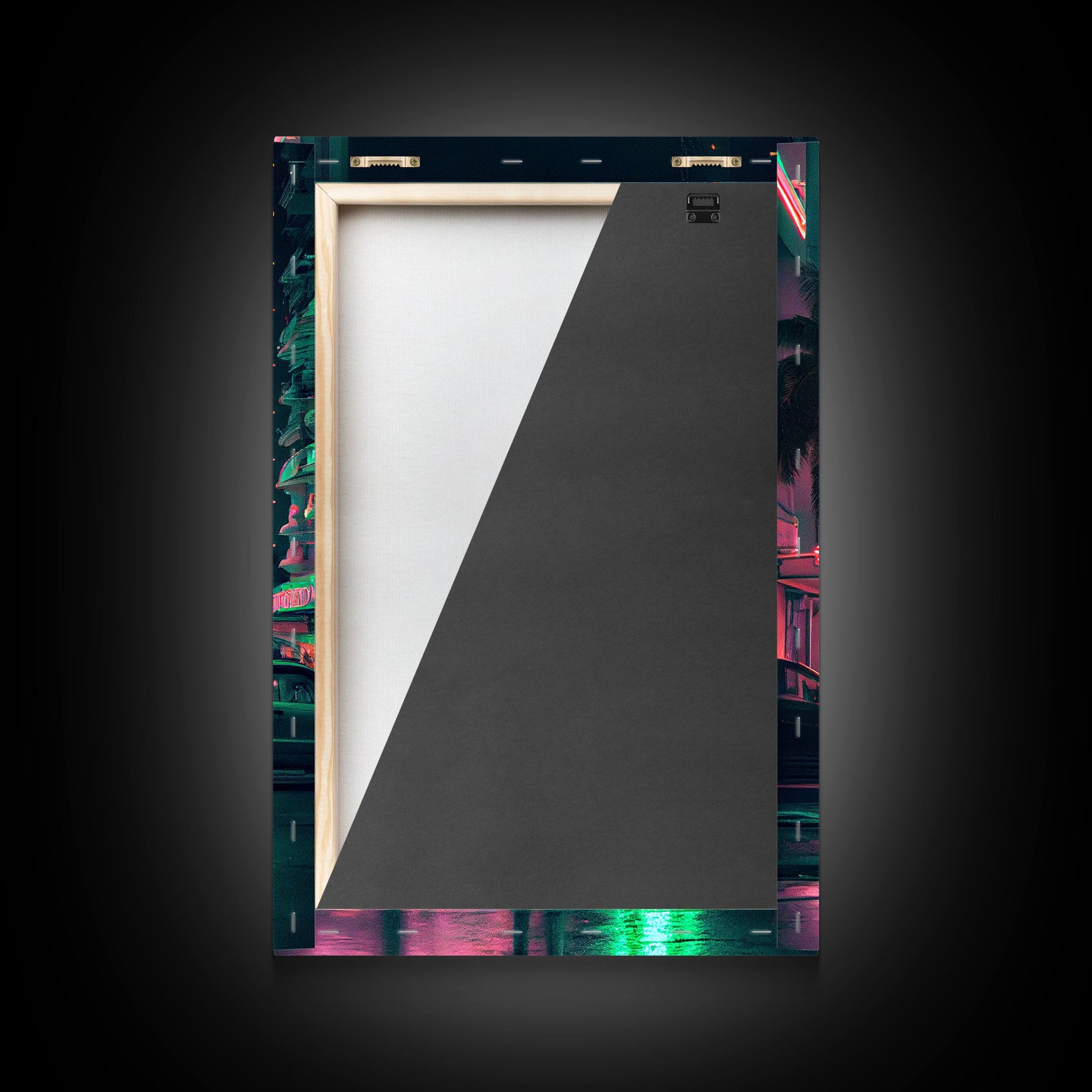 Neon Tokyo Streets, 80s Retro Style Tokyo Art, Framed Canvas Print