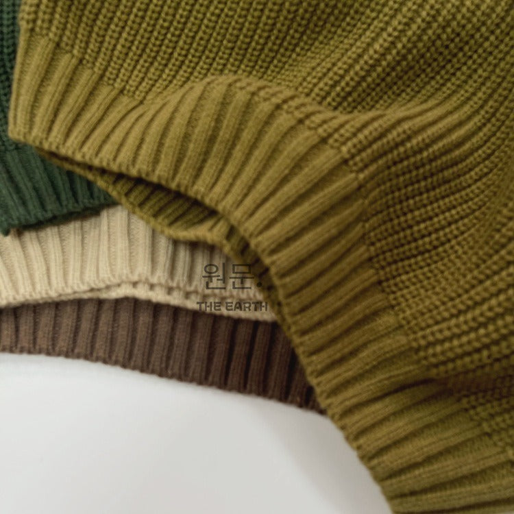 New Children Vintage Knitted Sweater Baby Girl Solid Casual Knitwear Boys Loose Versatile Pullover Kids Thicken Warm Tops