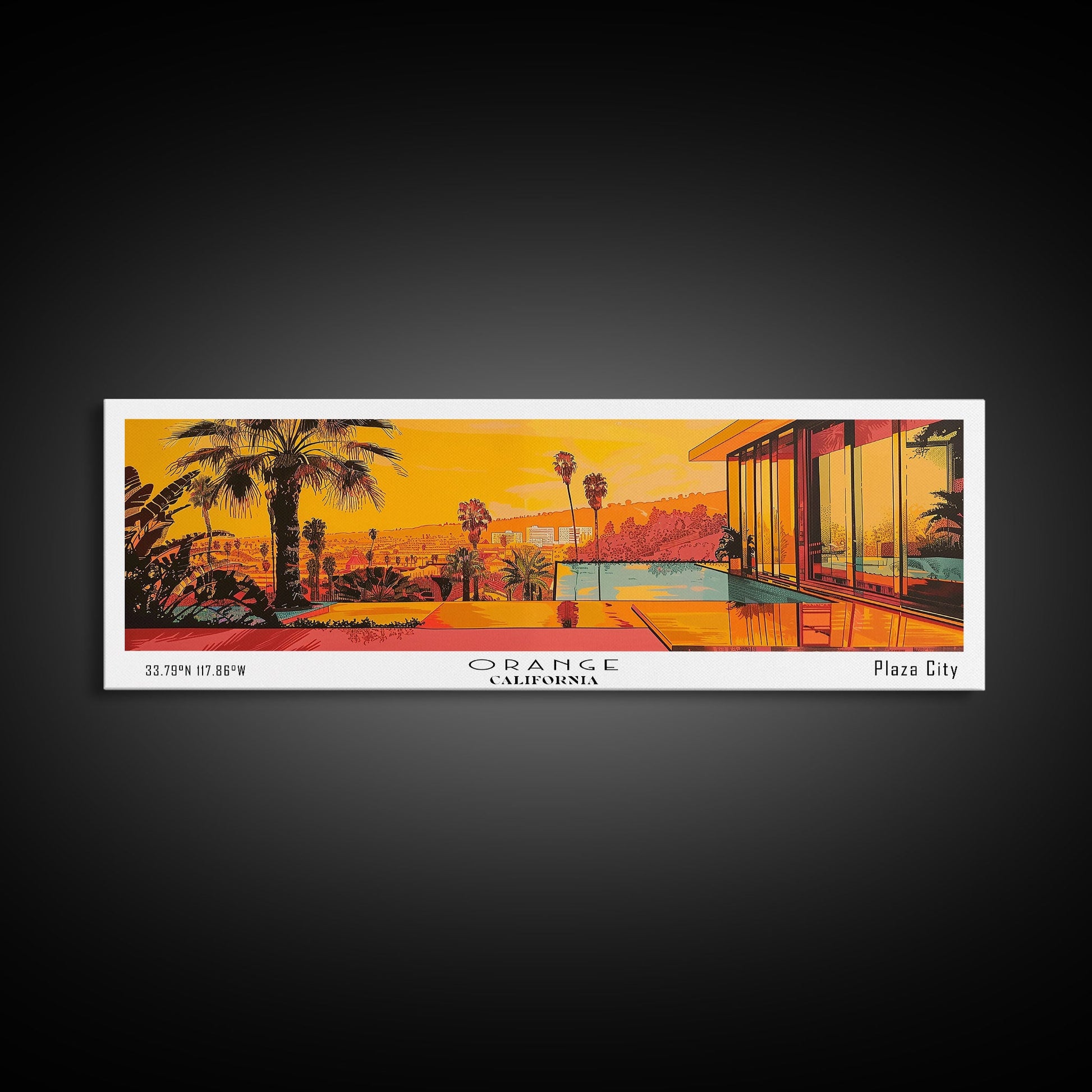 Orange California Panoramic Painting, Mid Century Modern Framed Canvas Print, Retro Pop Art Travel Poster, City Art, Office Wall Decor, Living Room Art