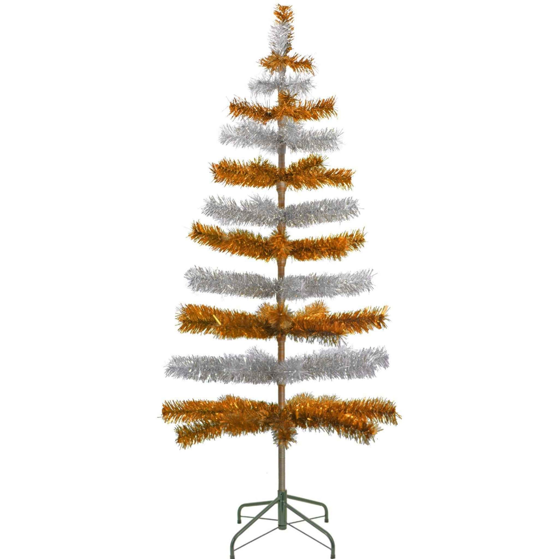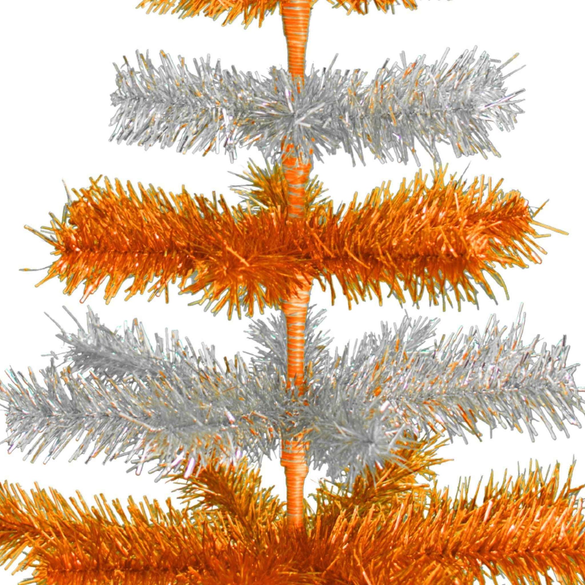 Decorate for the holidays with a Shiny Orange and Metallic Silver retro-style Christmas Tree.