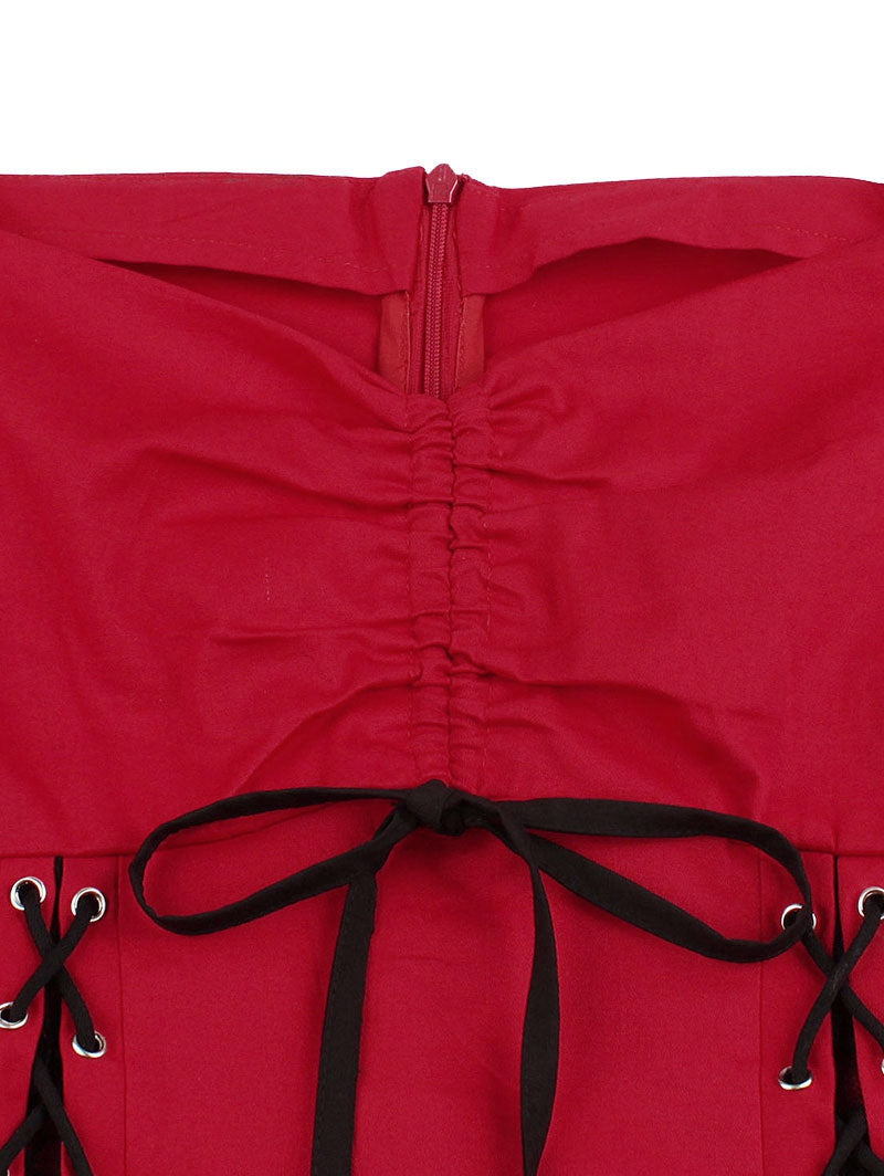 Plus Size Lace Panel Sweetheart Neck Vintage Dress