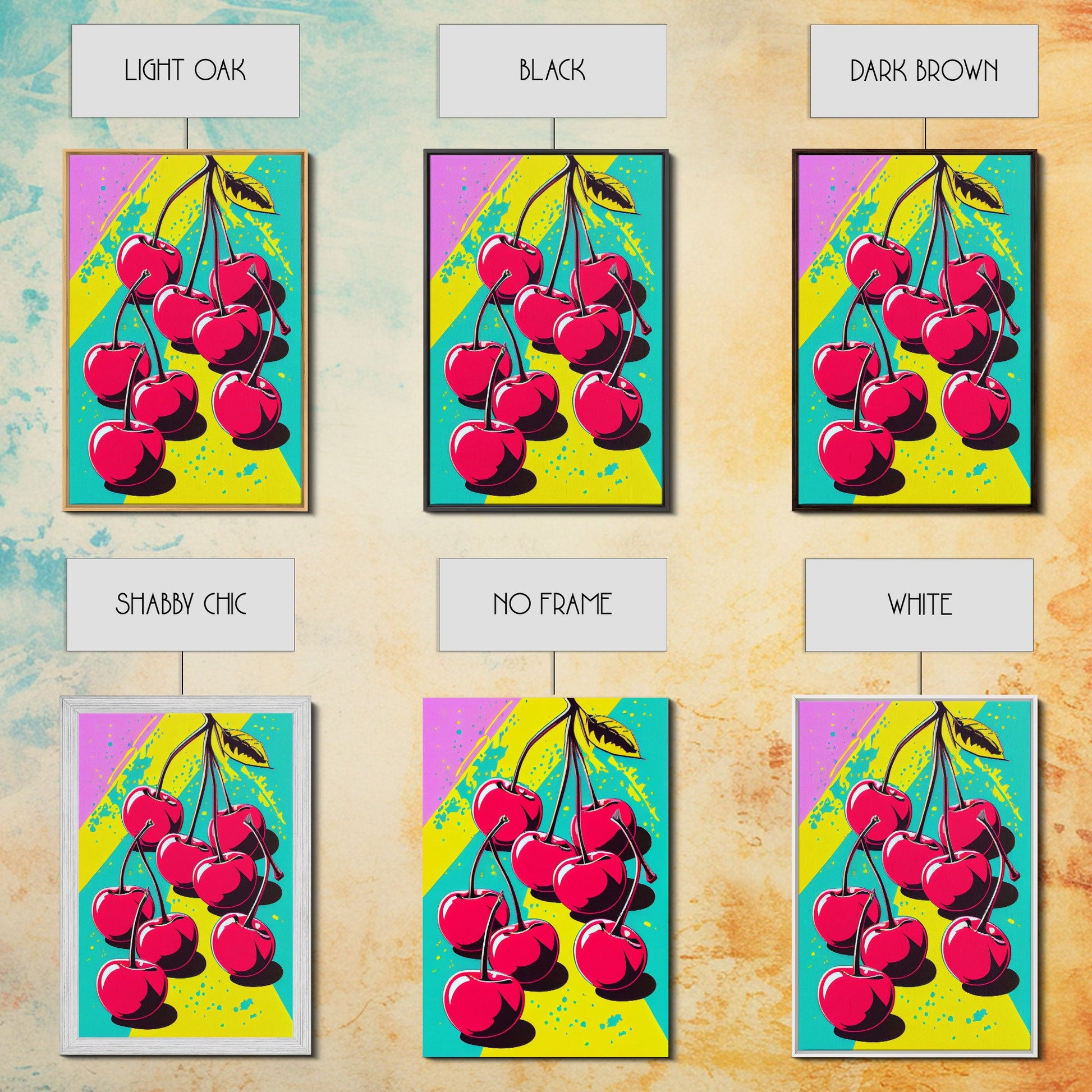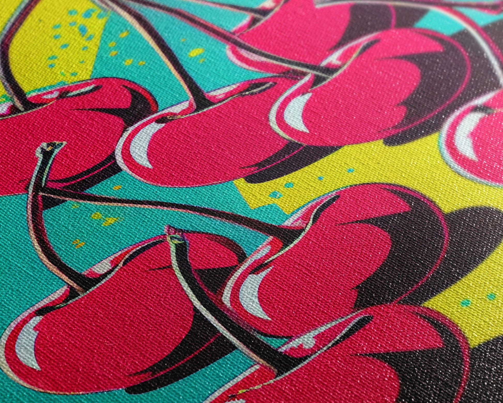Pop Art Cherry Painting Canvas Print, Framed Art, MCM Style, Midcentury Modern Pop Art, Retro Comic Book Style Wall Art