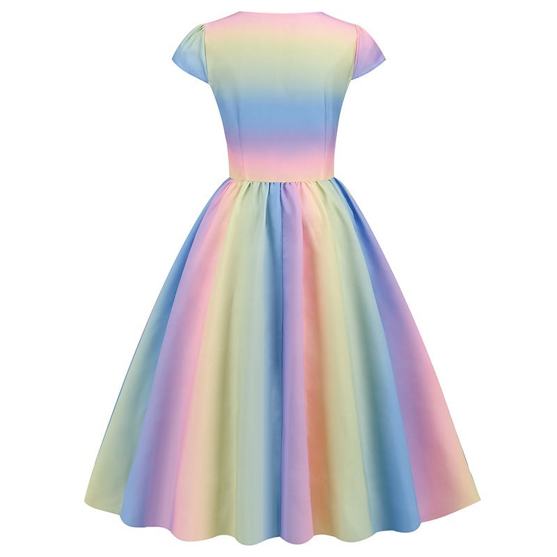 Printed Dress Women's Short Sleeve Waist-tight Retro