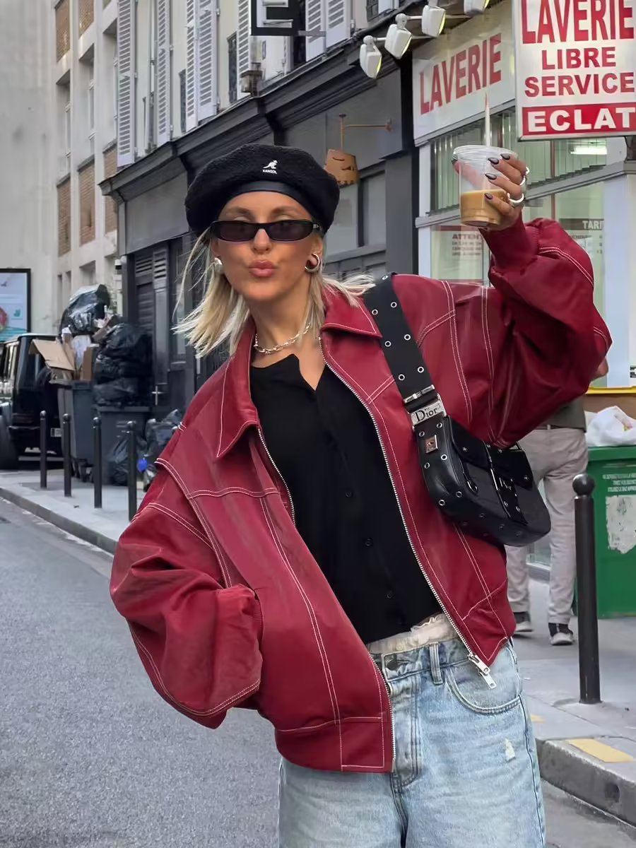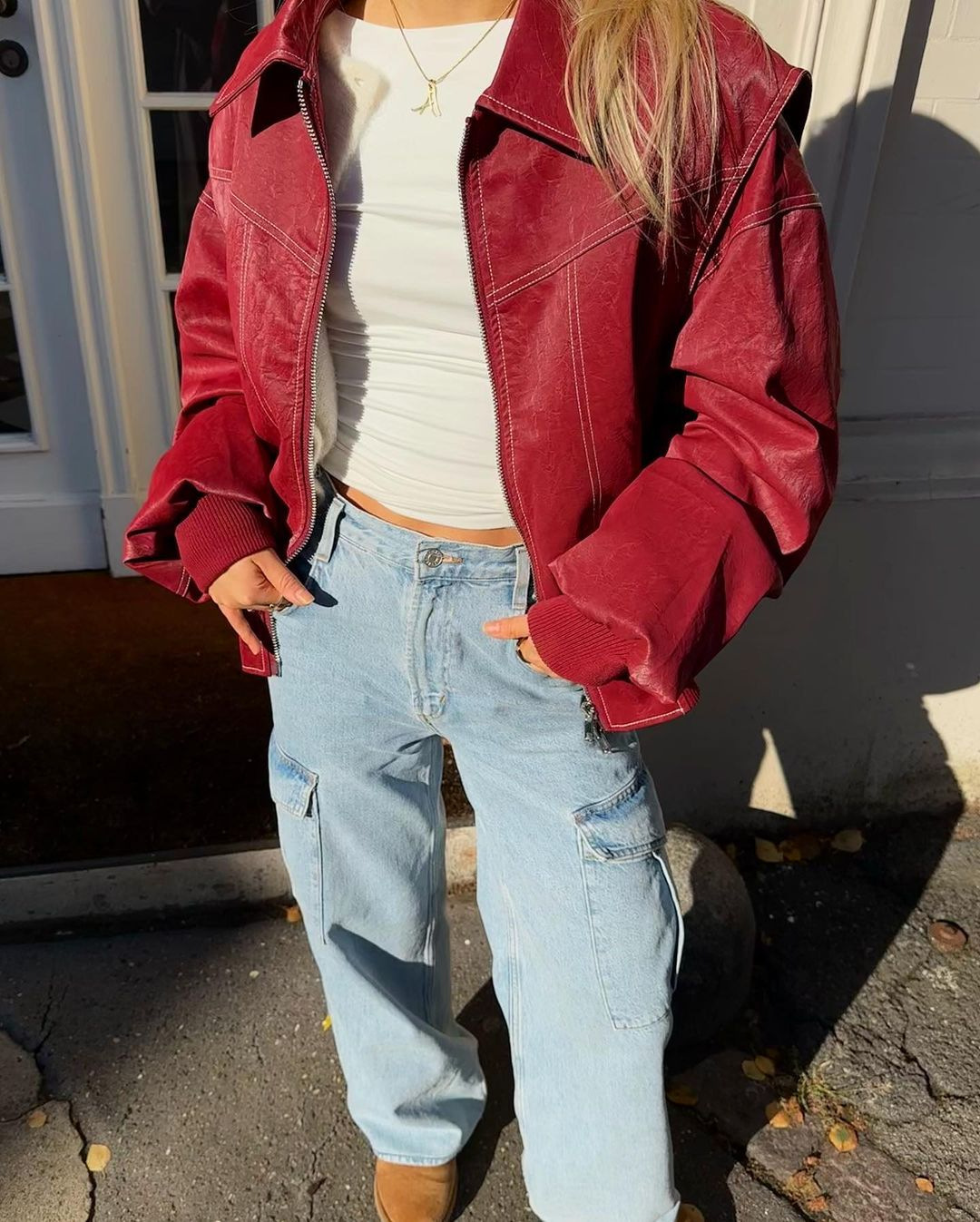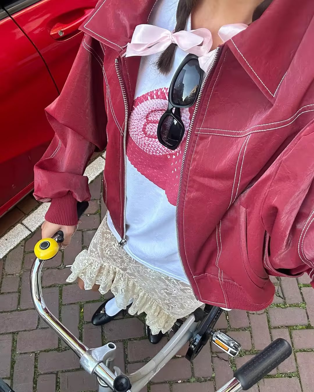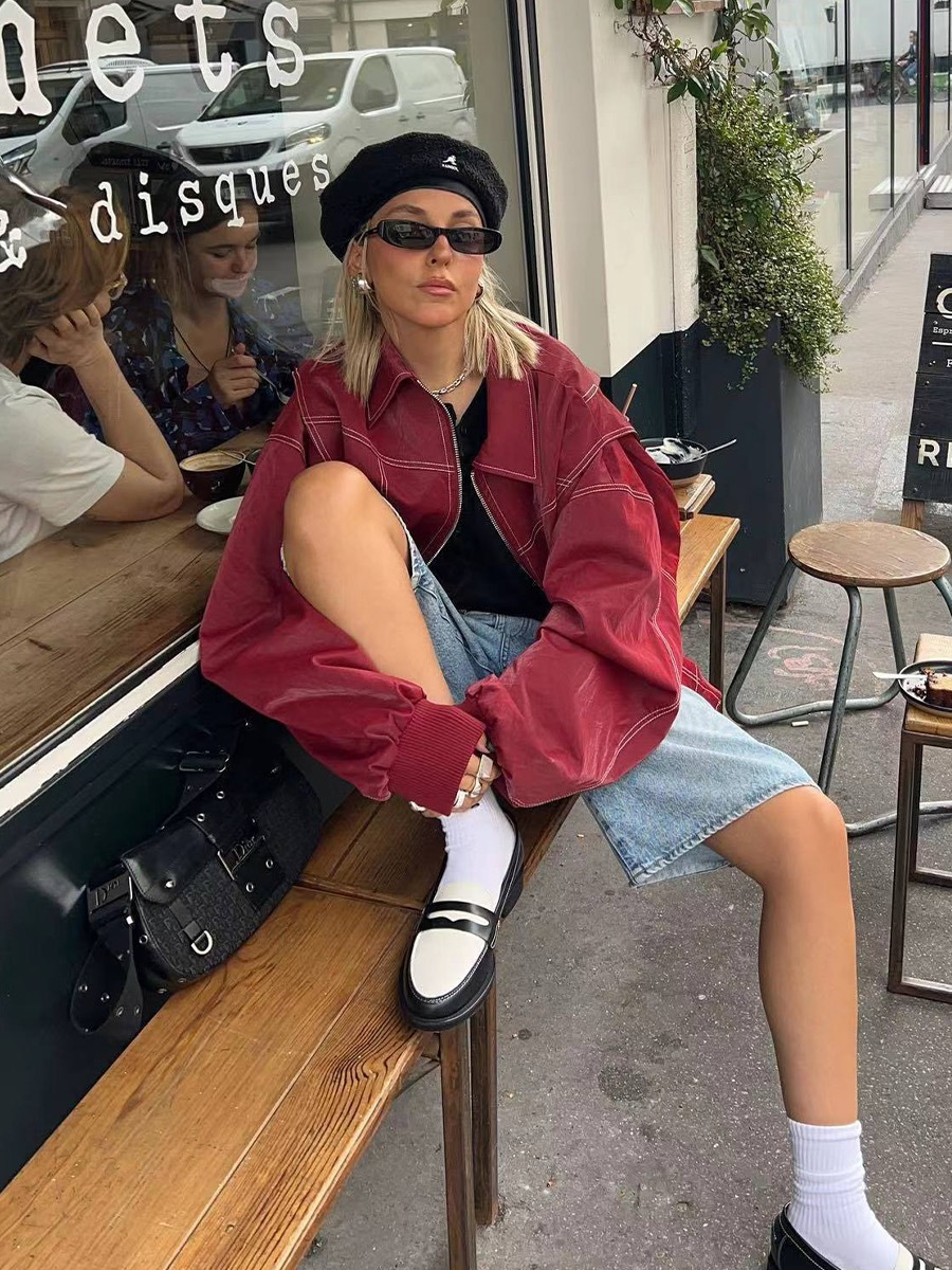 PU Autumn Winter Vintage Long Sleeve Patchwork Jackets Fashion Streetwear Pocket Coats