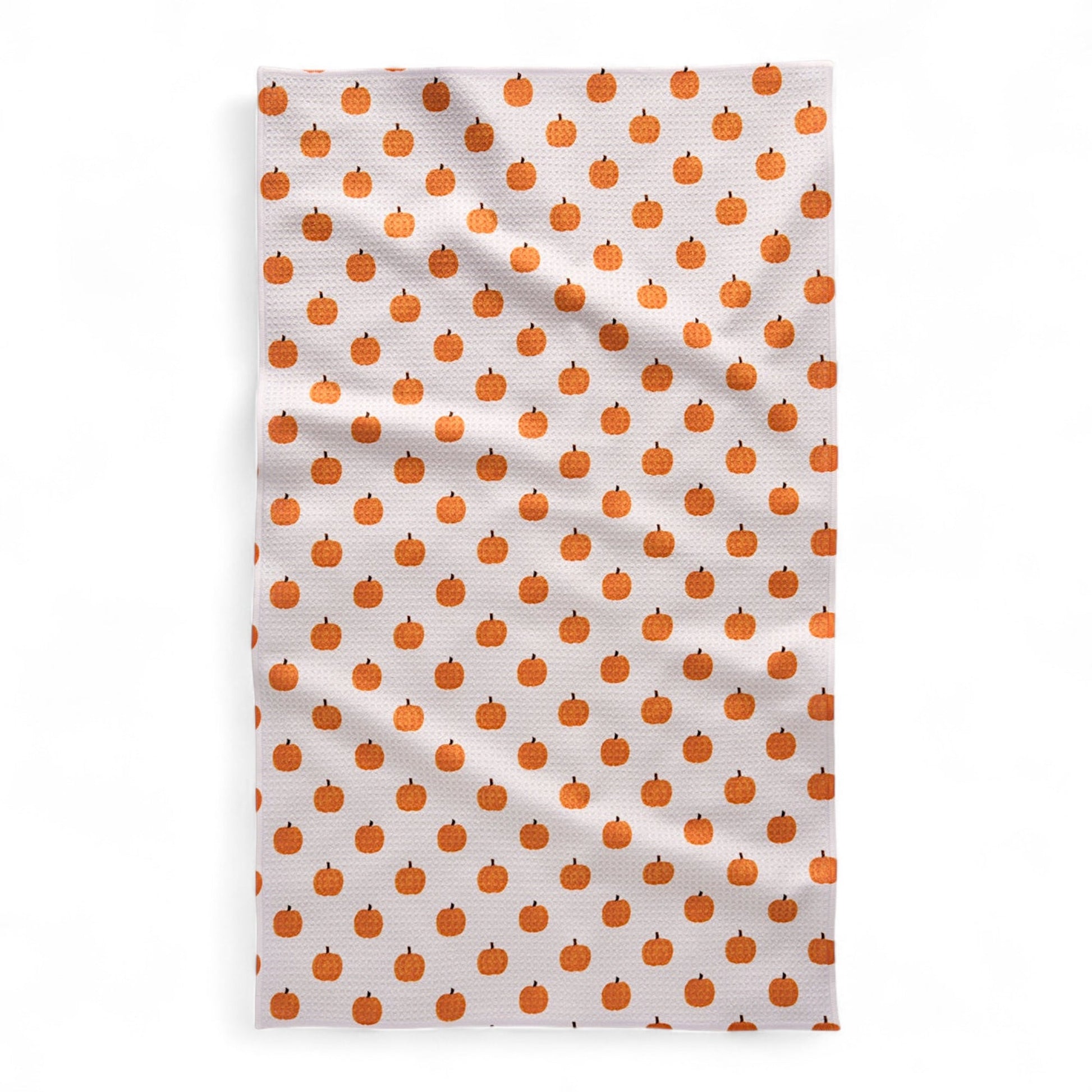 This pattern features a charming and playful design of evenly spaced orange pumpkins set against a light beige background. Each pumpkin is identical in size and style, with a simple stem and a warm, autumnal hue that pops against the neutral backdrop. The repeating layout creates a clean, orderly look while evoking the festive spirit of fall and Halloween.