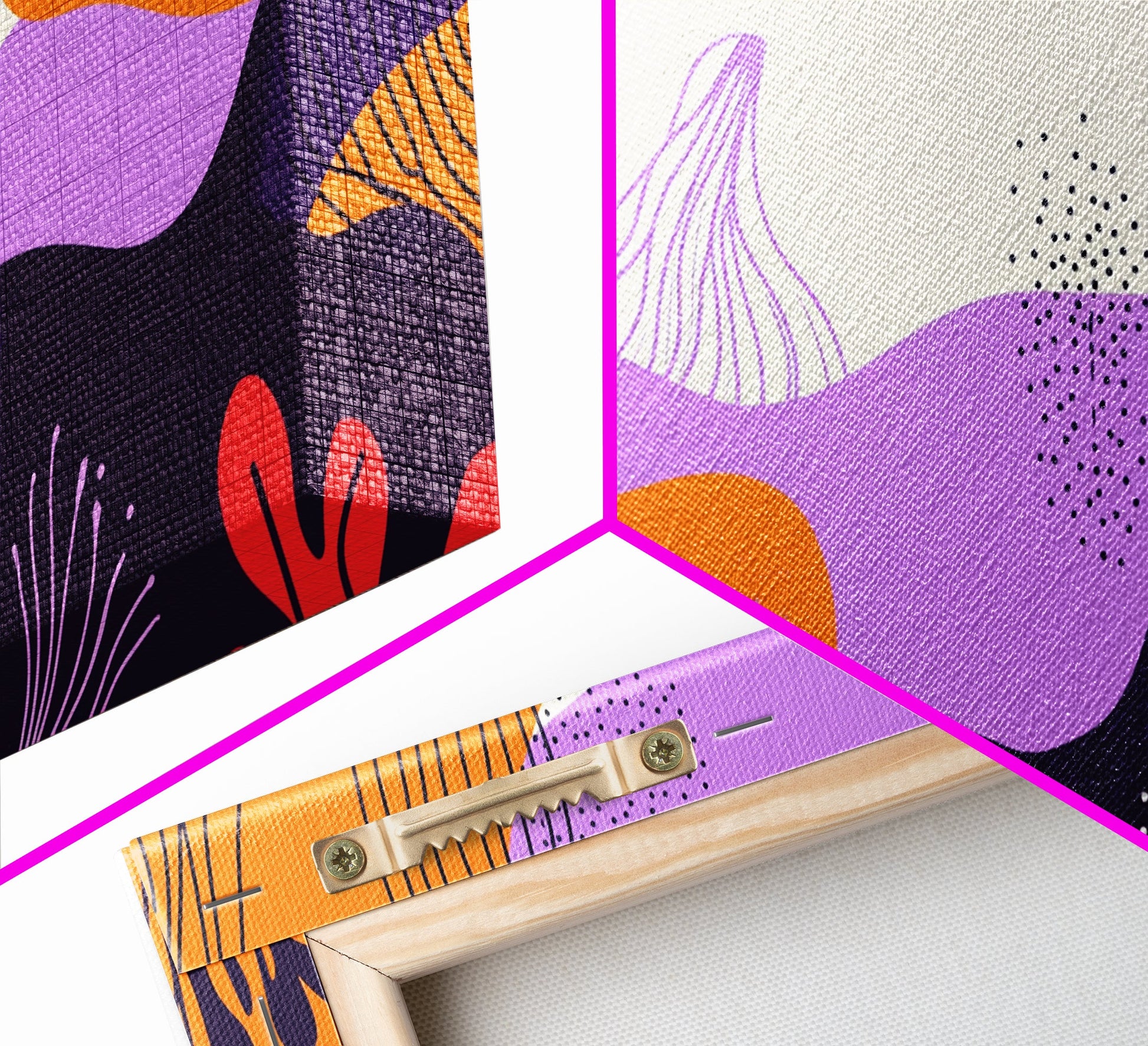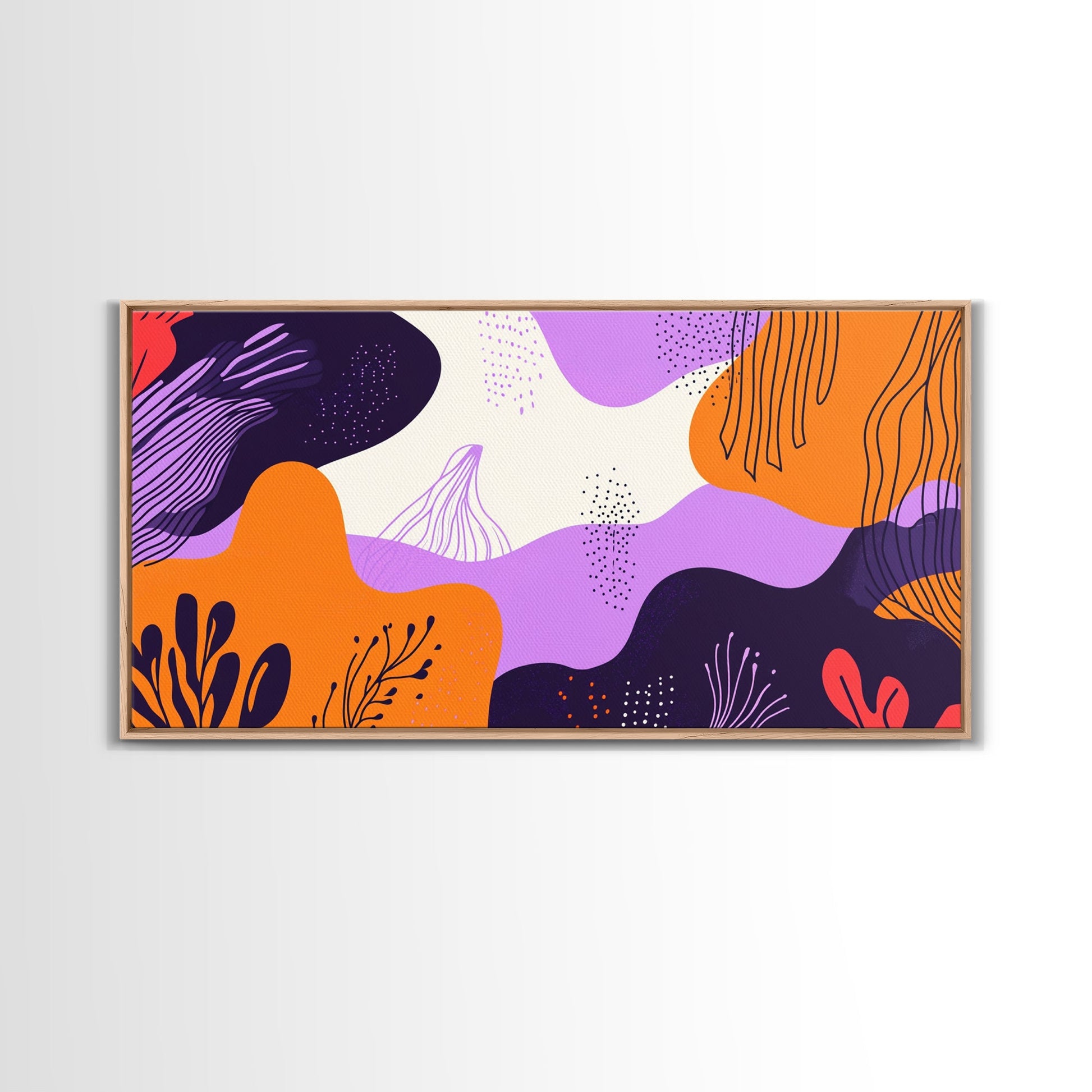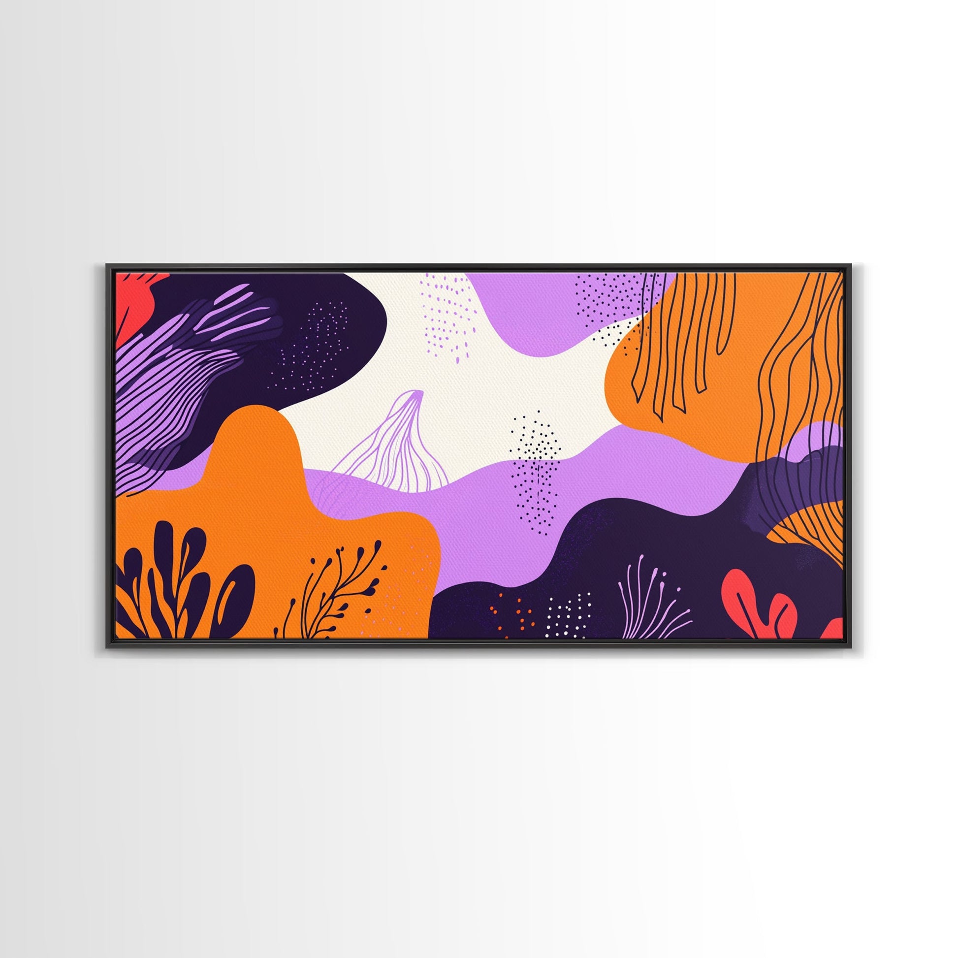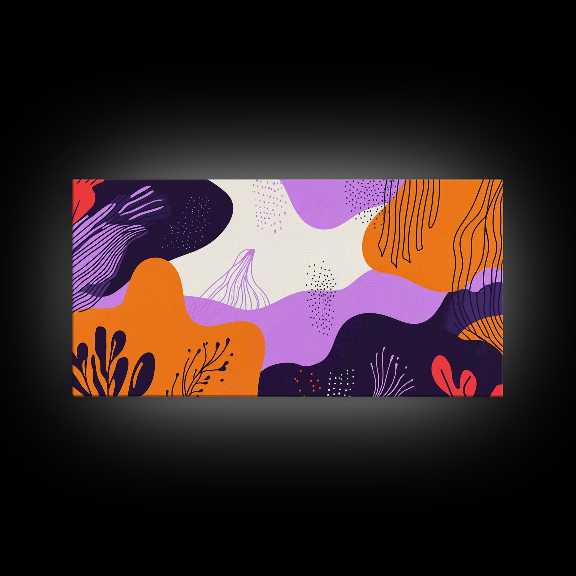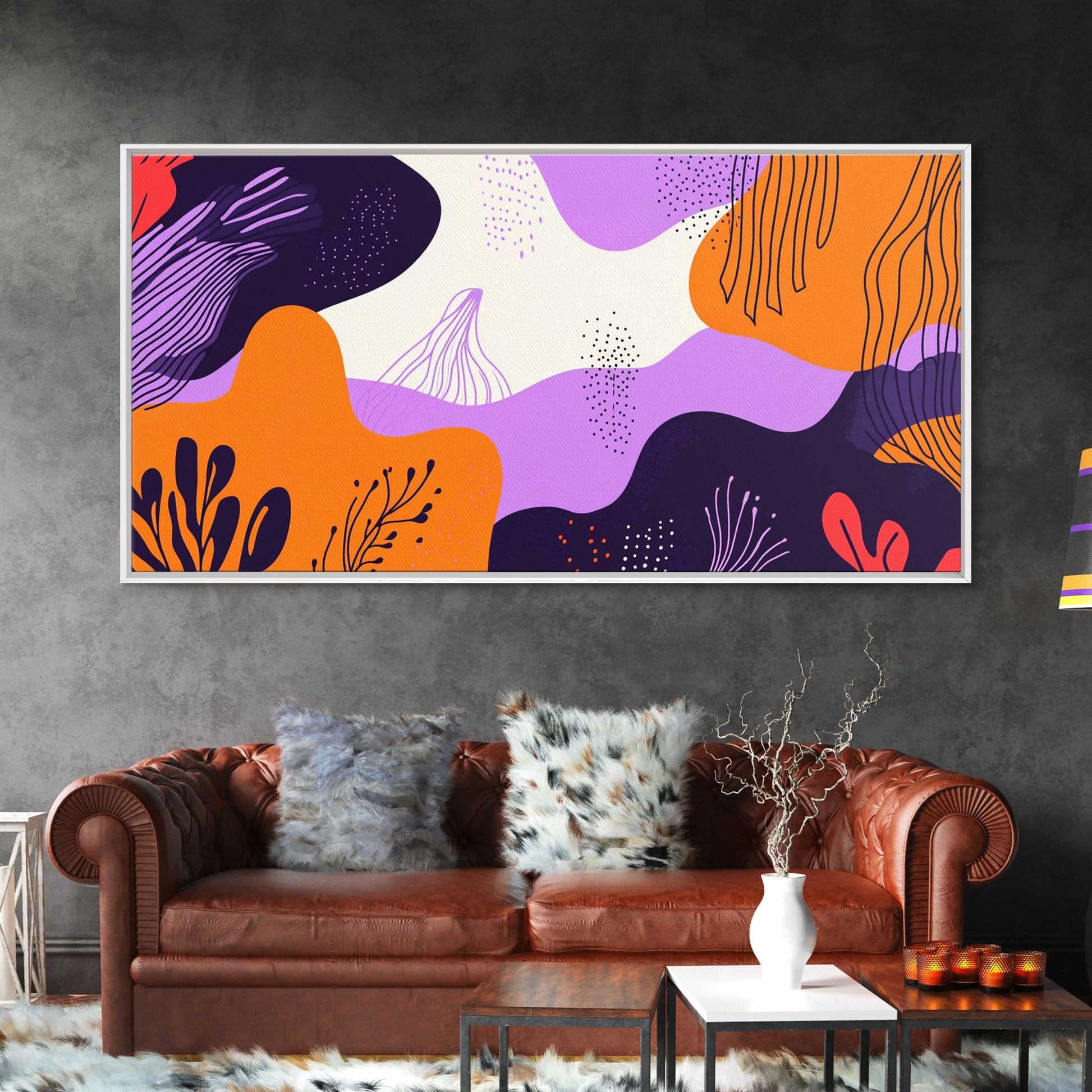 Purple And Orange Preppy Wall Art Framed Canvas Print, Retro 90s Style Wall Art