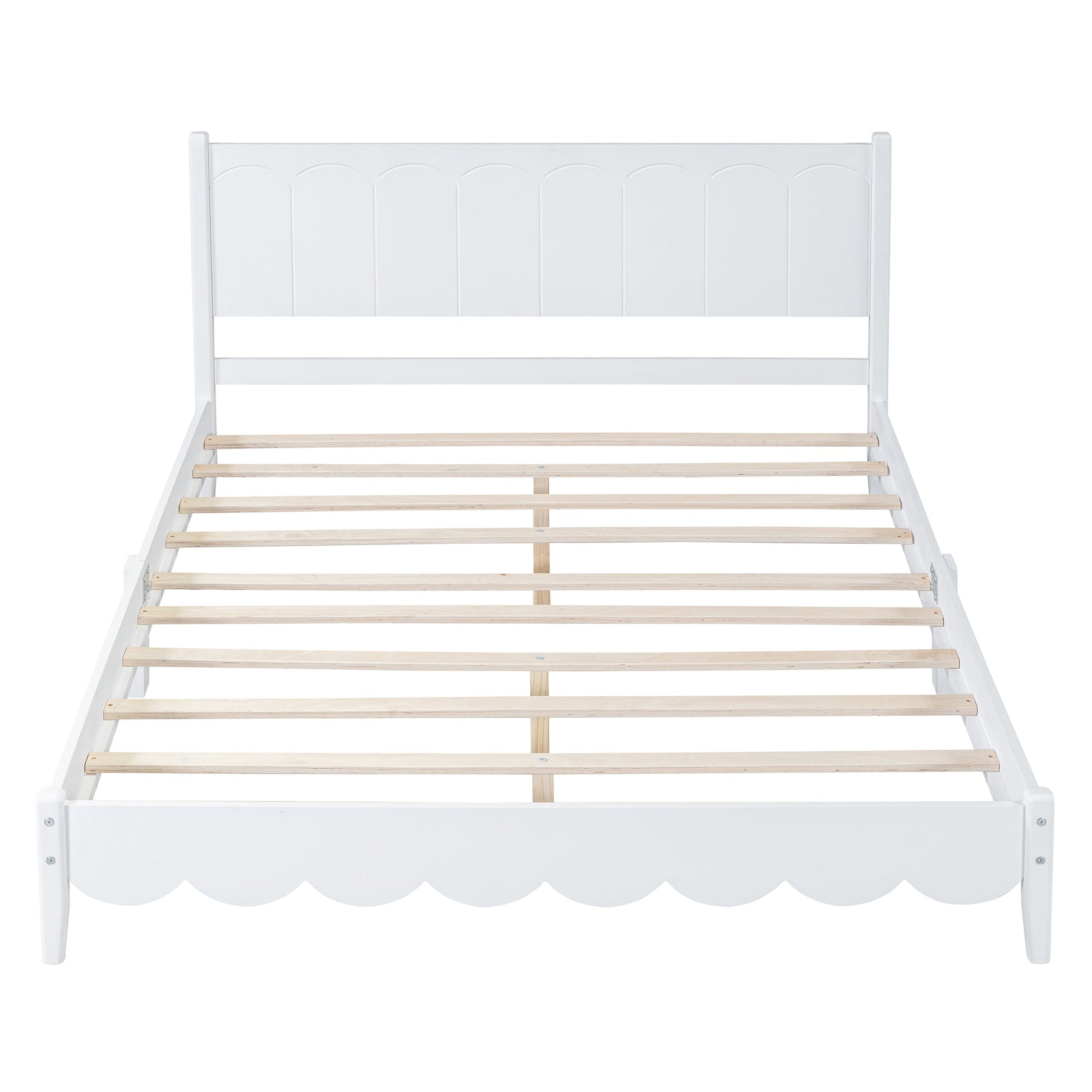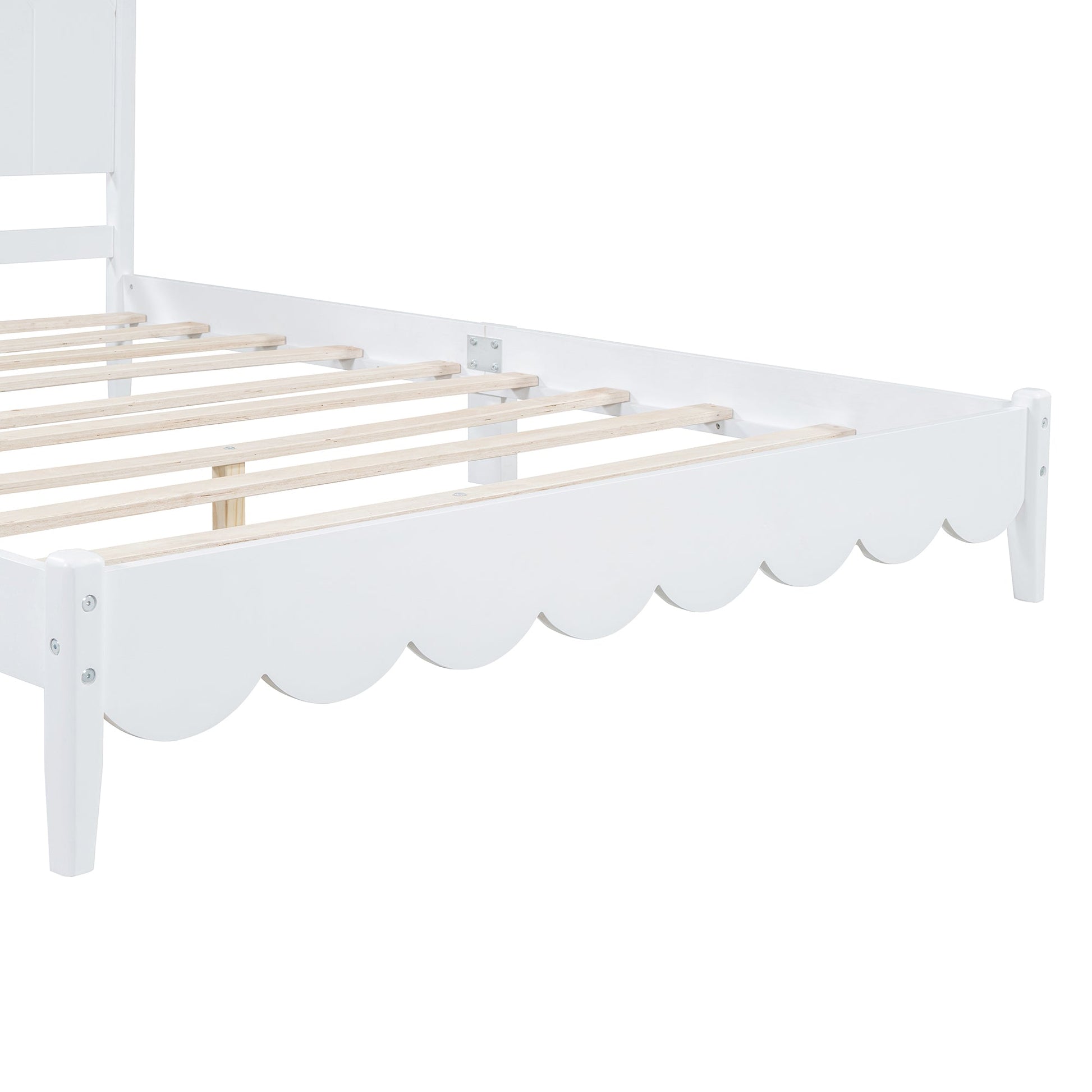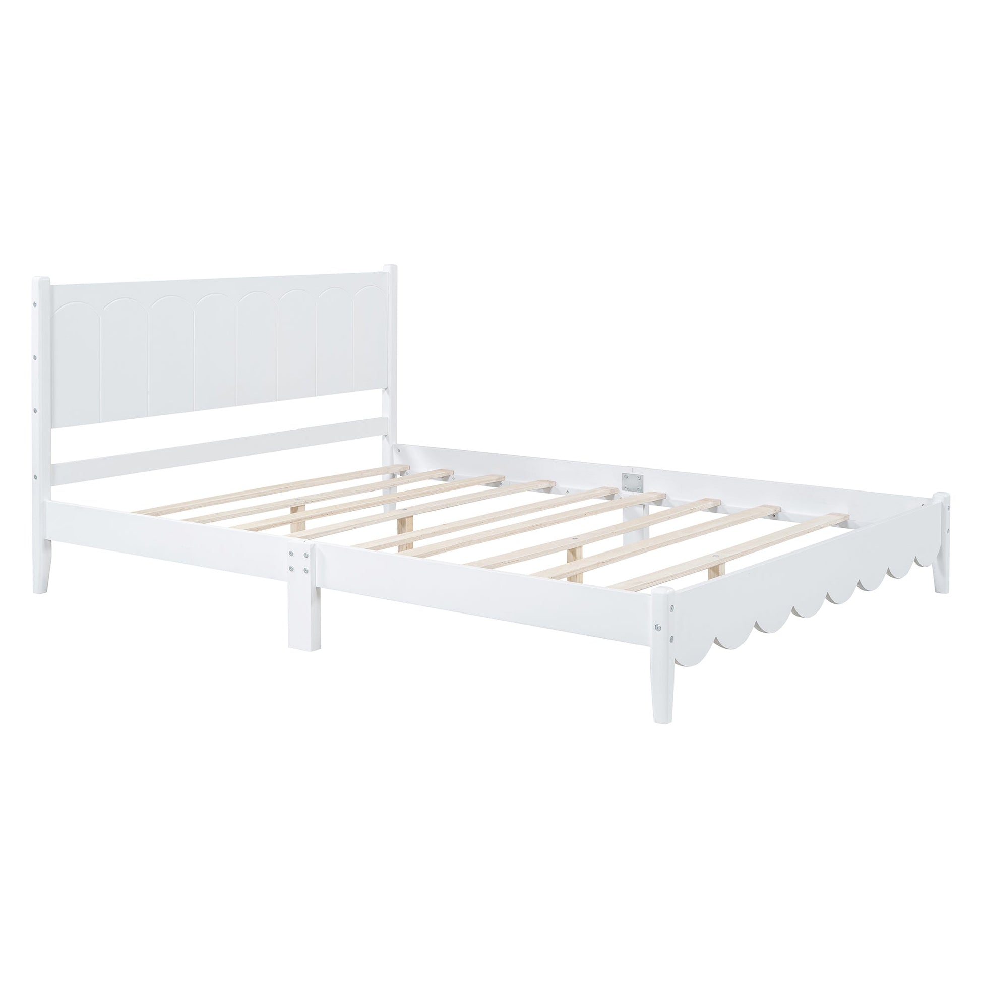 Queen Size Wood Platform Bed Frame, Retro Style Bed with Rectangular Headboard,No Need Box Spring,White