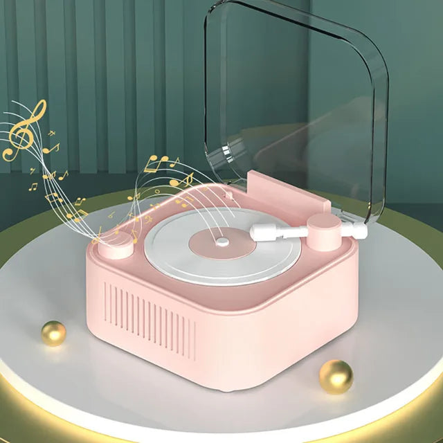 Retro Atomic Vinyl Bluetooth Speaker Hif Sound Long Battery Life Mini Record Player Rotary Speaker with Built-in Battery