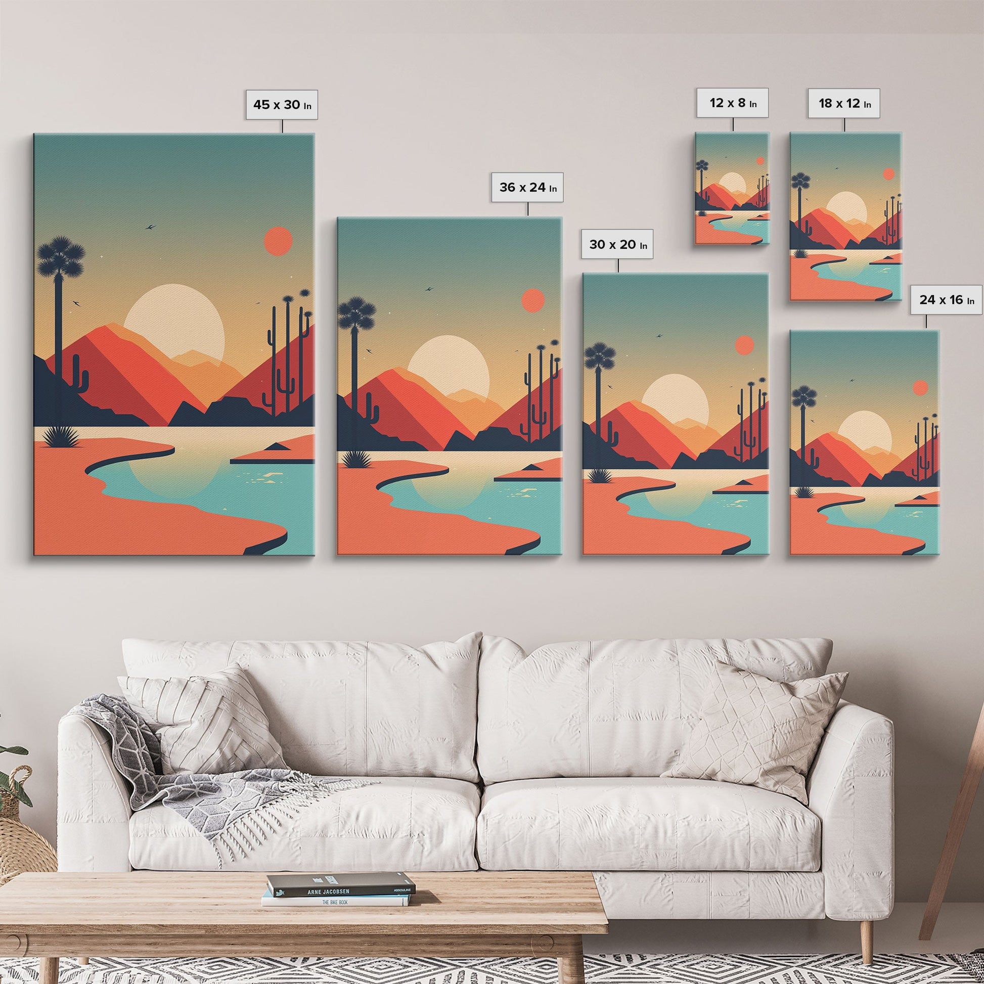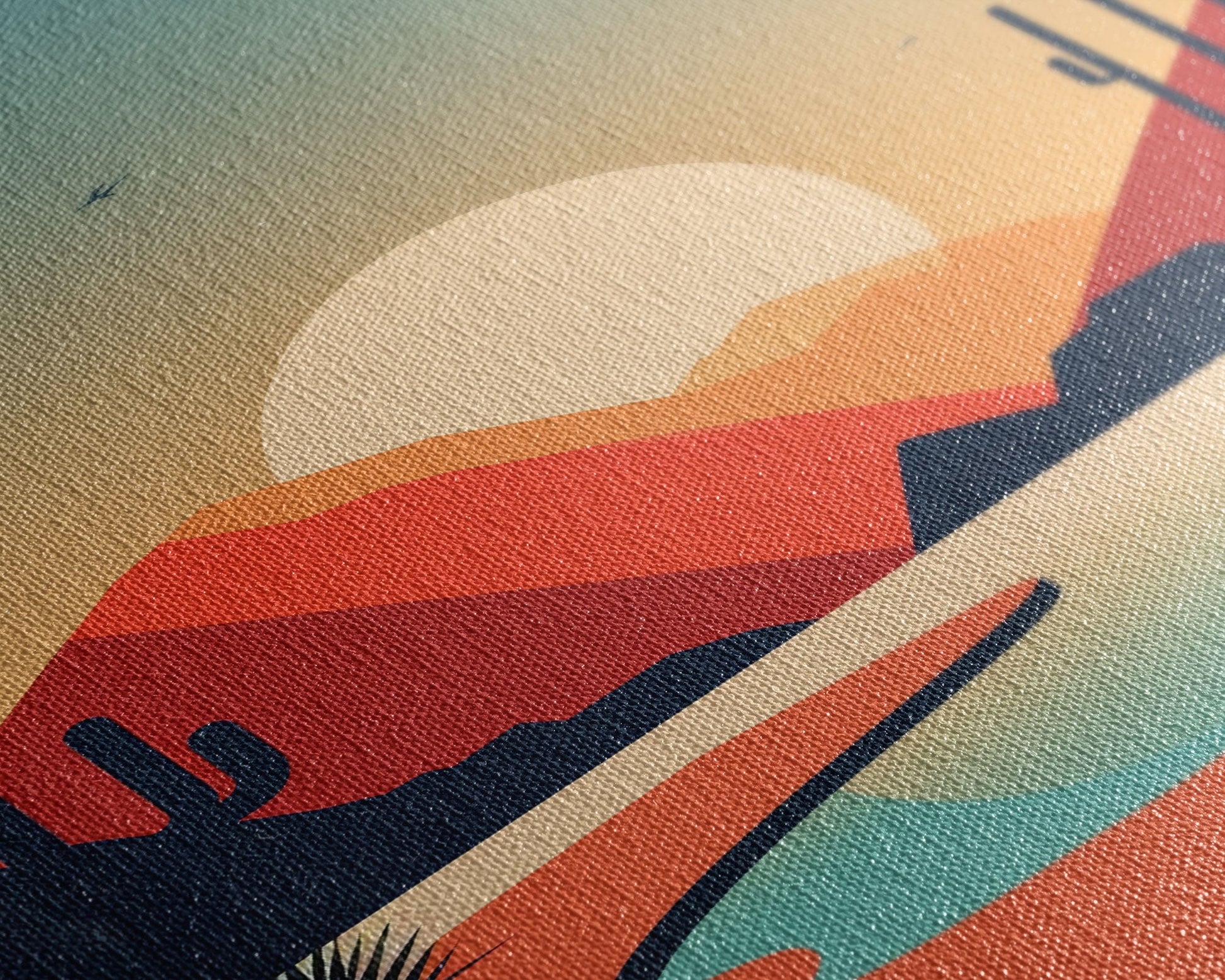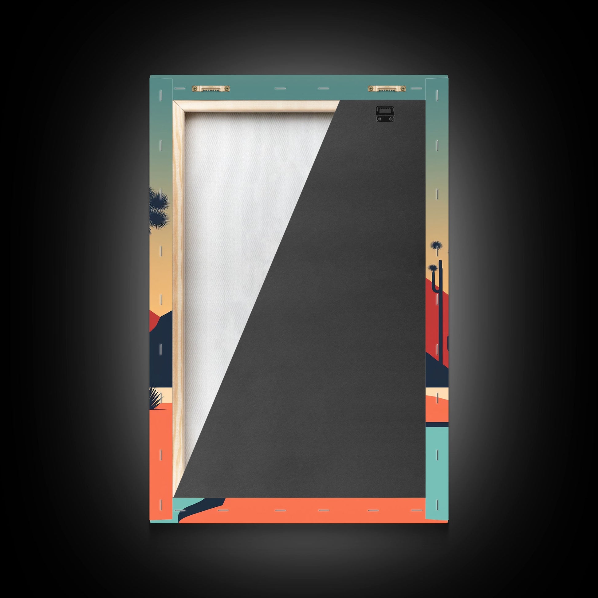 Retro Desert Art, Pop Art Style, Framed Canvas Print, Retrowave, Western Decor, Wild West Art, Cactus Prints, Art Deco Style Desert Art