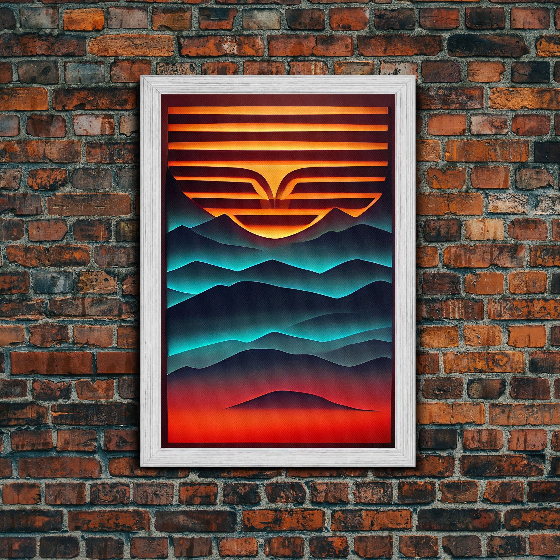 Retro Landscape Mountains Sunrise Sunset Colorful Fine Art Print, Red Blue Yellow Wall Poster