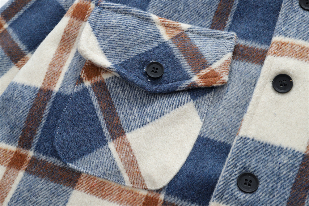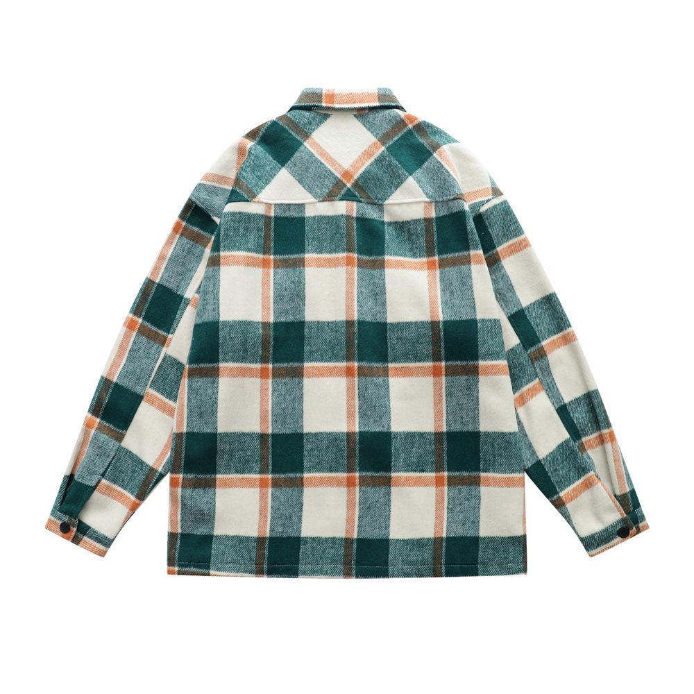 Retro Men's Jacket, Turn-down Collar Plaid Long Sleeve Casual Loose Fit Trendy Outwear for Men