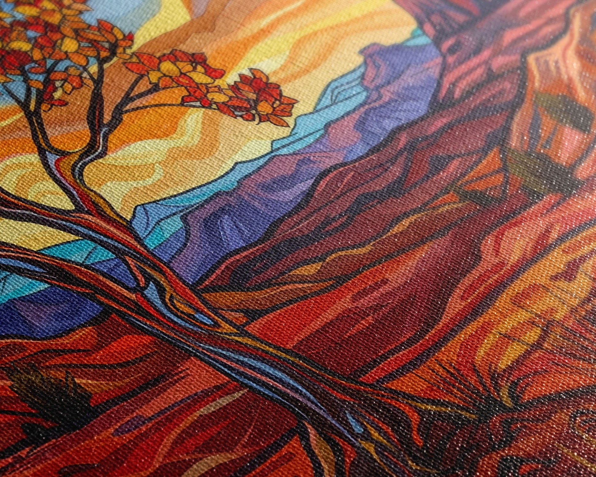 Most of our canvases are made in the USA, with the exception of canvases ordered with the light oak unstained frames, and any large canvases (24x48, 30x60, 16x48 and 20x60) ordered WITH a frame. These are temporarily made in and shipped from Europe, while we try to find a more consistent supplier in the USA.