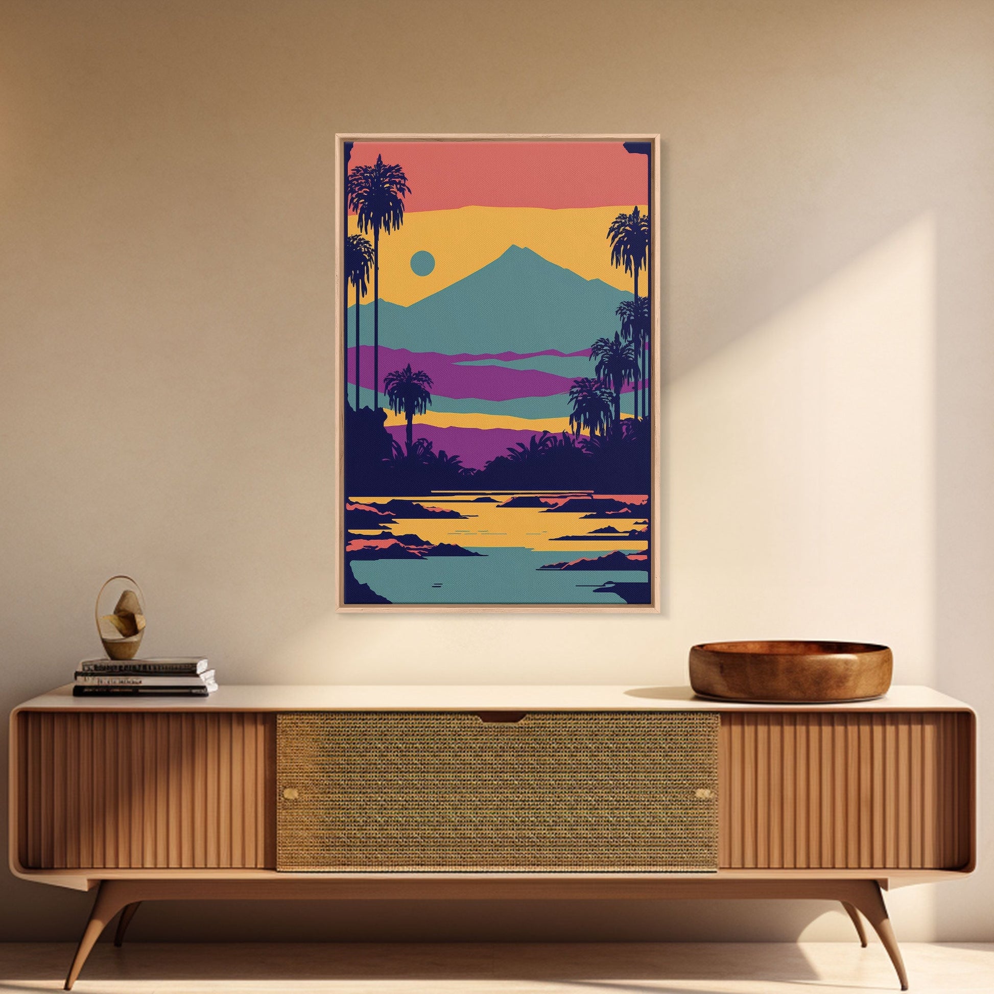 Retro Pop Art Landscape, Surrealist / Psychedelic Art, Framed Canvas Print, Nature Art, Desert Painting, Southwest Decor