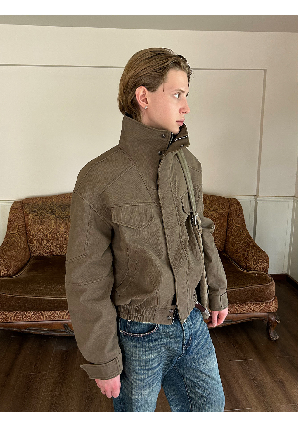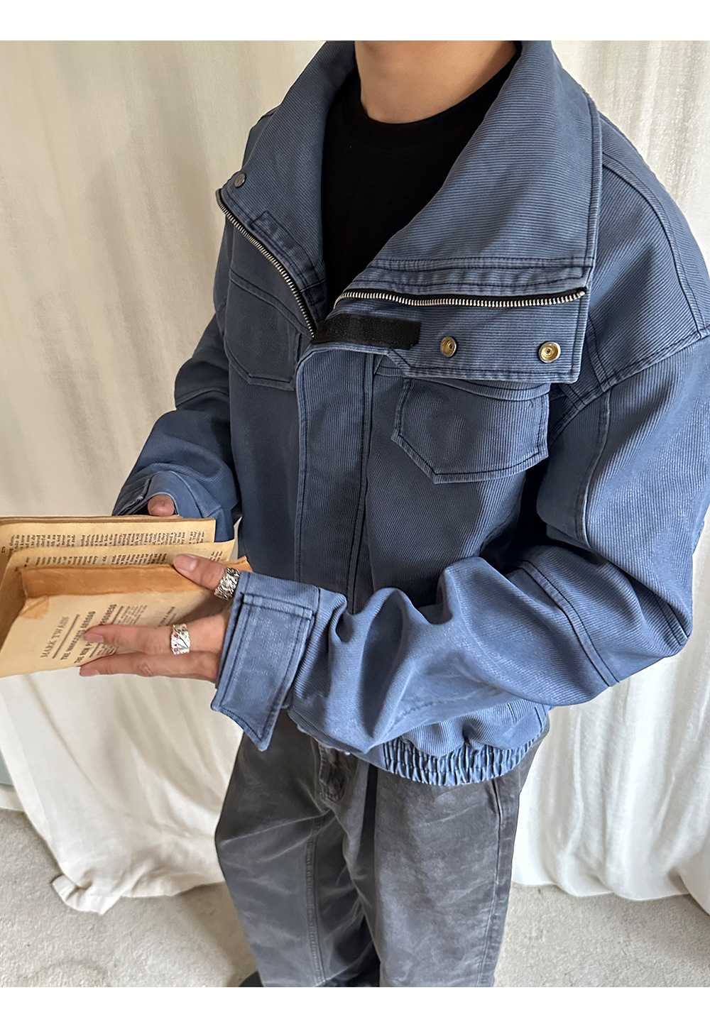 Retro Stand Collar Vintage Tailored Boxy Short Wide Outerwear