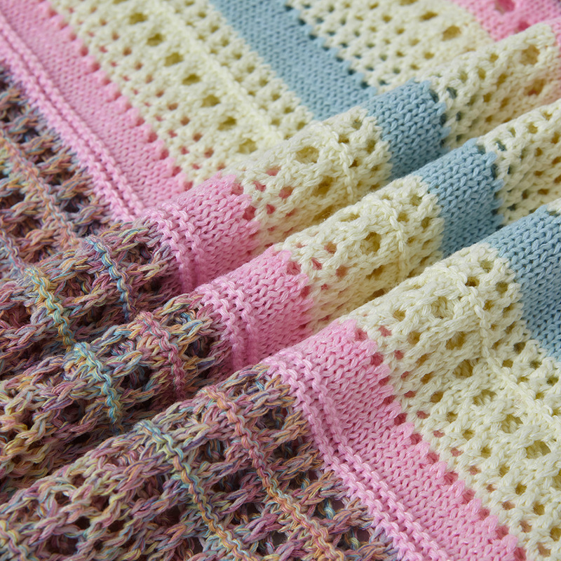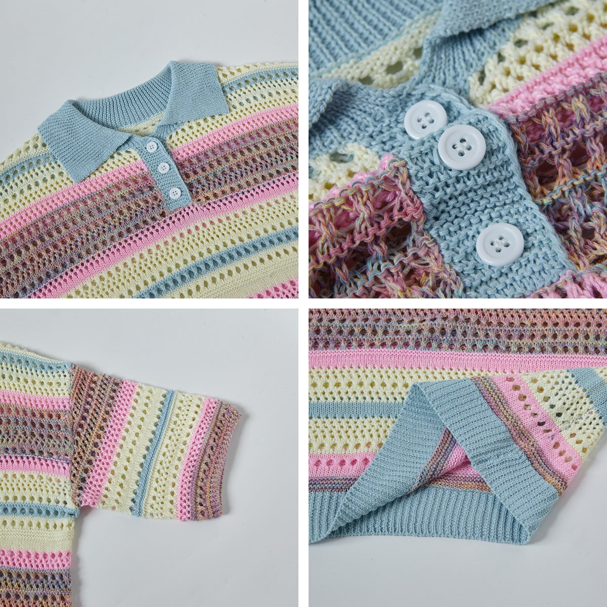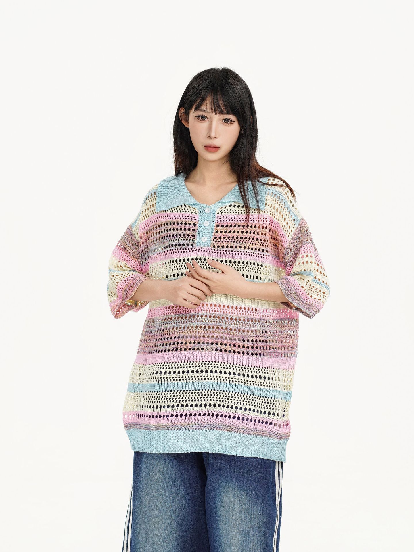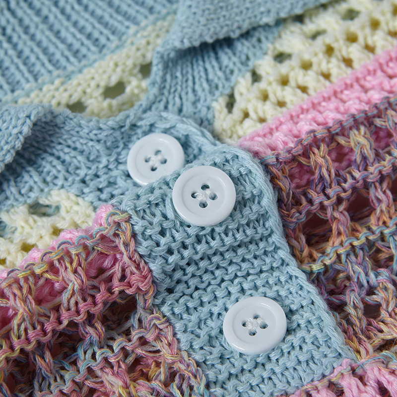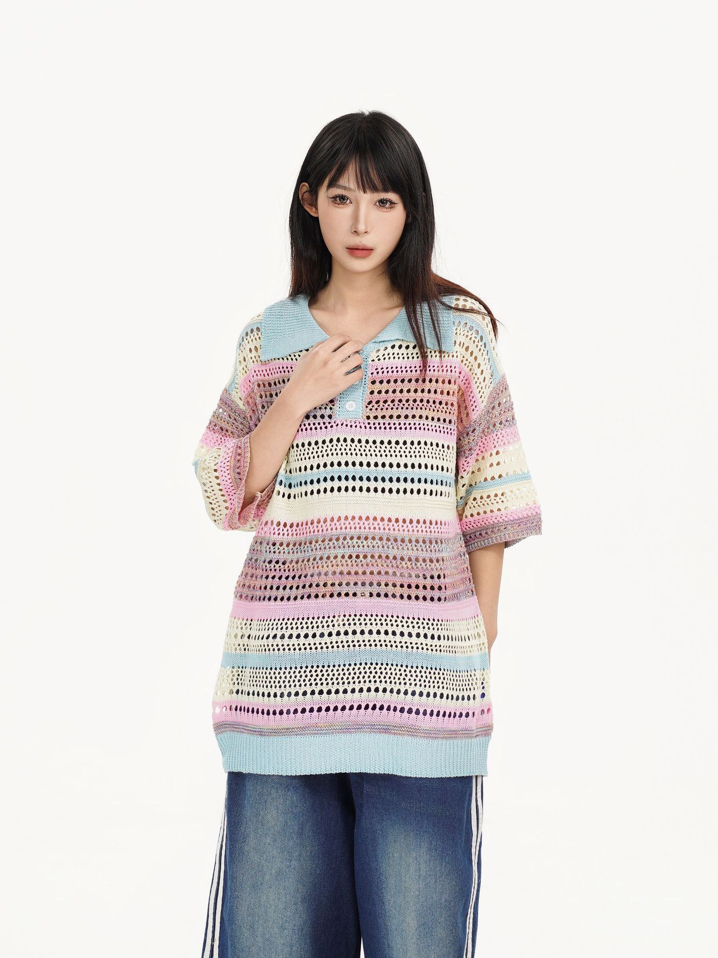 Retro Striped Gradient Floral Summer Hollow-out Shirt Unisex Couple Ins Versatile Loose Casual Top