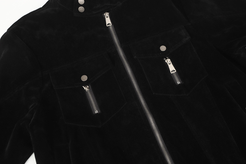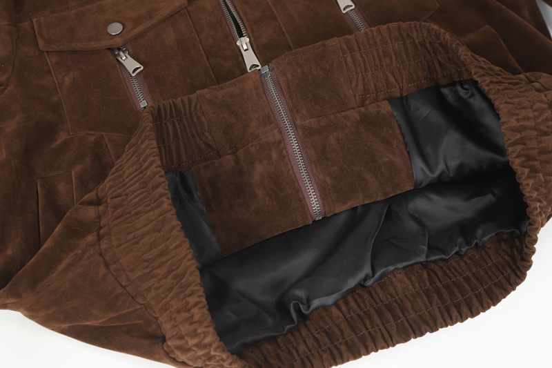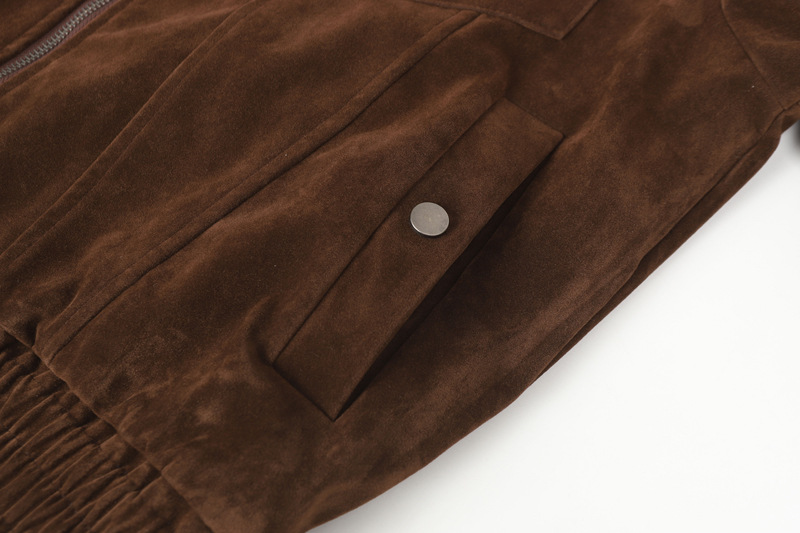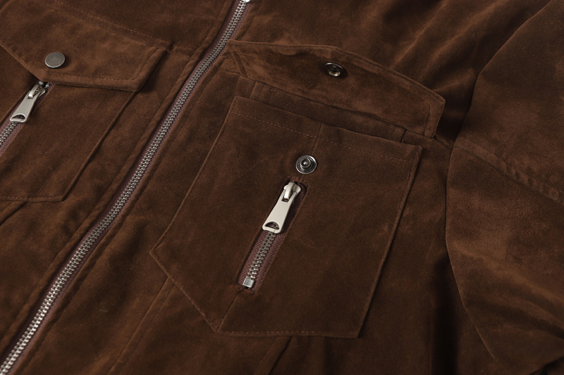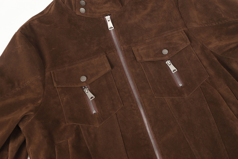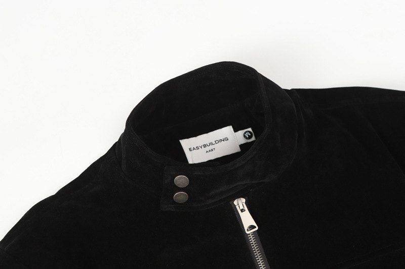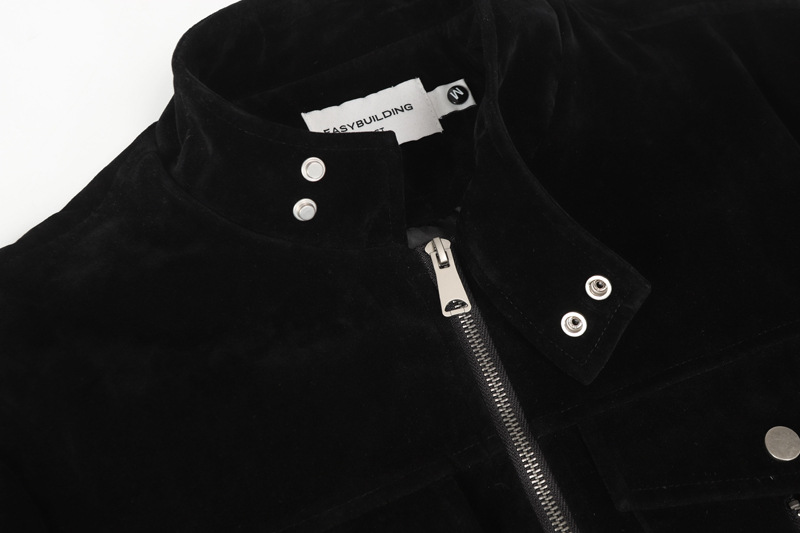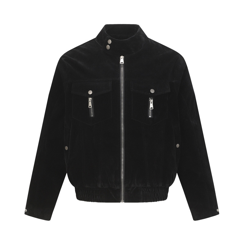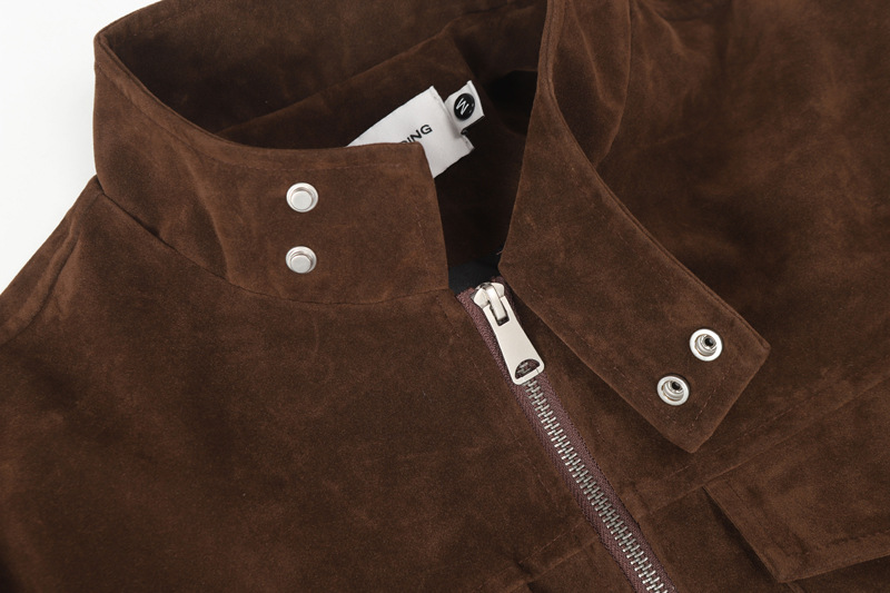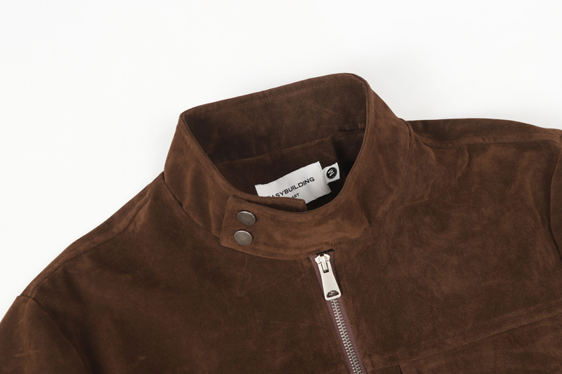 Retro Suede-Like Stand Collar Harrington Workwear Jacket, Trendy Clean Fit Oversized Outerwear for Men