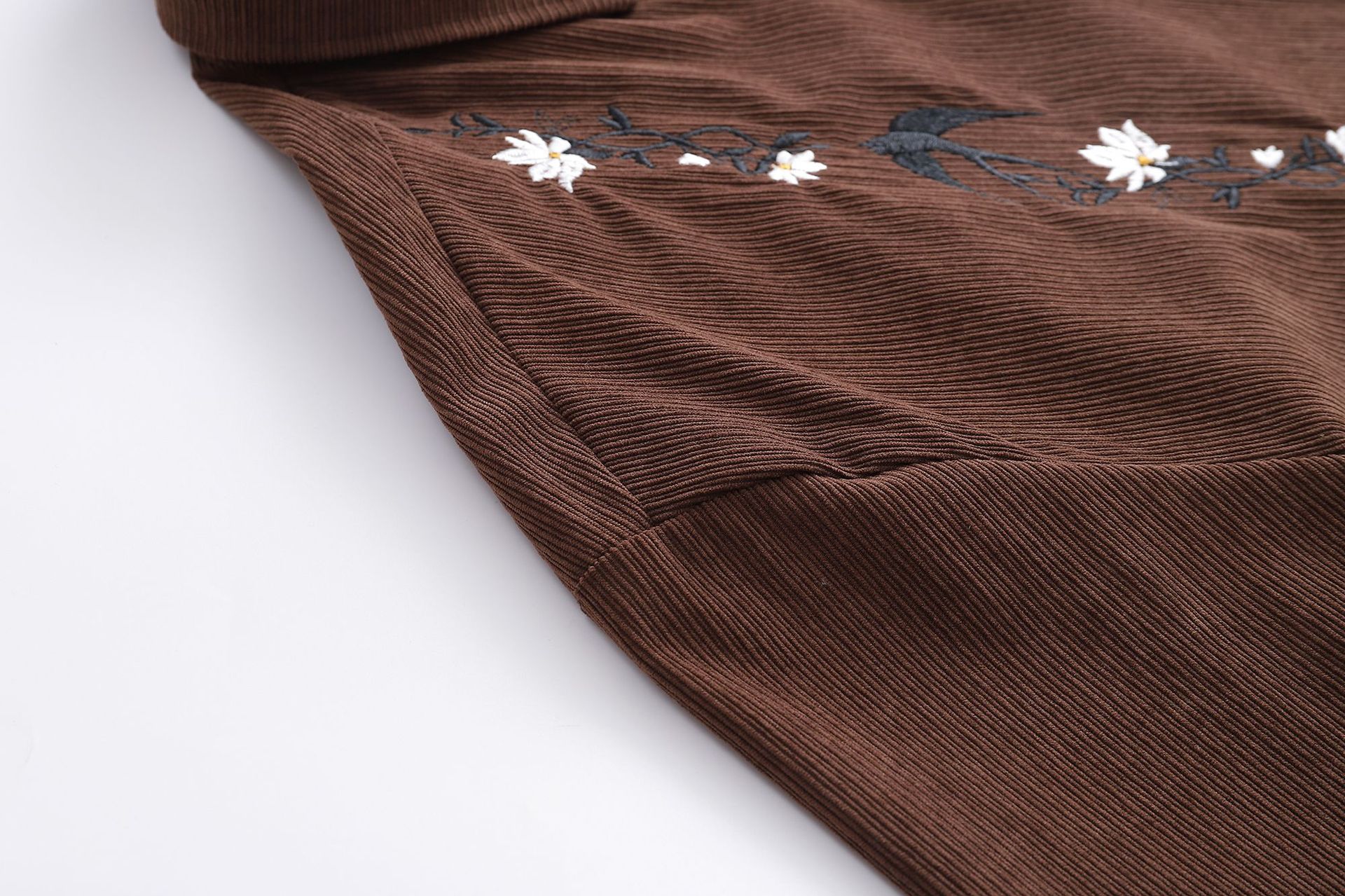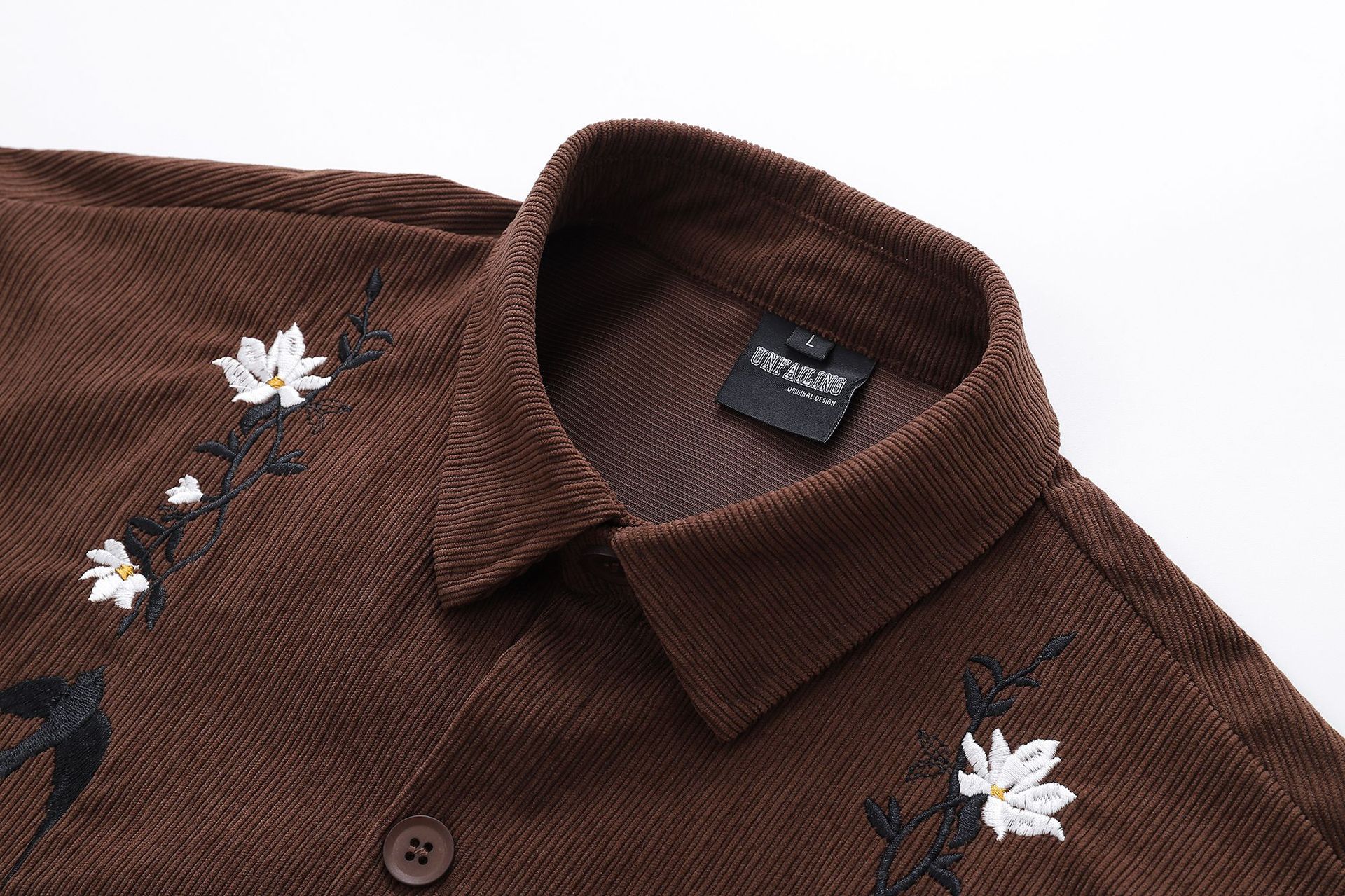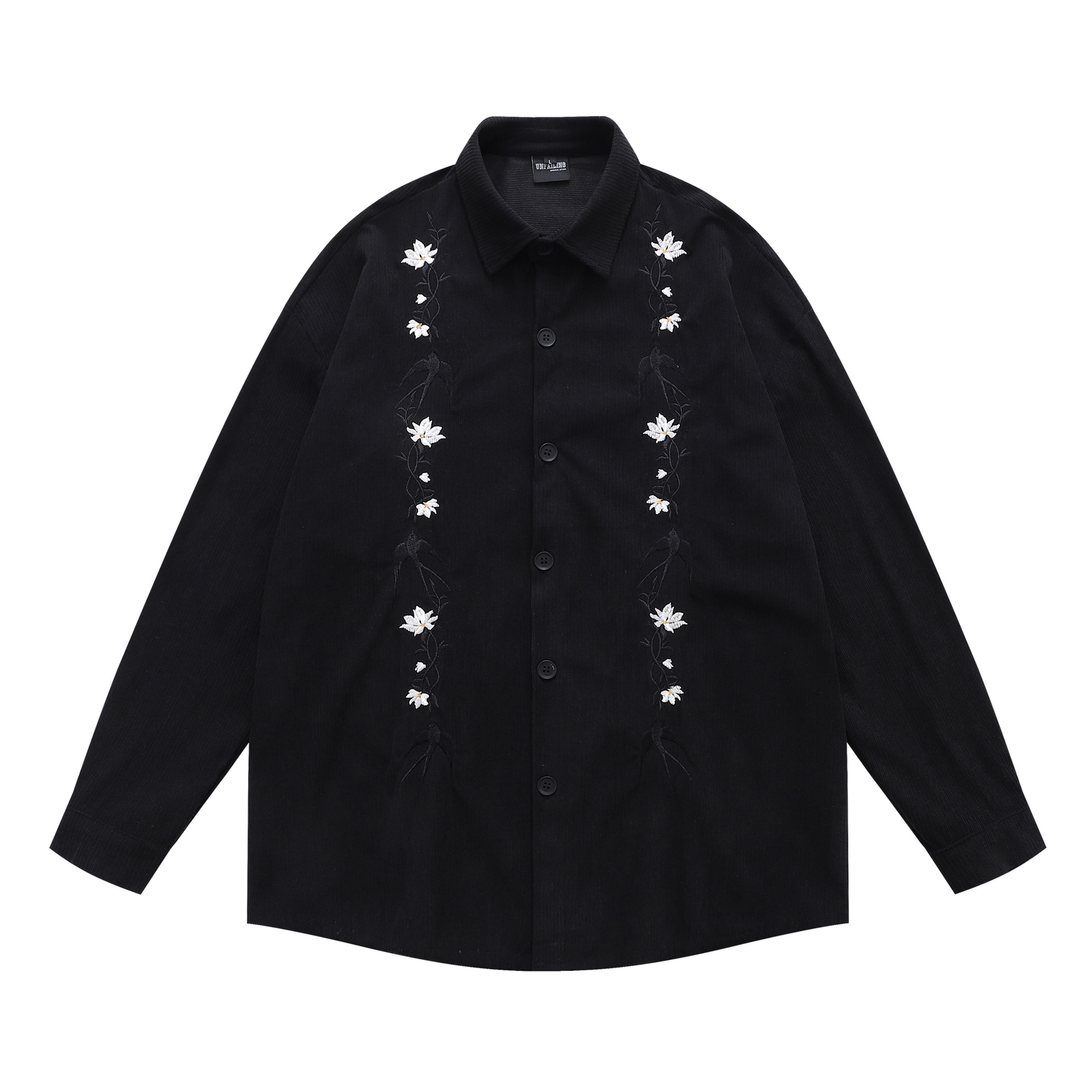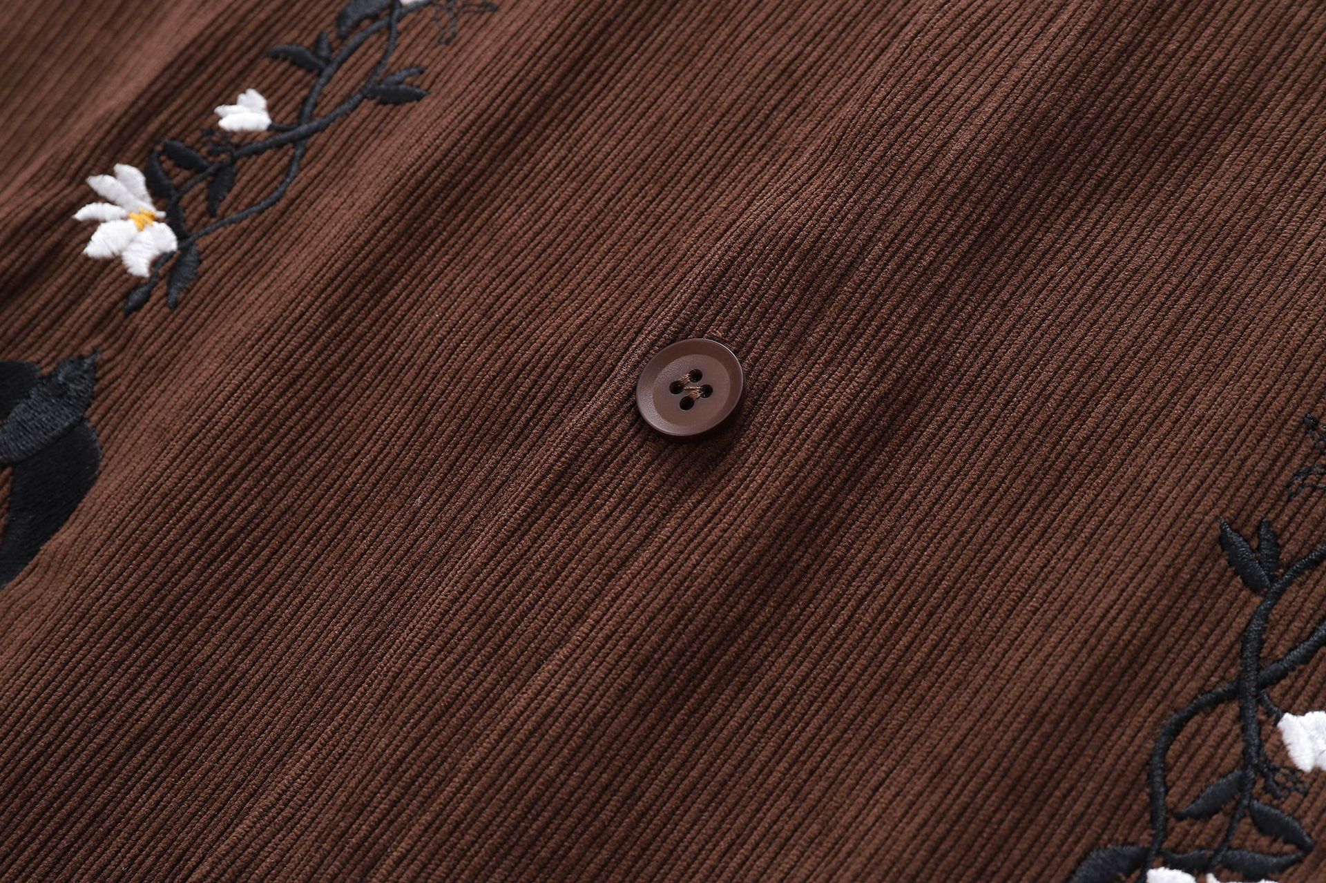 Retro Swallow Floral Embroidery Corduroy Long Sleeve Shirt Unisex Loose Couple Shirt Jacket