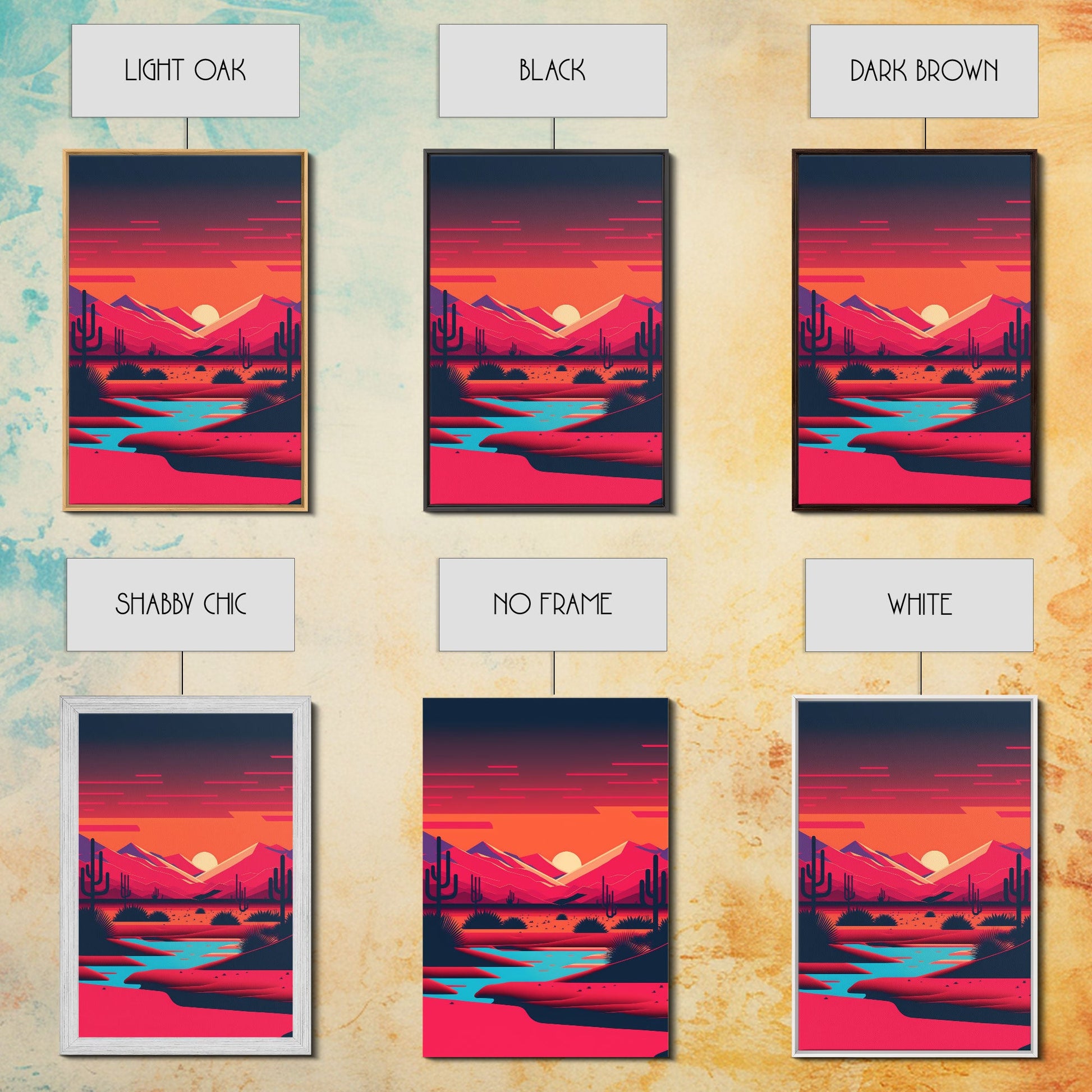 Retro Synthwave Desert Landscape Art, Framed Canvas Print, Unique Sunset Art, Living Room Wall Decor, Framed Art