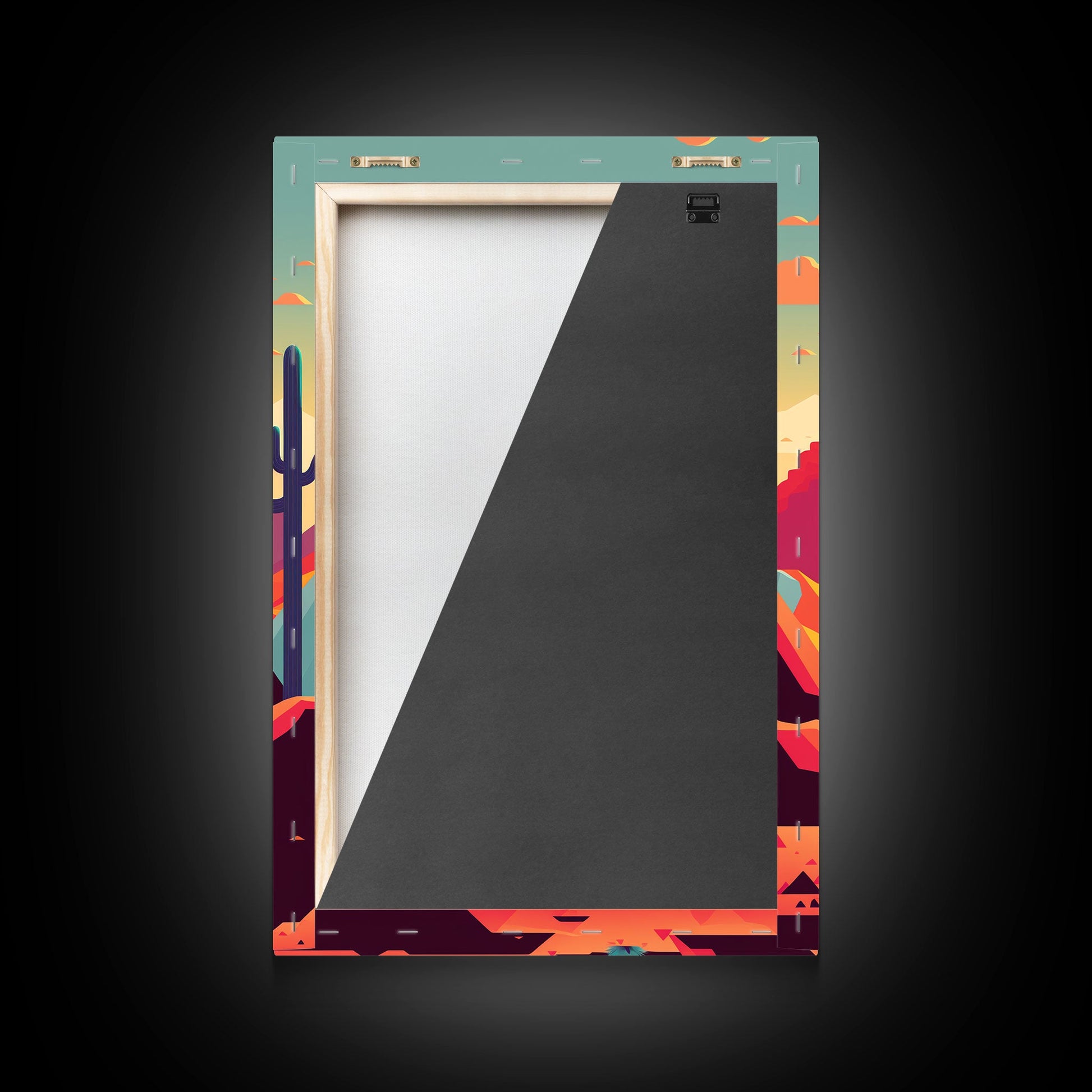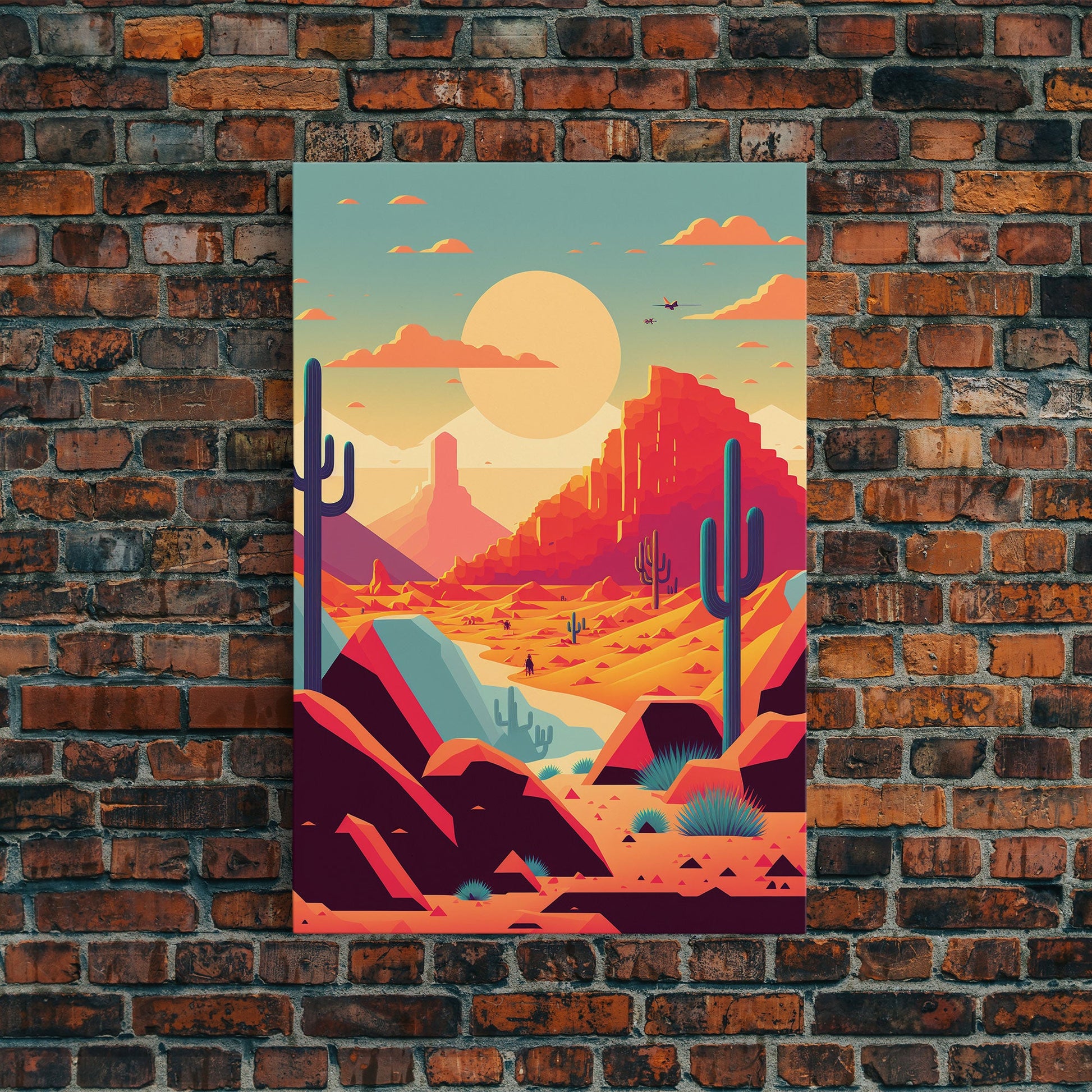 Retro Synthwave Desert Landscape Art, Framed Canvas Print, Unique Sunset Art, Living Room Wall Decor, Framed Art, Southwest Decor