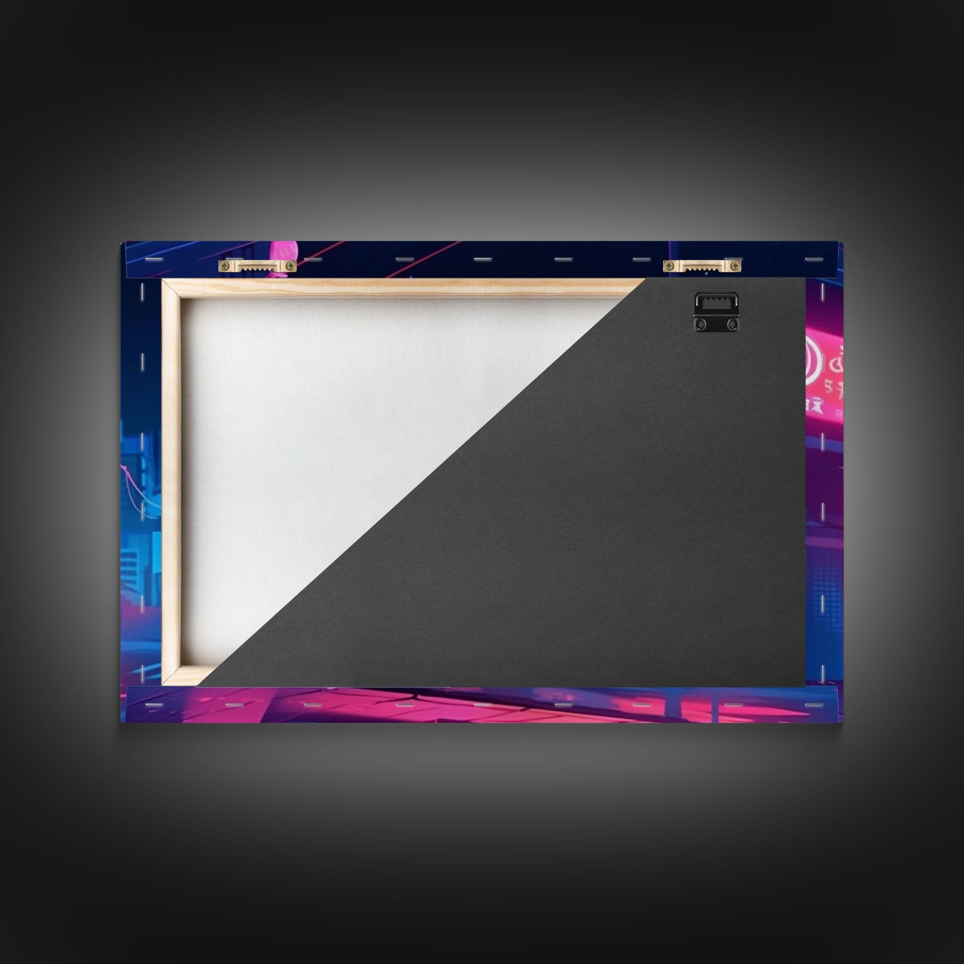 Retro Synthwave Style Tokyo Art, Framed Canvas Print, Unique Wall Art, Vintage Inspired Tokyo Night Life Art