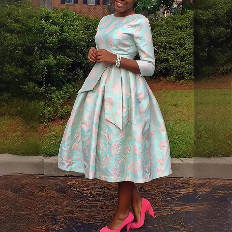 Round Neck Jacquard Fabric Swing Dress