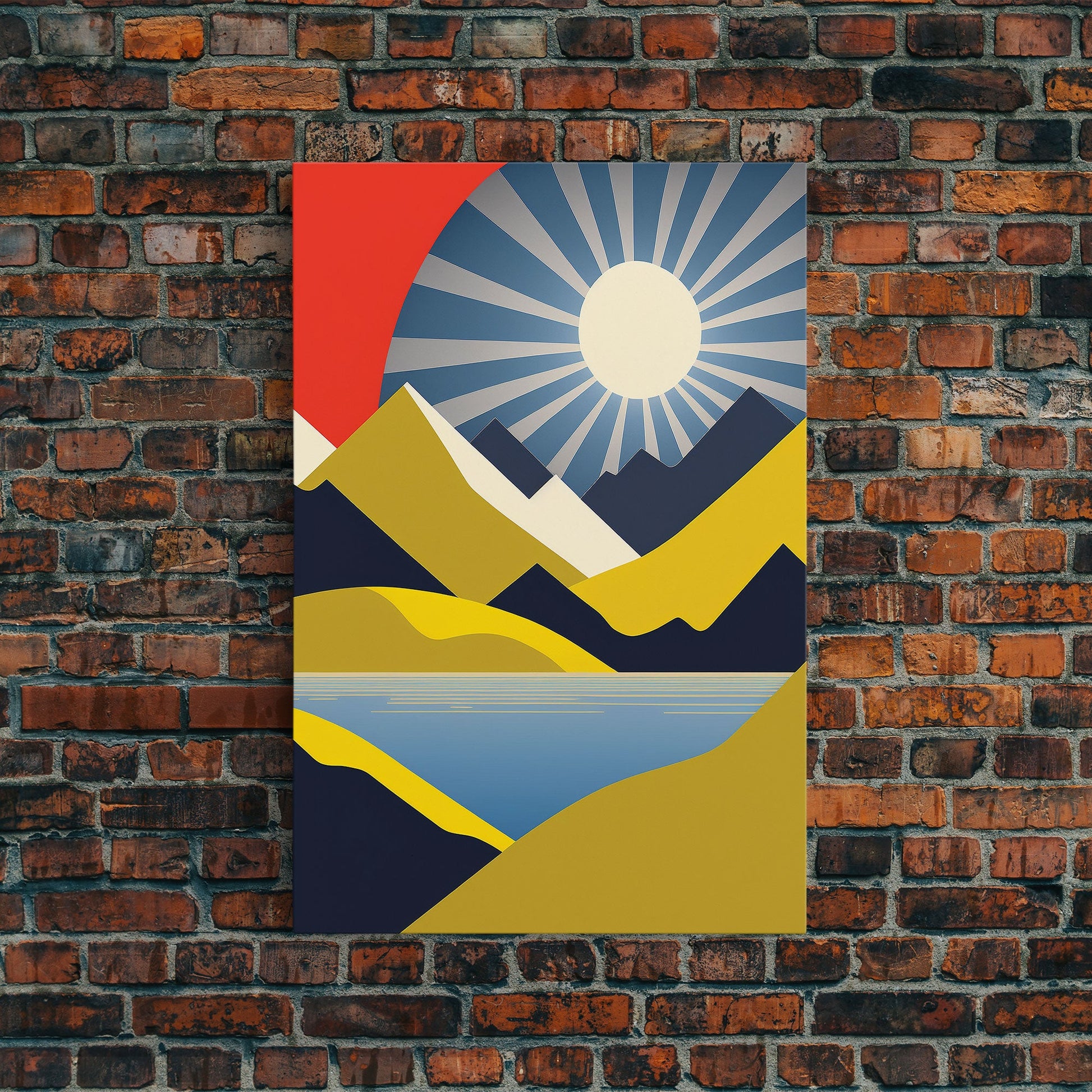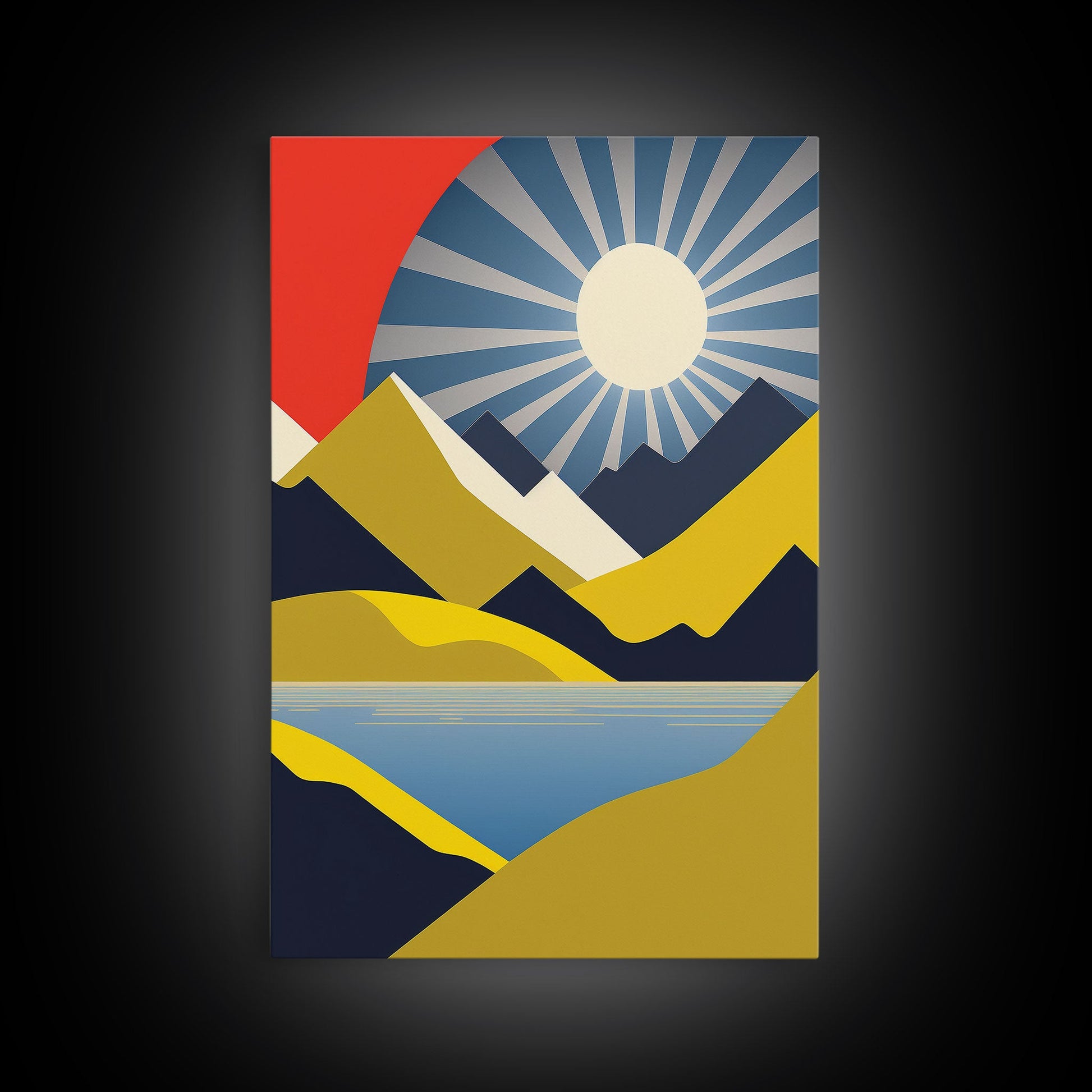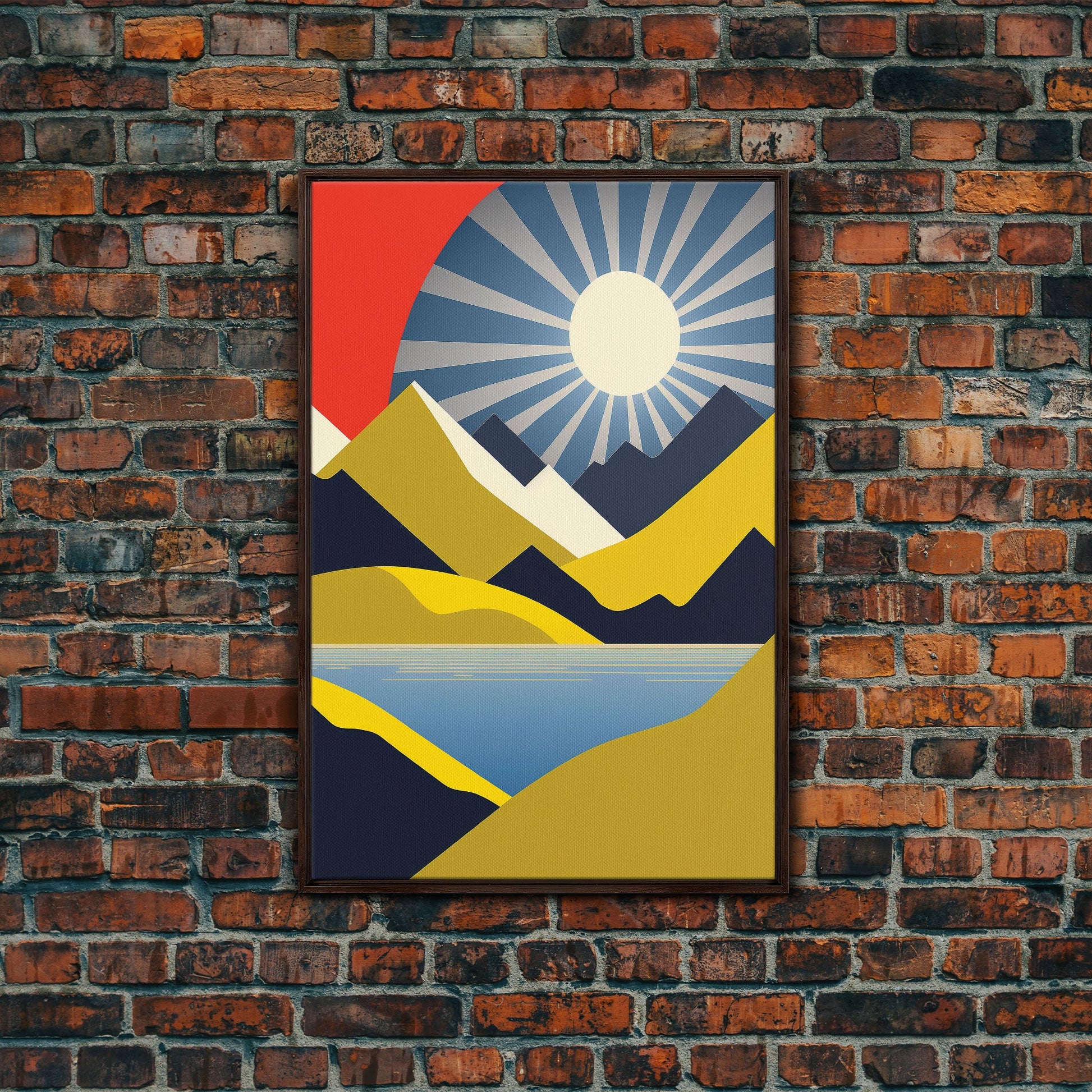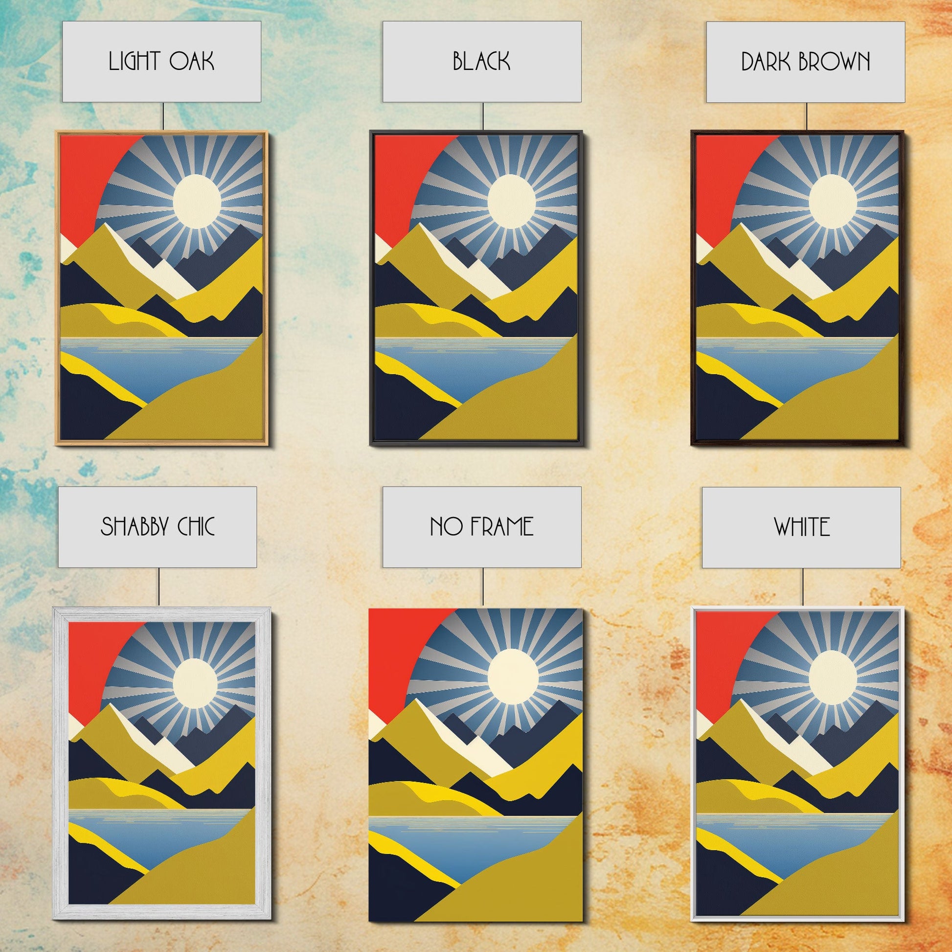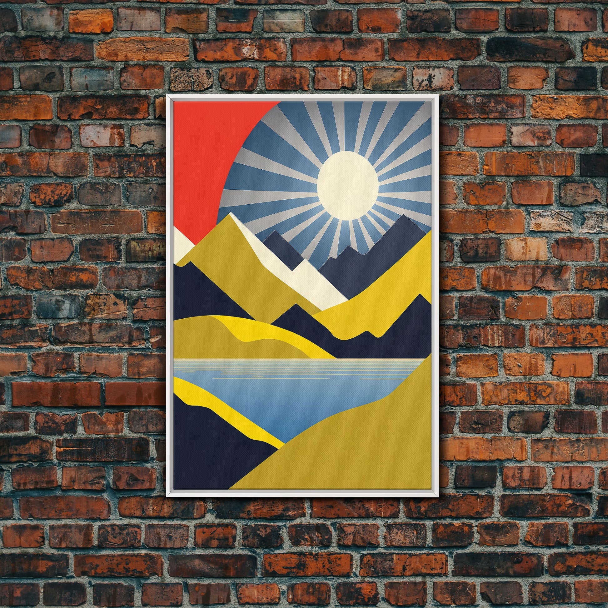 Scandinavian Style Midcentury Wall Art, Framed Canvas Print - Art Deco Minimalist Sunset Retro Style Wall Art Sepia Tones