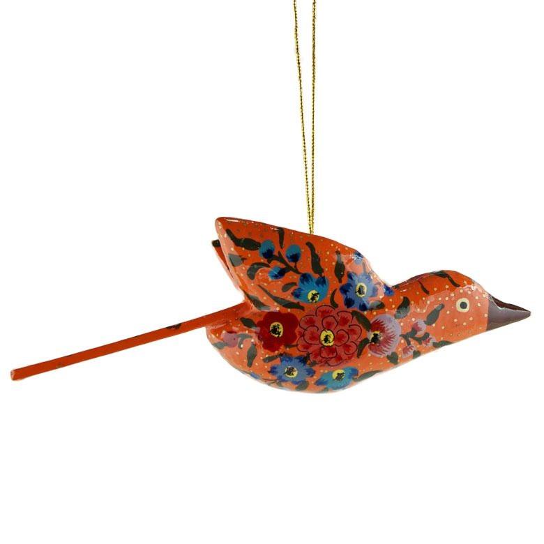 Set of 3 Birds Hand Painted Wooden Christmas Ornaments 6 Inches Long
