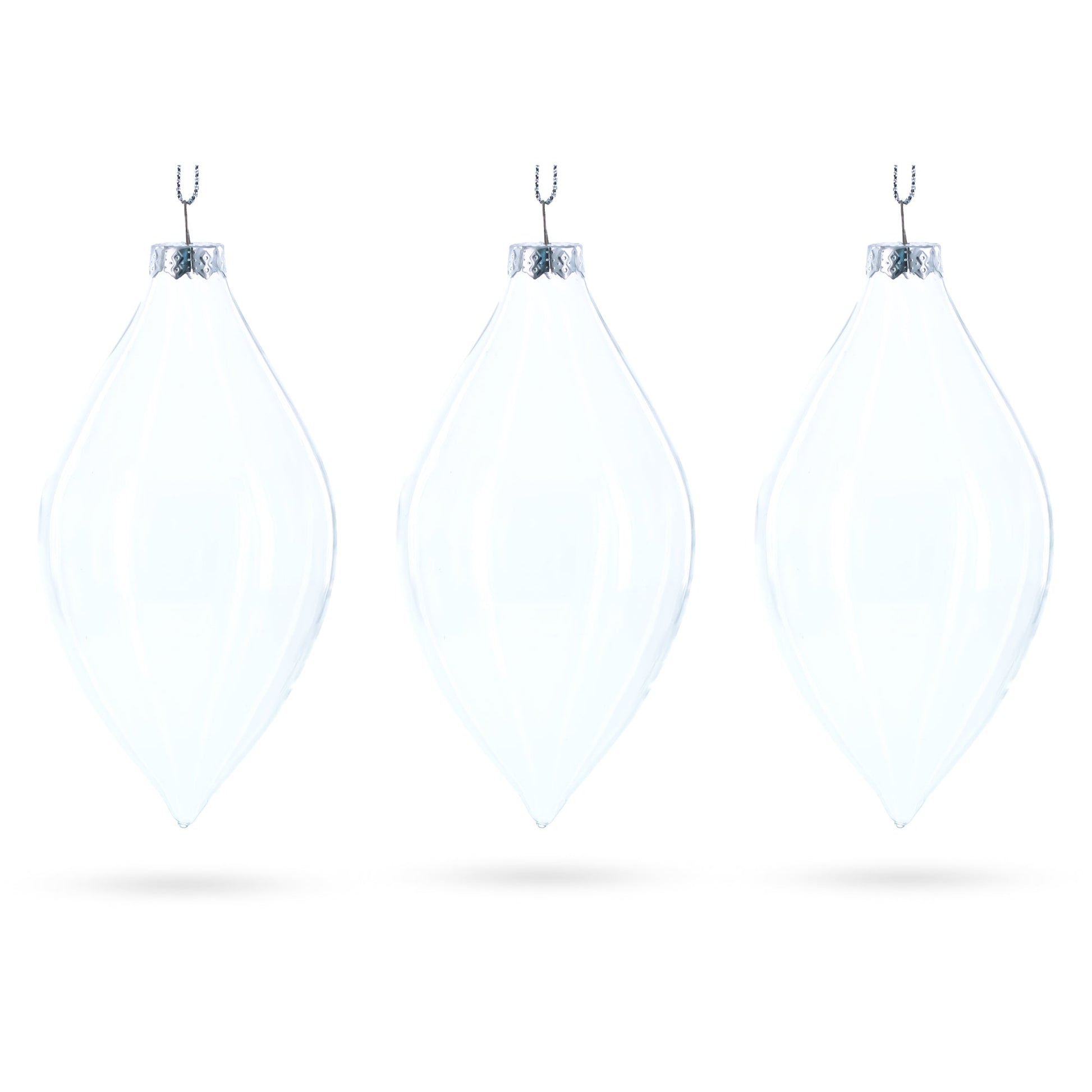 Set of 3 Oval Icicle Clear Glass Christmas Ornament 5.4 Inches (137 mm)