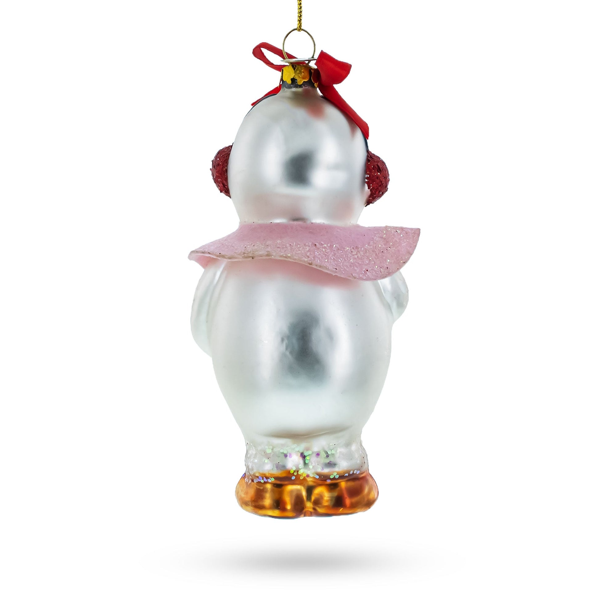 Snowwoman with Wreath Glass Christmas Ornament