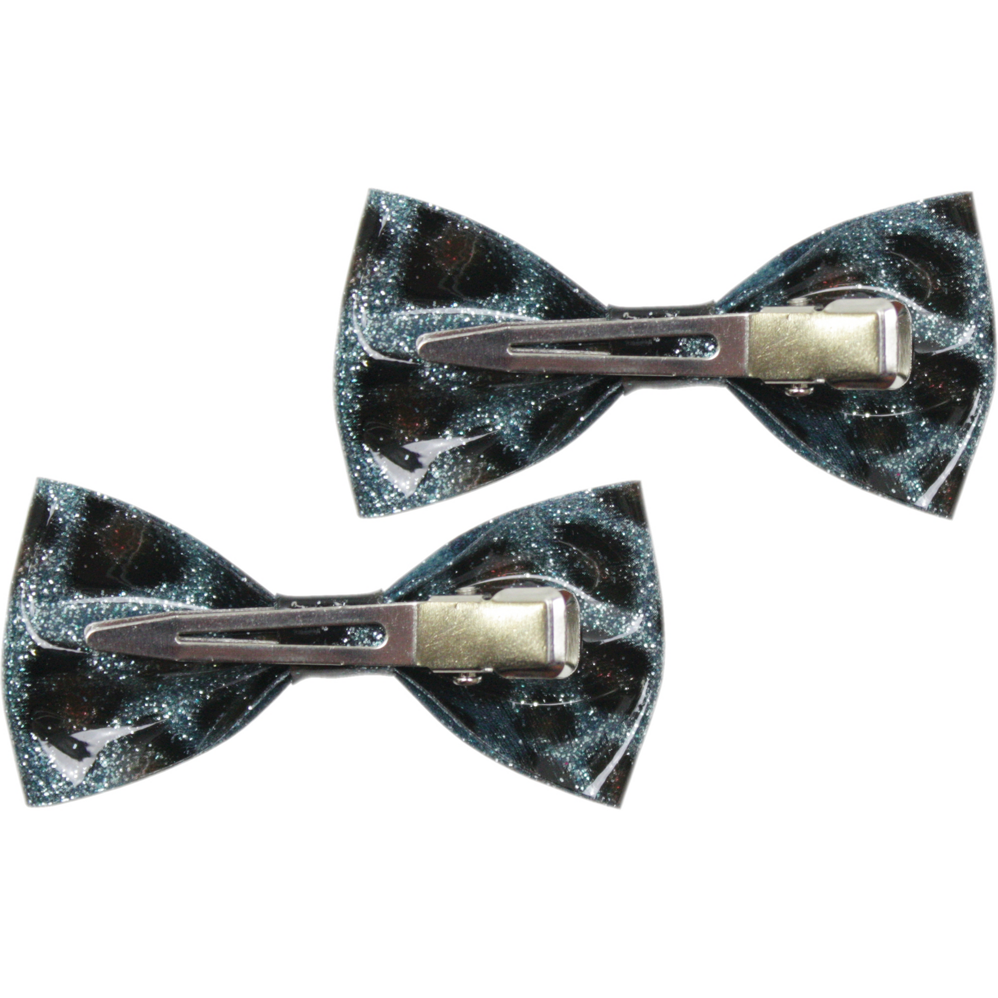 Sourpuss Blue Leopard Glitter Hair Bows Set of 2 | Rockabilly Hair Accessories Leopard Print Hair Clips