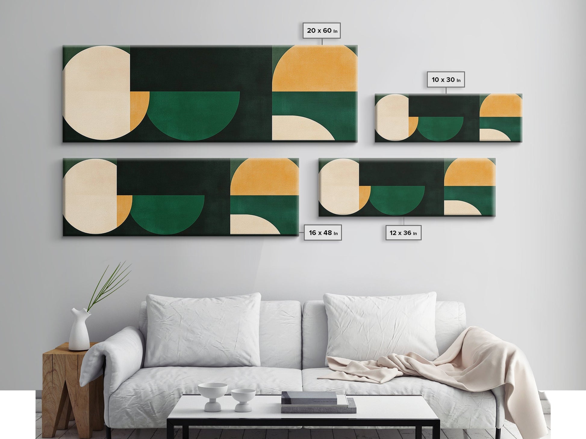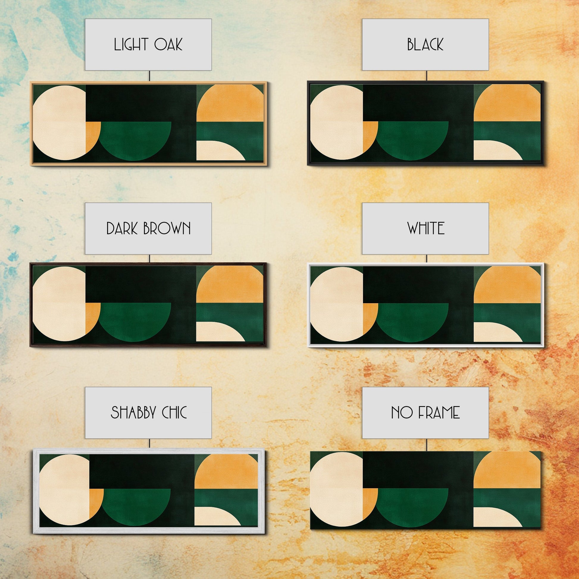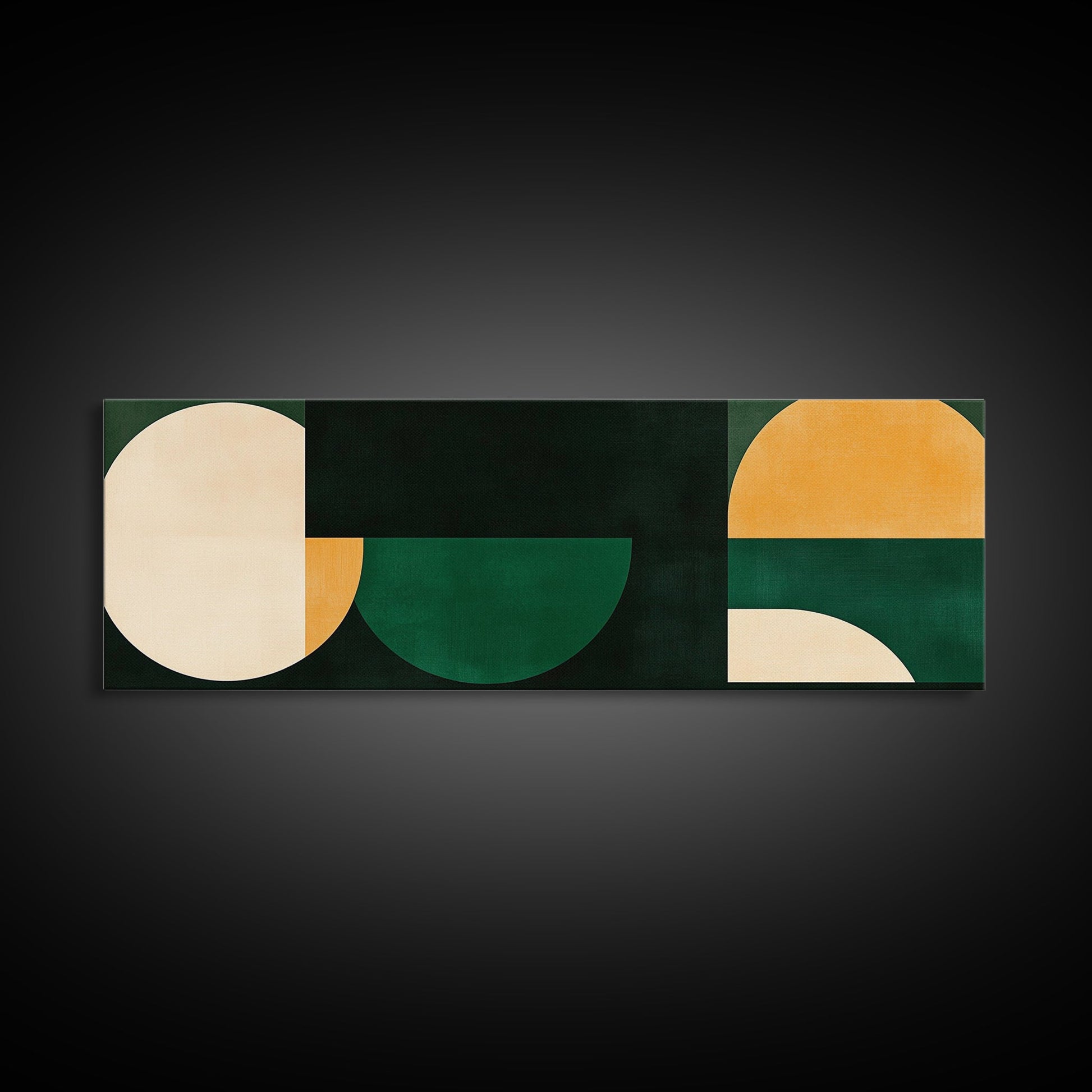 Squares and Circles, Geometric Pattern MCM Wall Art, Panoramic Framed Canvas Print, Wide and Narrow Art, Above Sofa living Room Wall Art