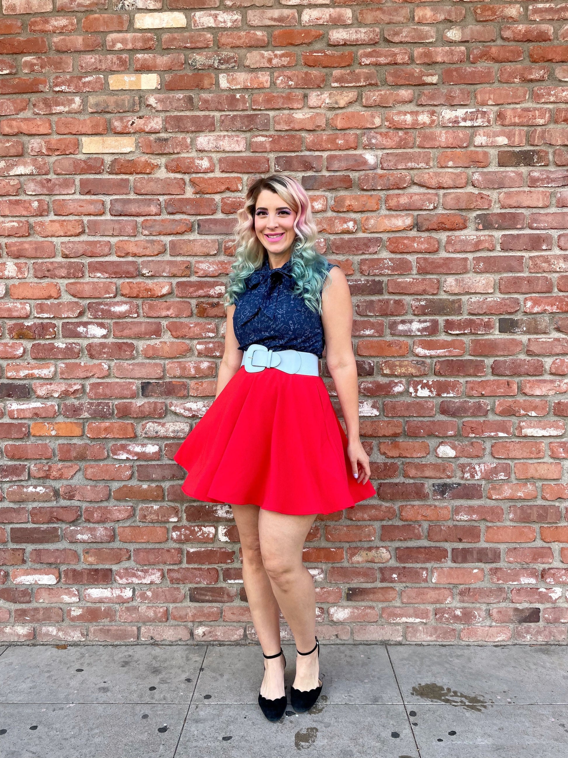 This top is for the STEM lover at heart! Shown in our smart girl STEM print, this 100% cotton top features bust darts for a flattering silhouette, a side zippered closure for ease of wear, and an oversized bow at the neckline for that perfect 1950's inspired look.