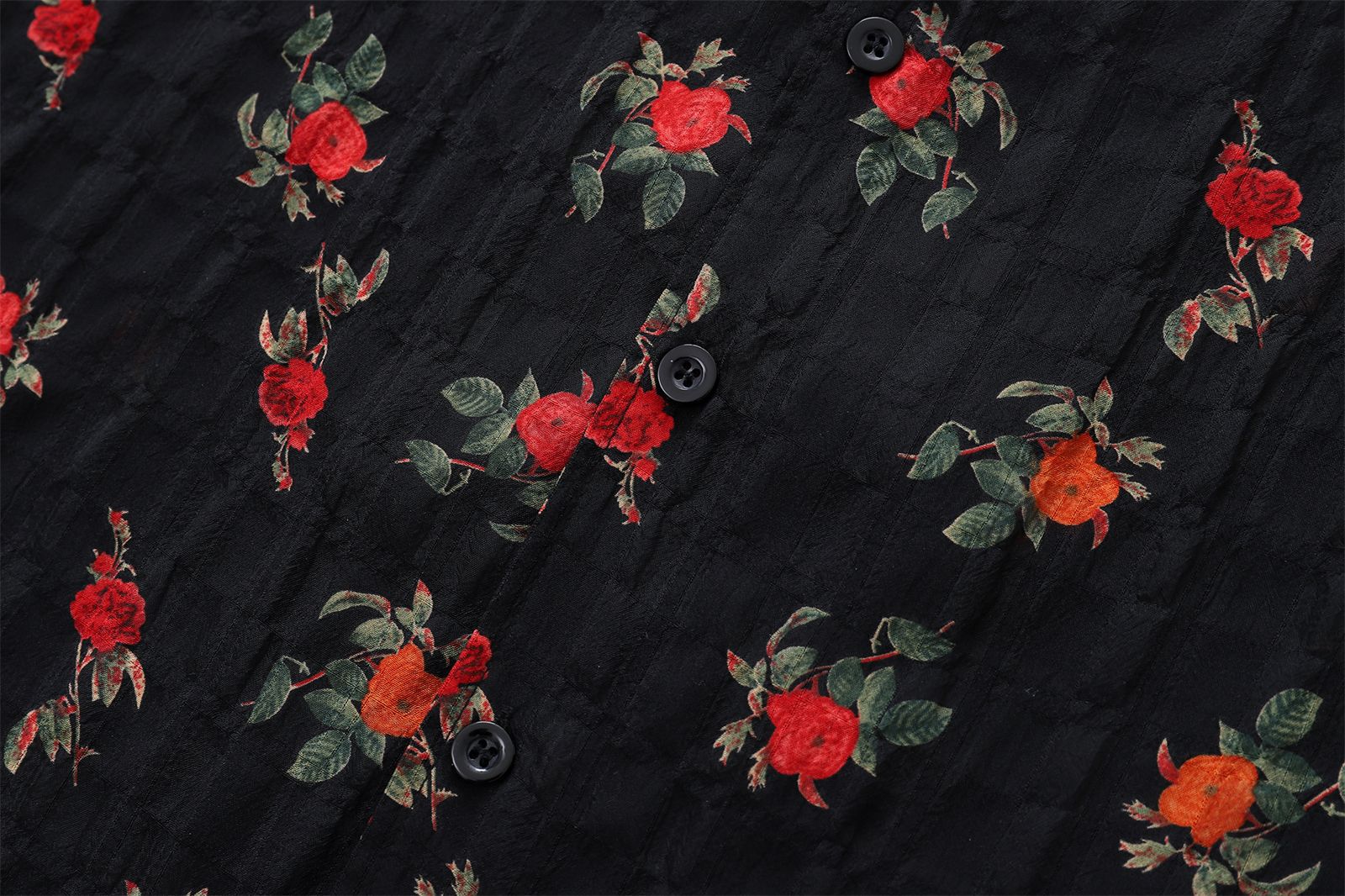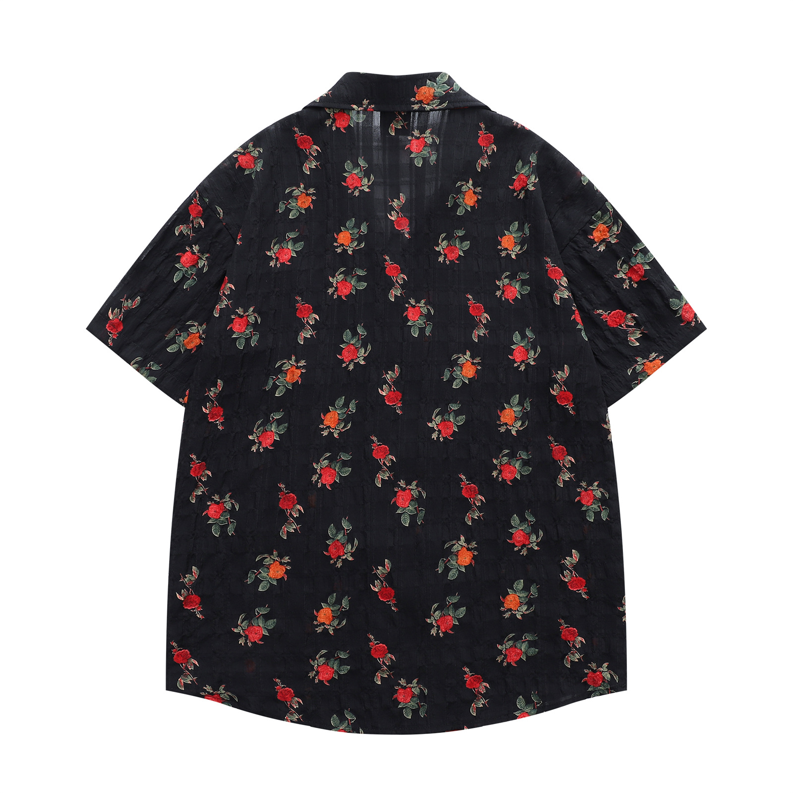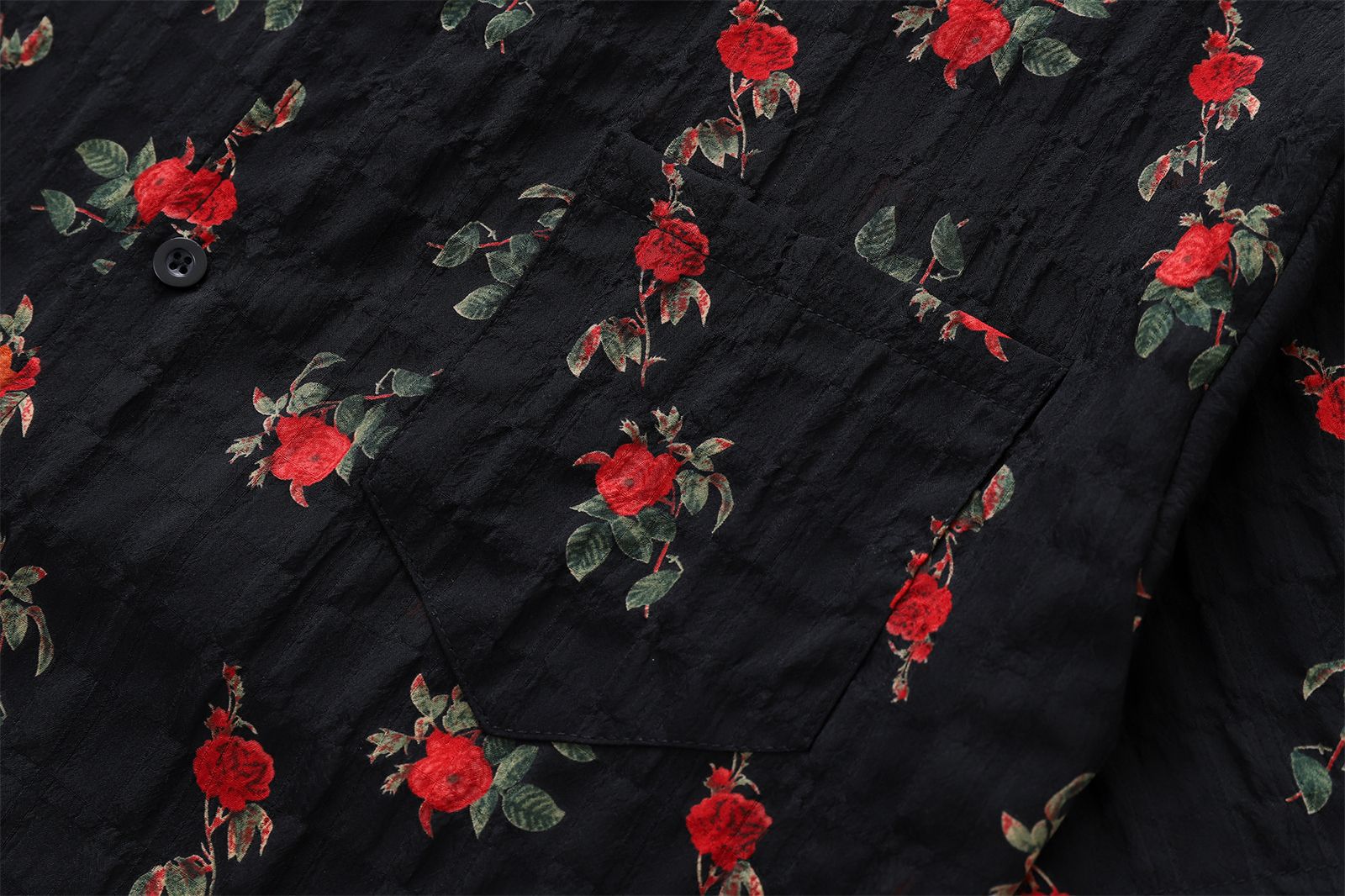 Style Retro Rose Full Print Design Short Sleeve Shirt for Men and Women