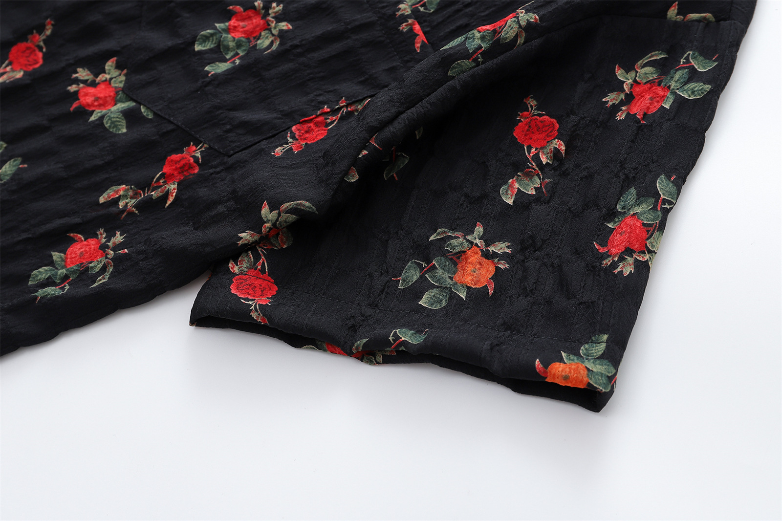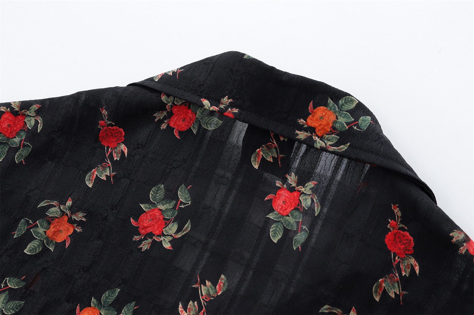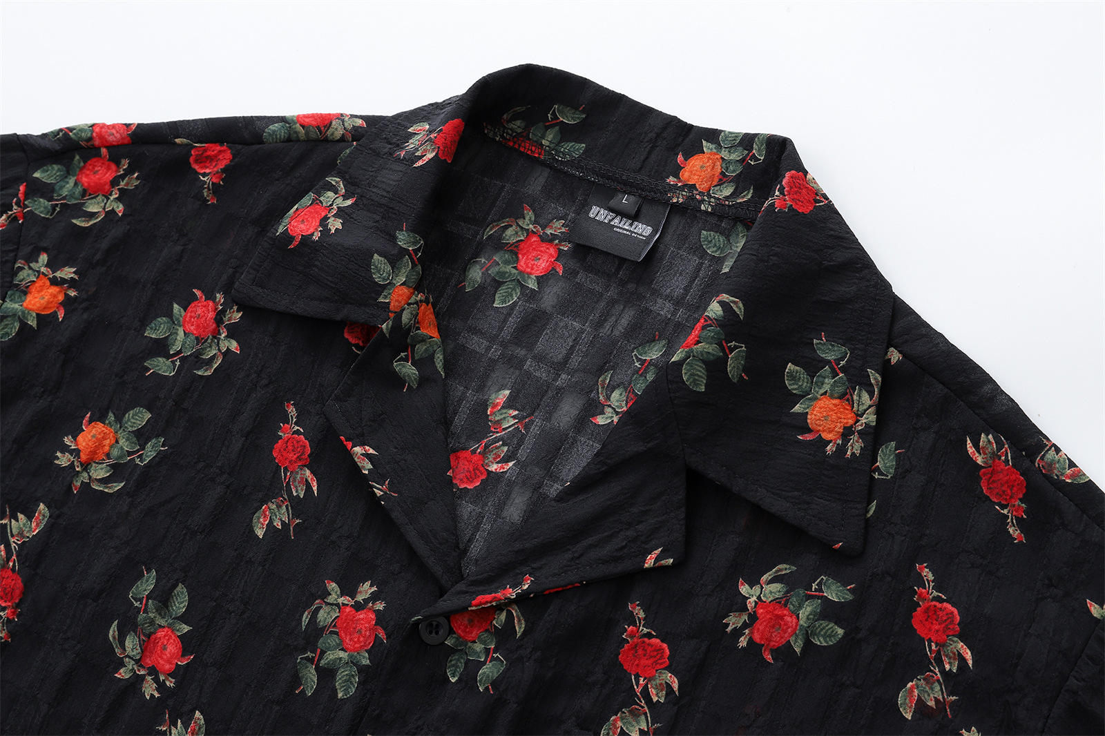 Style Retro Rose Full Print Design Short Sleeve Shirt for Men and Women