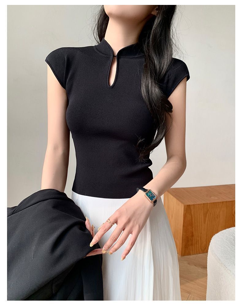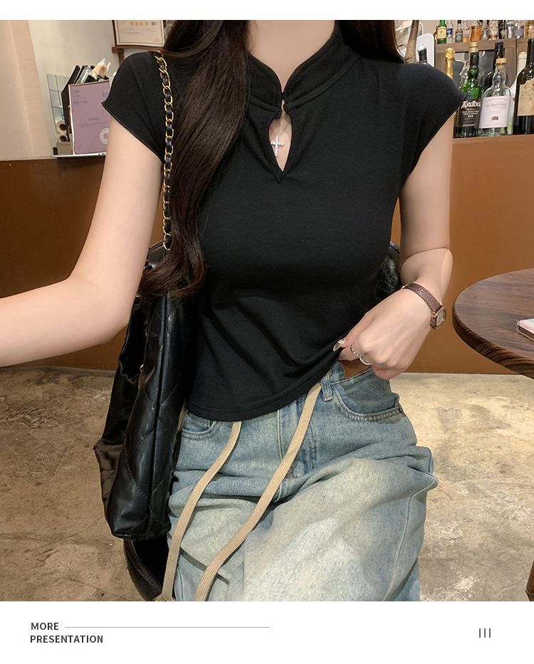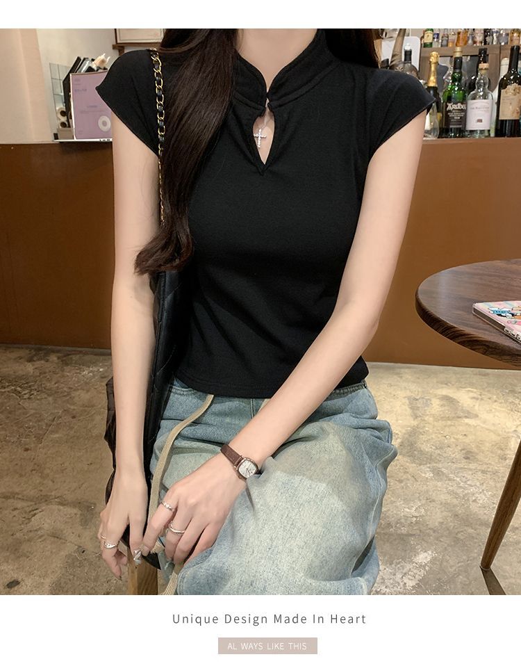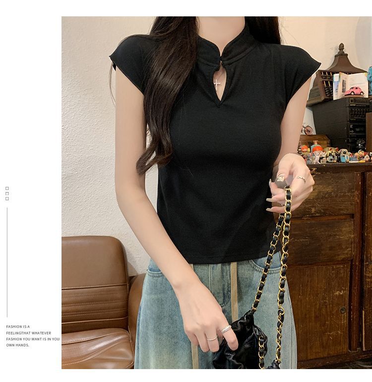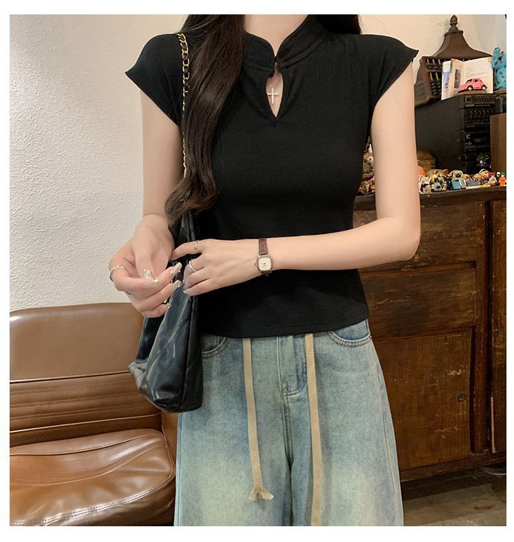 Style Traditional Button Half-Sleeve T-Shirt Women's Retro Slimming Short Fit Versatile Top